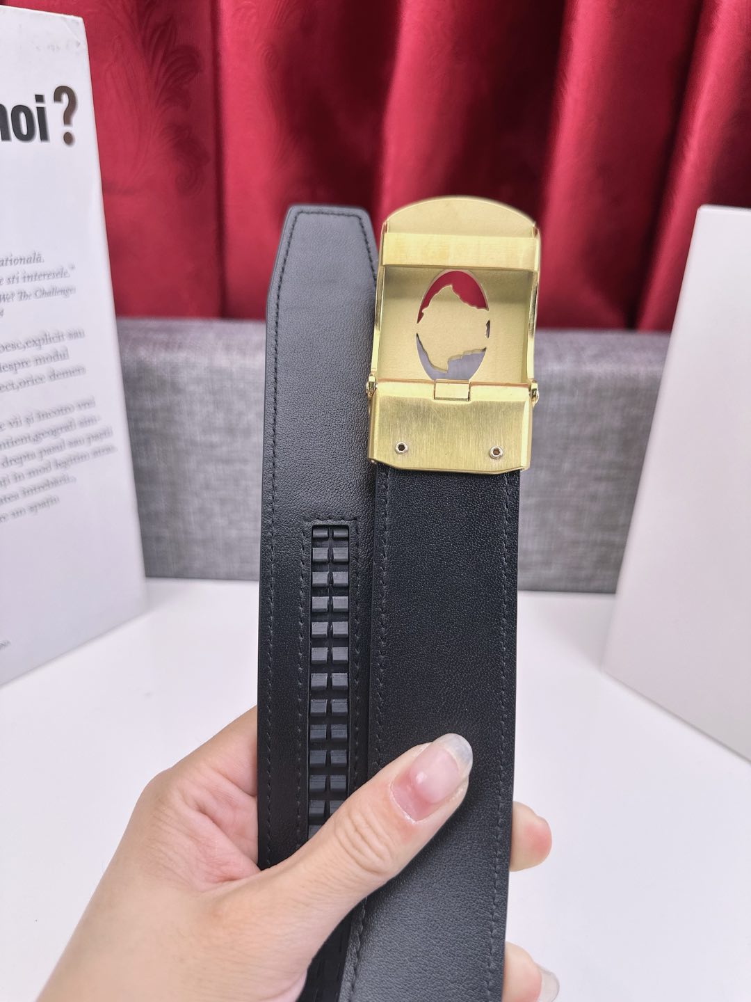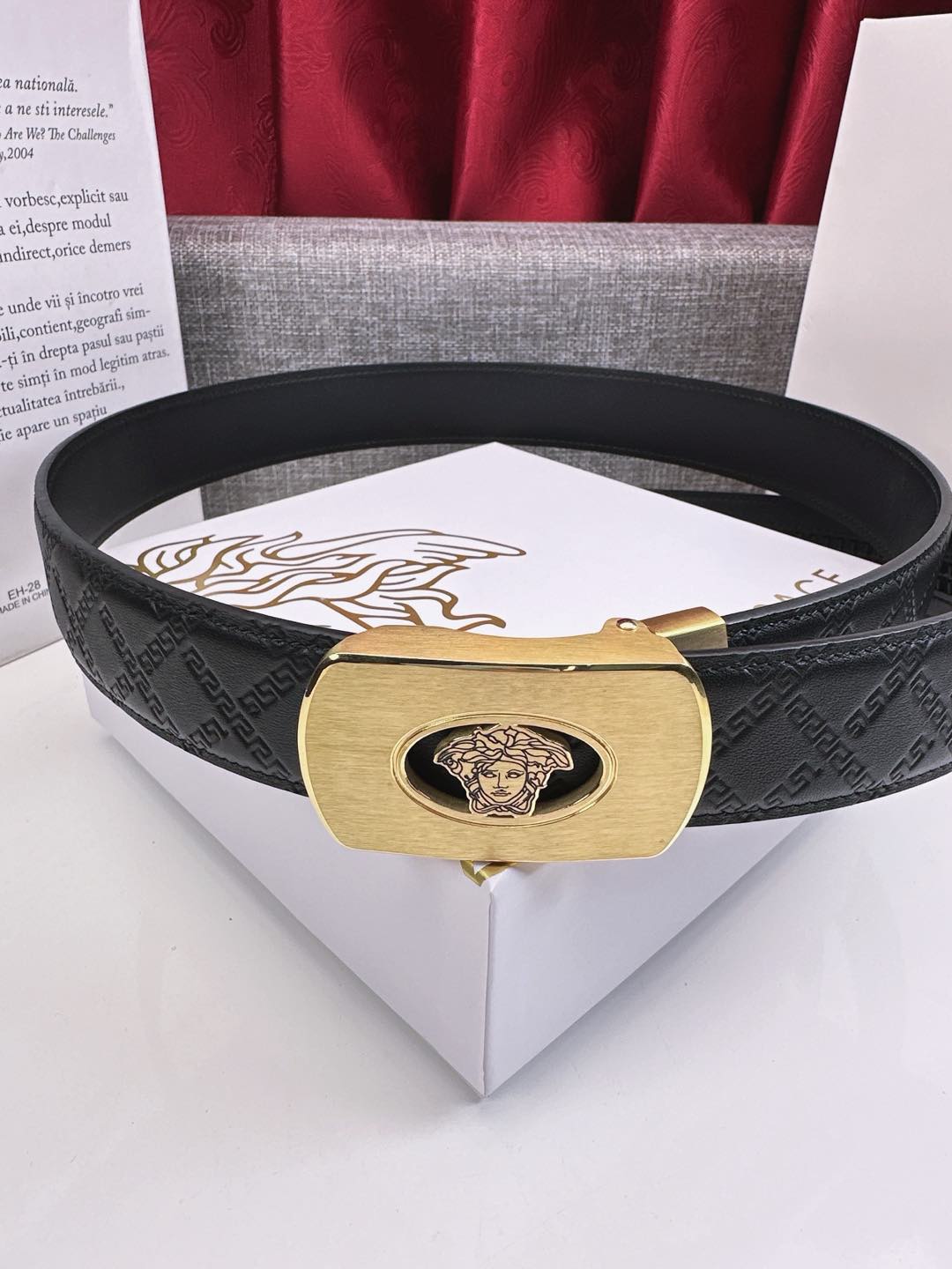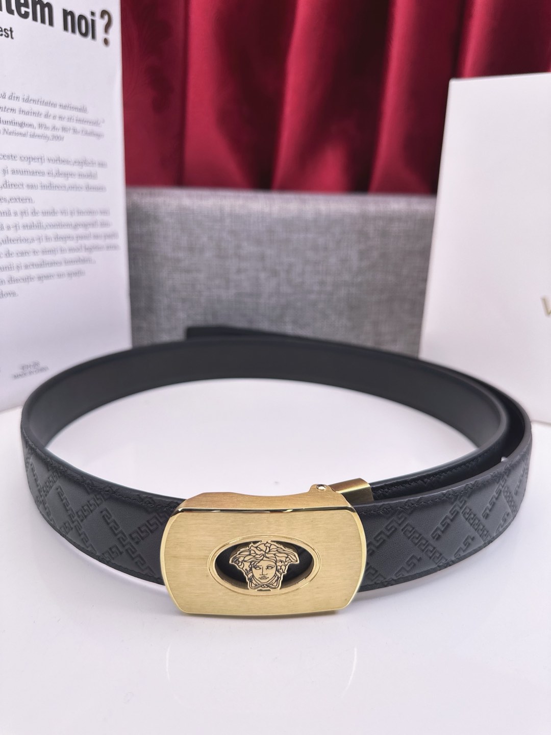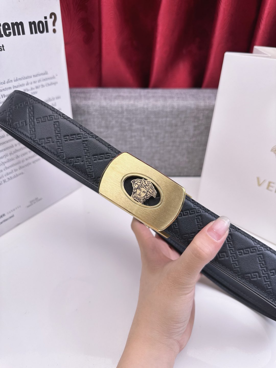 這款皮帶是AAAAA 1:1 質量(非常棒). 使用了和原版一模一樣的材料. 商標部分也保持了和范思哲/Versace一樣. 圖片拍攝是實物皮帶拍攝, 您所收到的實物保證和我們圖片一模一樣.