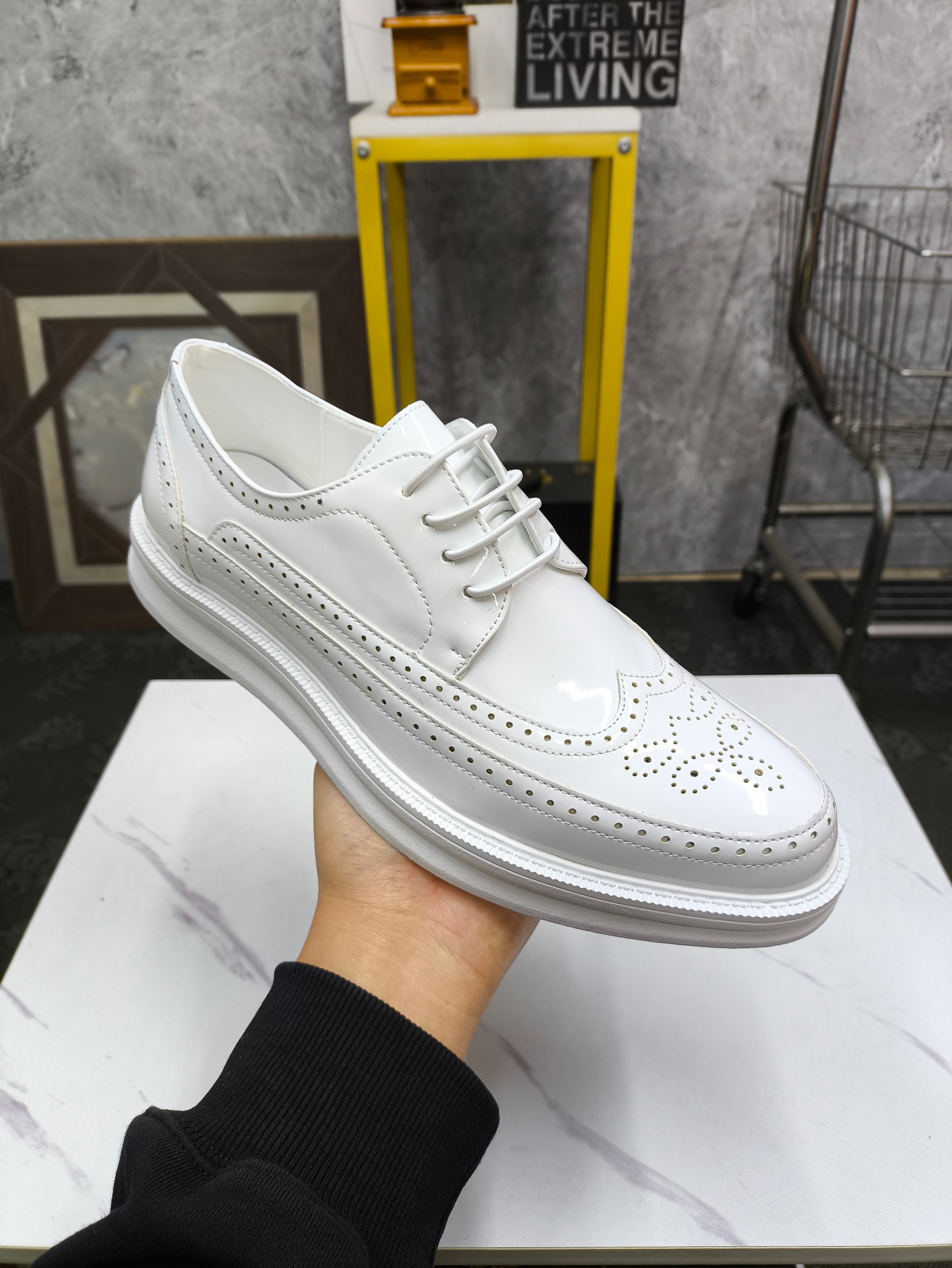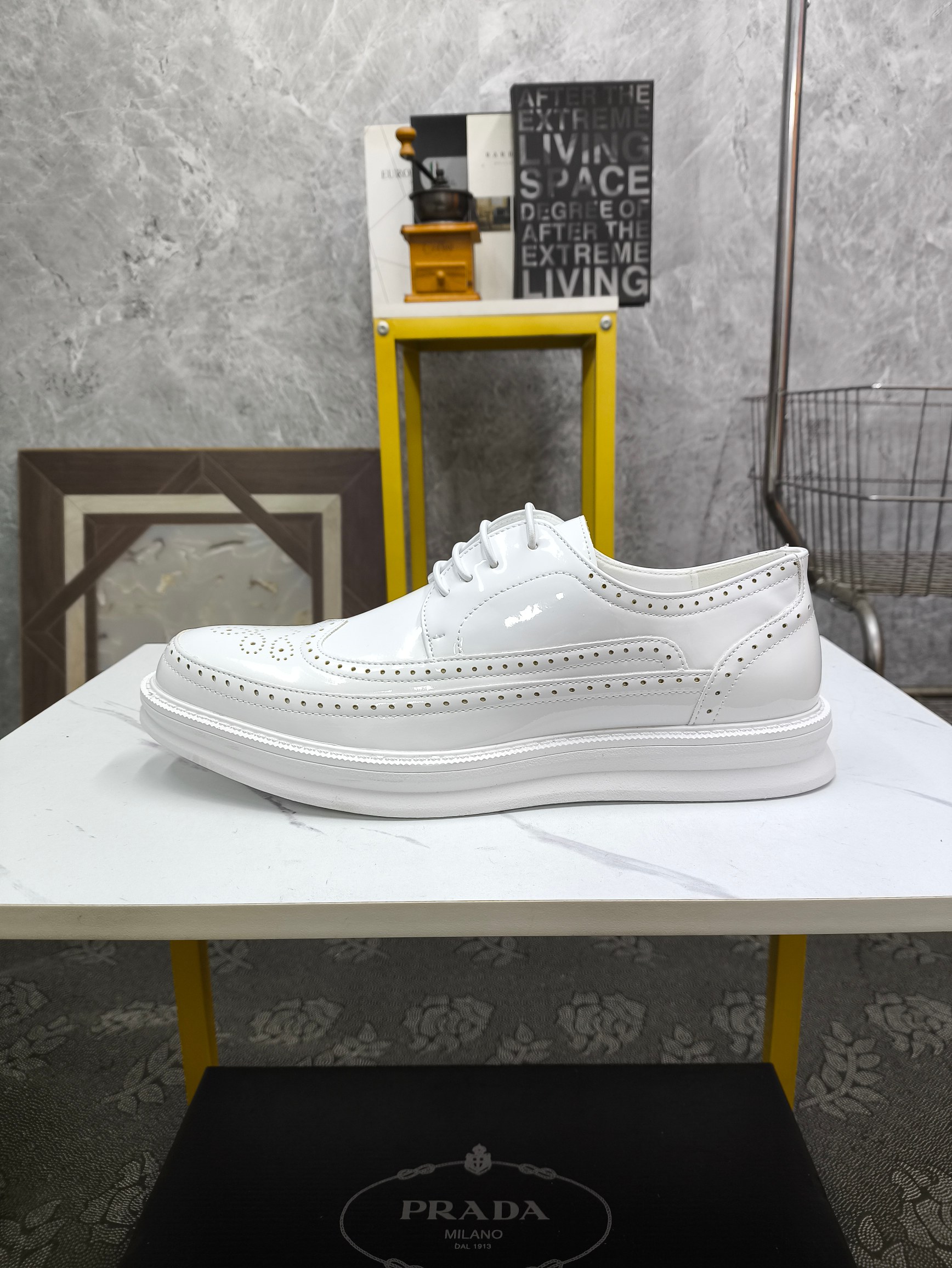 這款鞋子是AAAAA 1:1 質量(非常棒). 使用了和原版一模一樣的材料. 商標部分也保持了和普拉達/Prada一樣. 圖片拍攝是實物鞋子拍攝, 您所收到的實物保證和我們圖片一模一樣.
