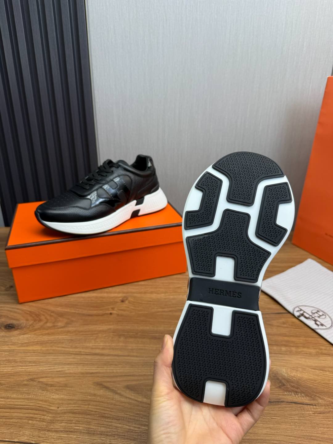 這款鞋子是AAAAA 1:1 質量(非常棒). 使用了和原版一模一樣的材料. 商標部分也保持了和愛馬仕/Hermes一樣. 圖片拍攝是實物鞋子拍攝, 您所收到的實物保證和我們圖片一模一樣.