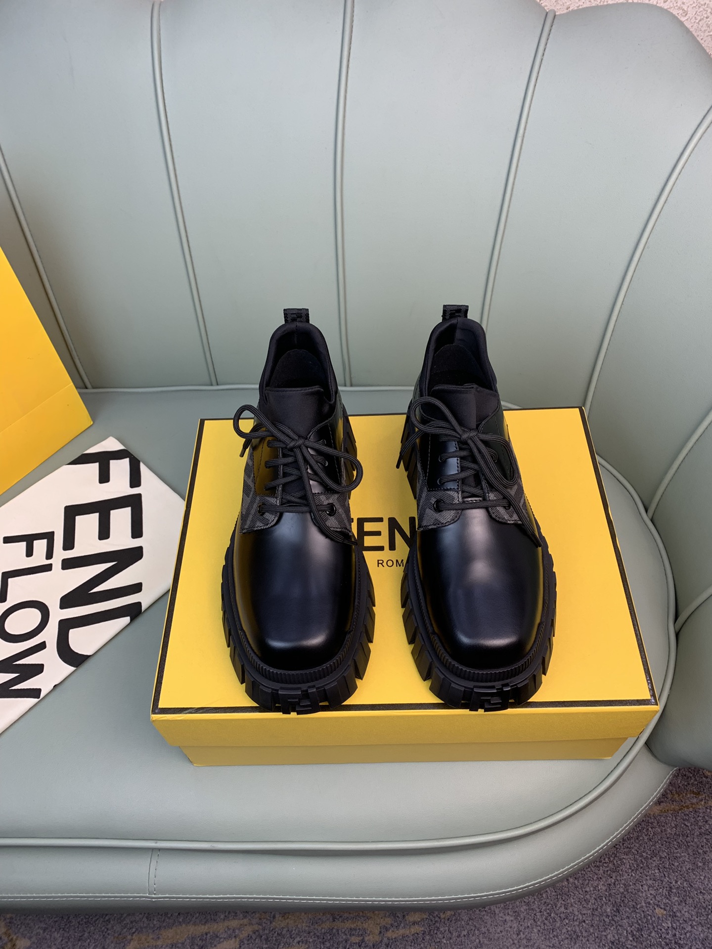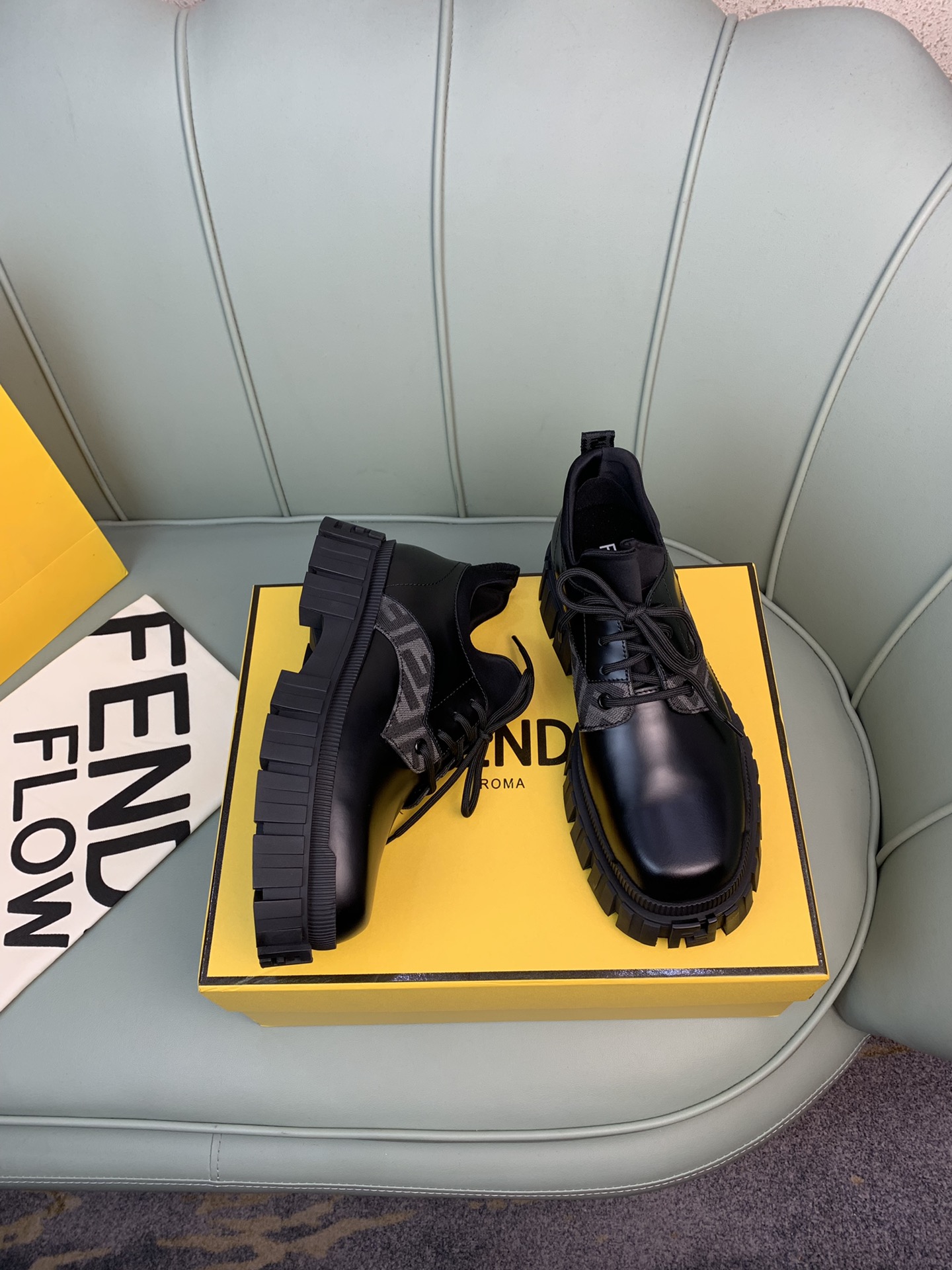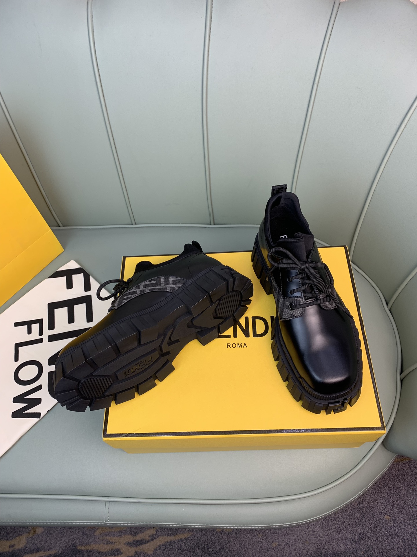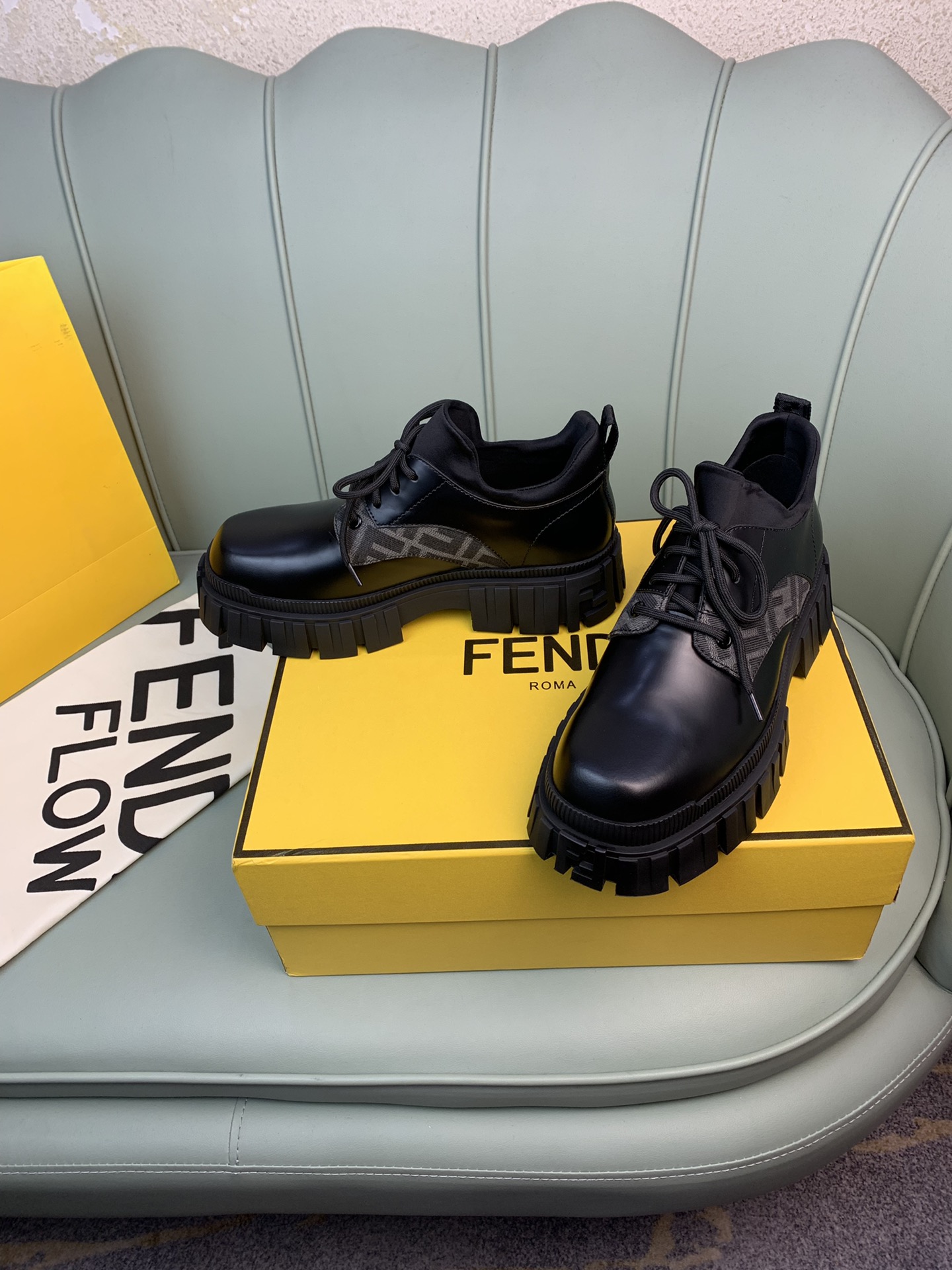 這款鞋子是AAAAA 1:1 質量(非常棒). 使用了和原版一模一樣的材料. 商標部分也保持了和芬迪/Fendi一樣. 圖片拍攝是實物鞋子拍攝, 您所收到的實物保證和我們圖片一模一樣.