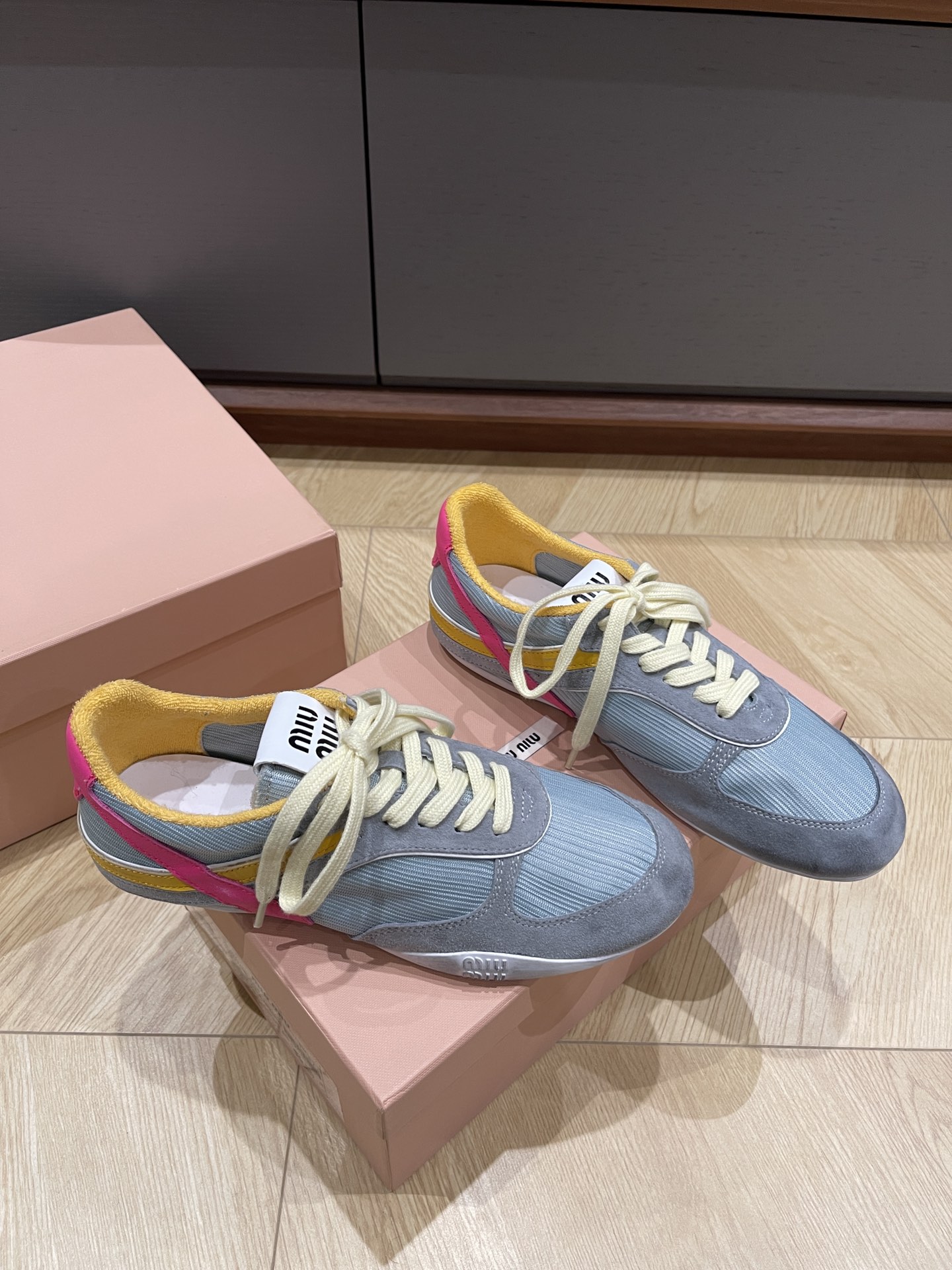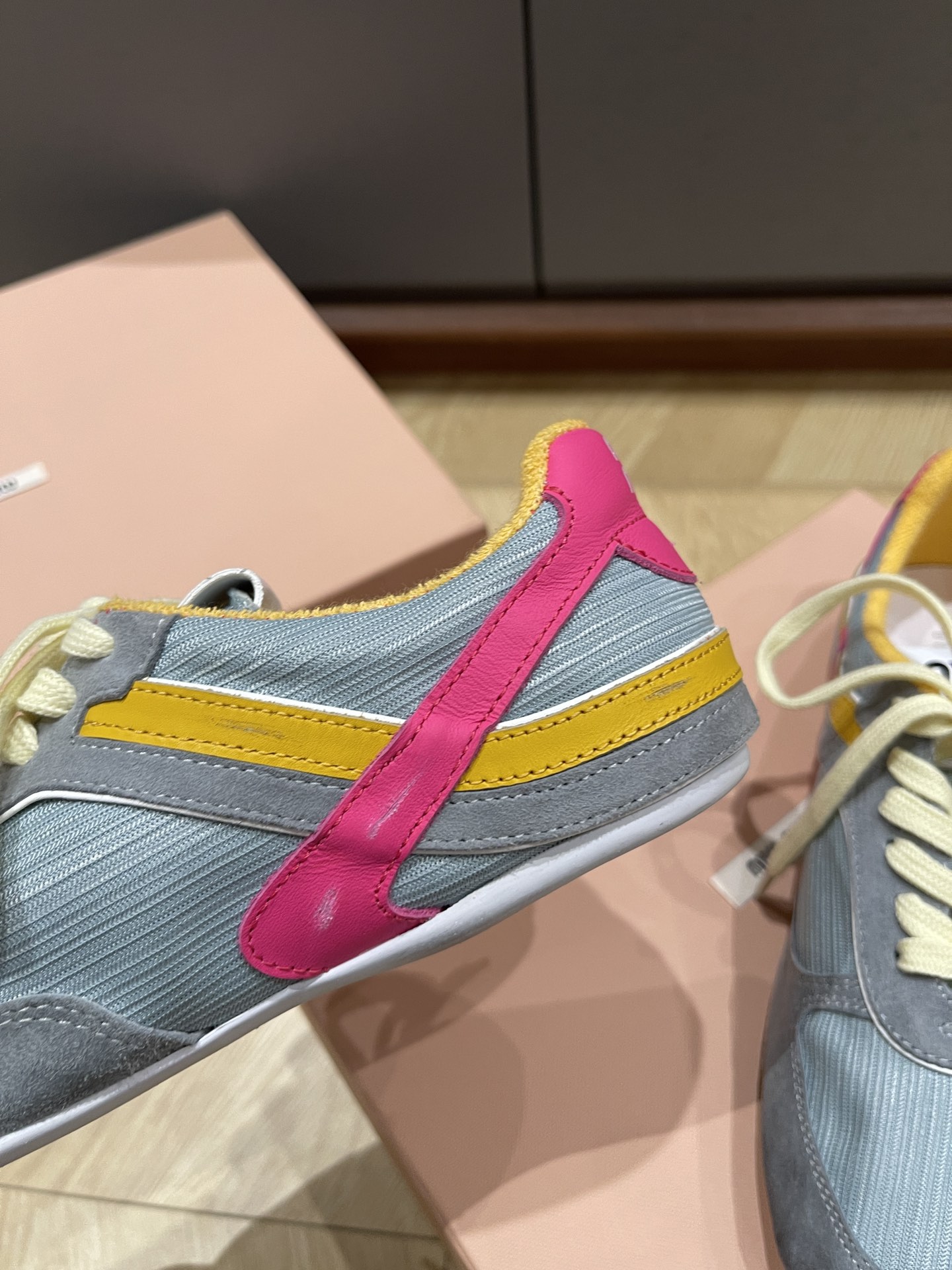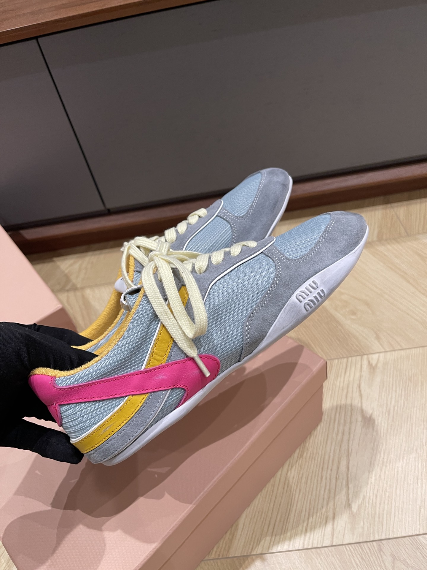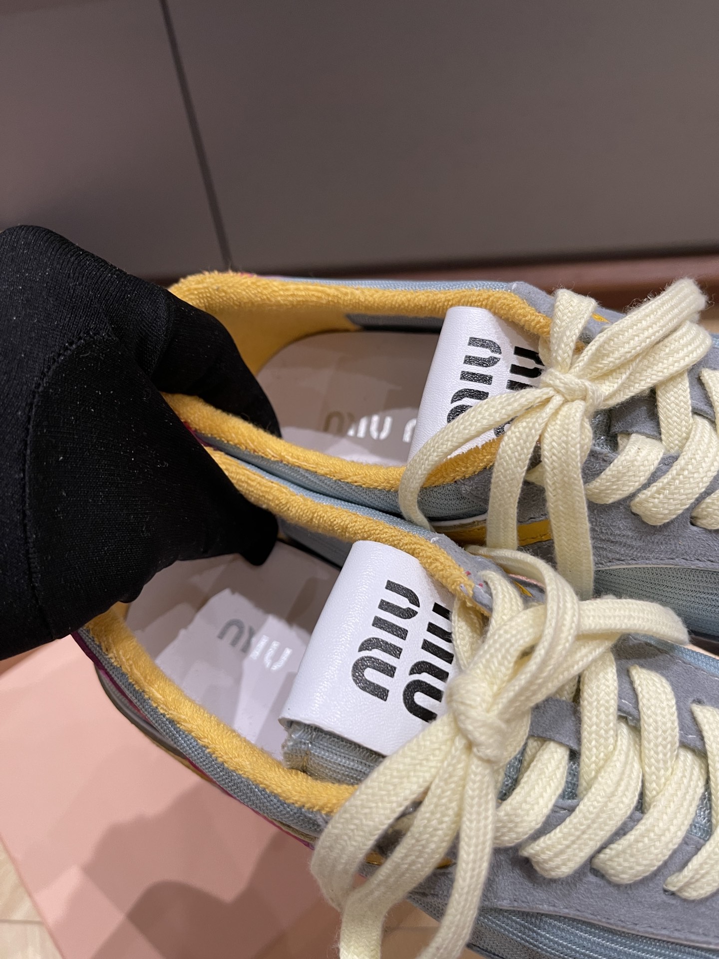 這款鞋子是AAAAA 1:1 質量(非常棒). 使用了和原版一模一樣的材料. 商標部分也保持了和繆繆/Miu Miu一樣. 圖片拍攝是實物鞋子拍攝, 您所收到的實物保證和我們圖片一模一樣.