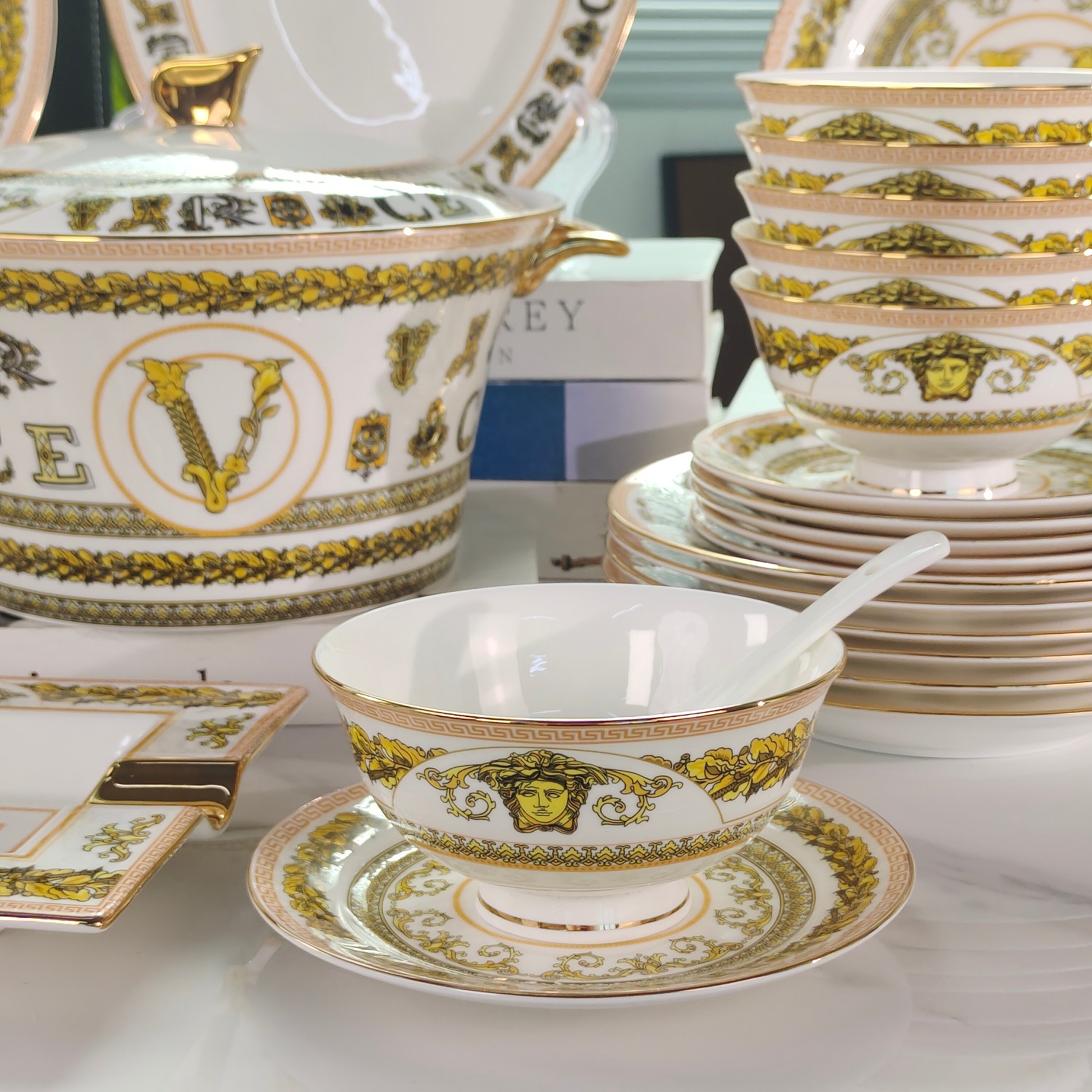 這款bone china tableware sets是AAAAA 1:1 質量(非常棒). 使用了和原版一模一樣的材料. 商標部分也保持了和范思哲/Versace一樣. 圖片拍攝是實物bone china tableware sets拍攝, 您所收到的實物保證和我們圖片一模一樣.