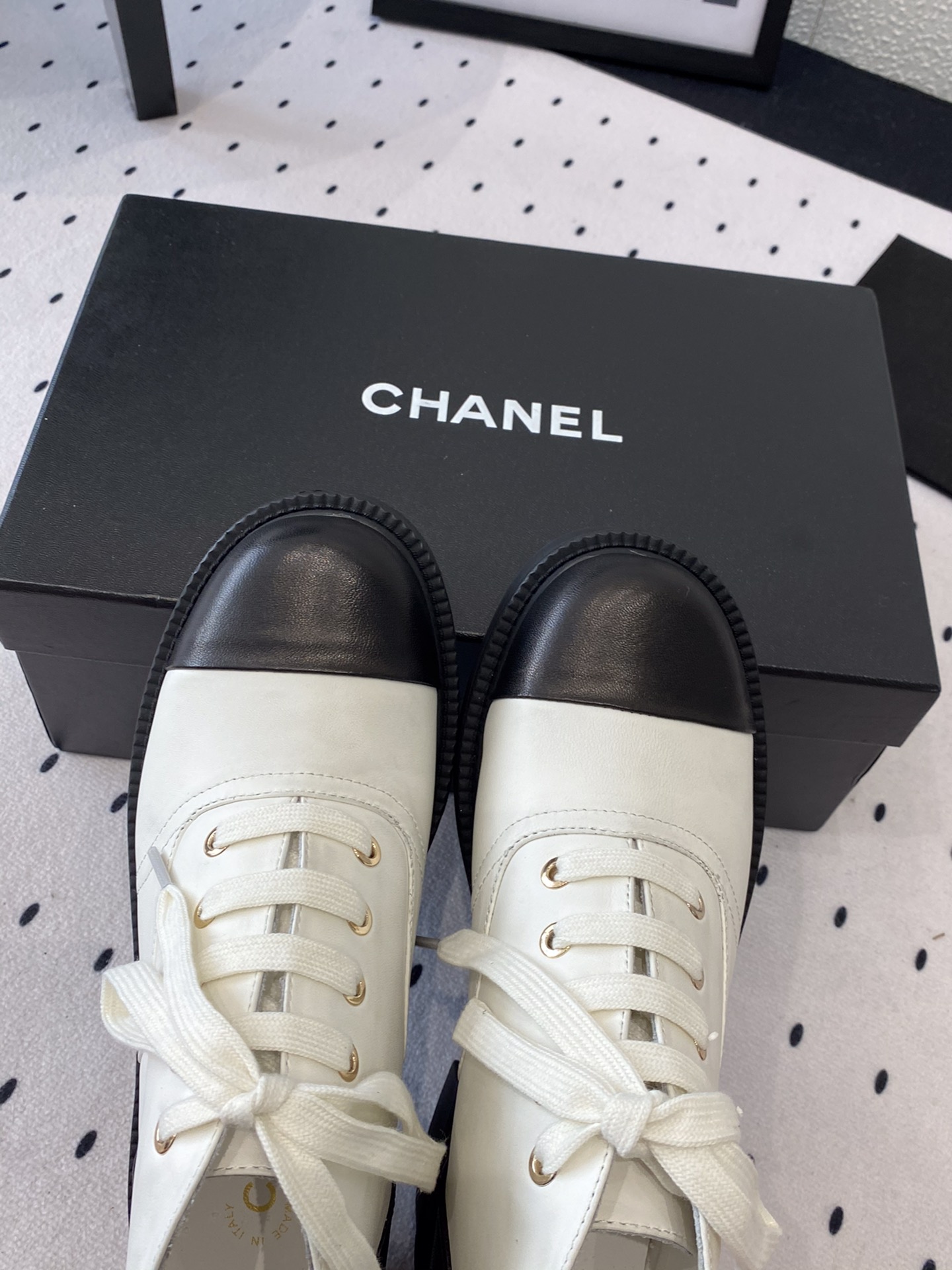 這款鞋子是AAAAA 1:1 質量(非常棒). 使用了和原版一模一樣的材料. 商標部分也保持了和香奈兒/Chanel一樣. 圖片拍攝是實物鞋子拍攝, 您所收到的實物保證和我們圖片一模一樣.