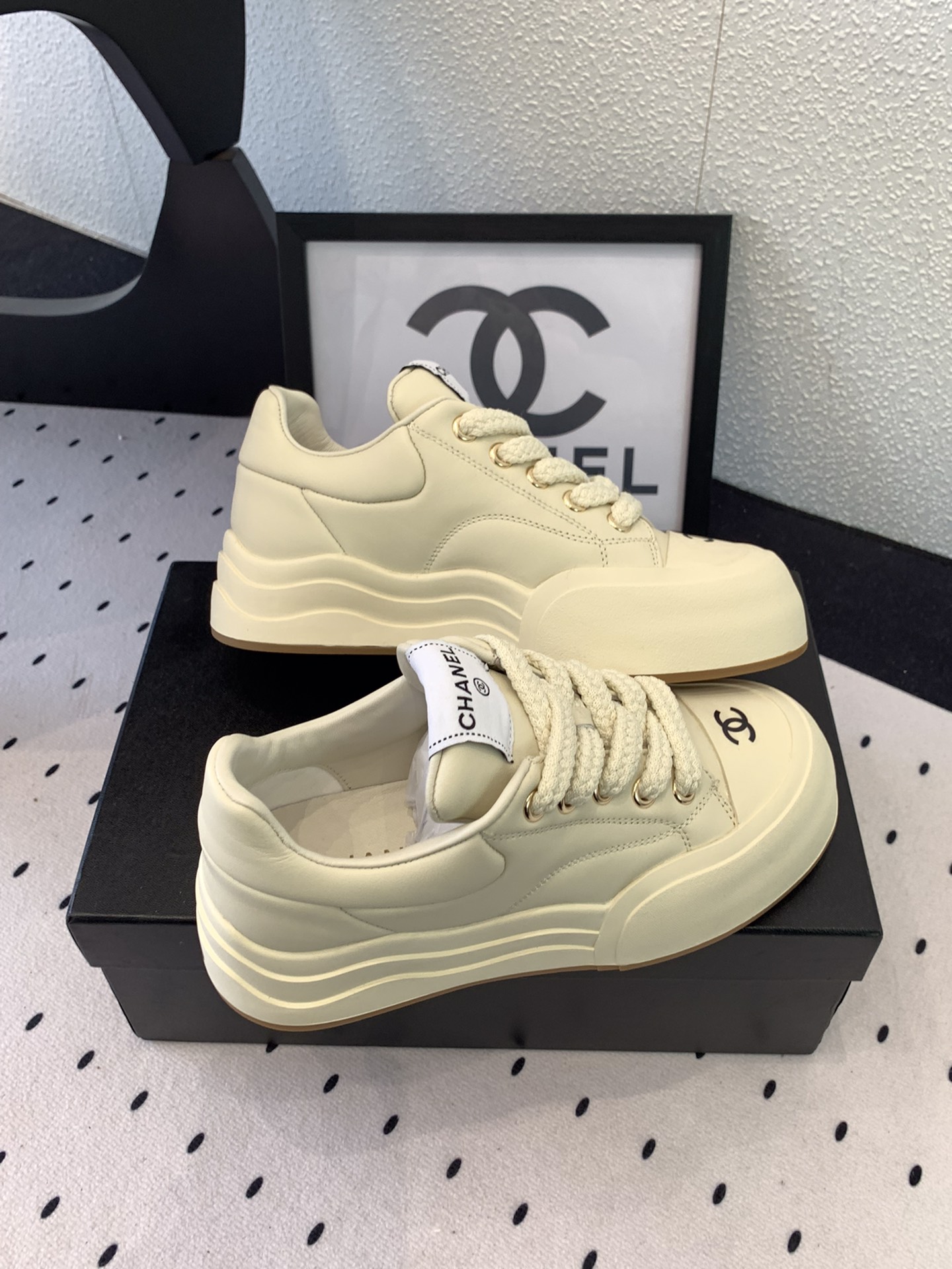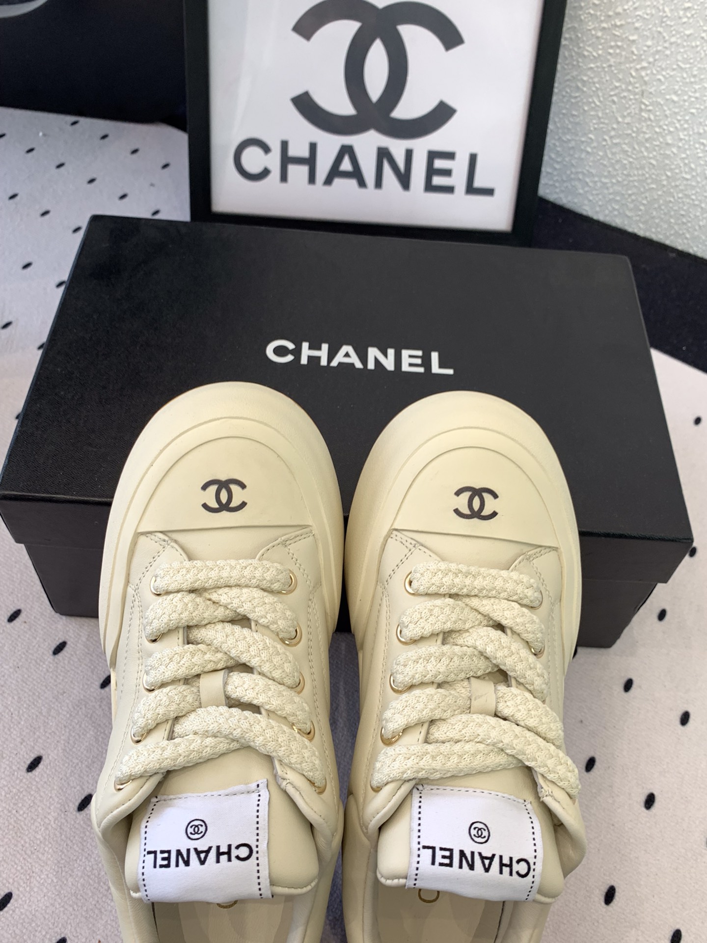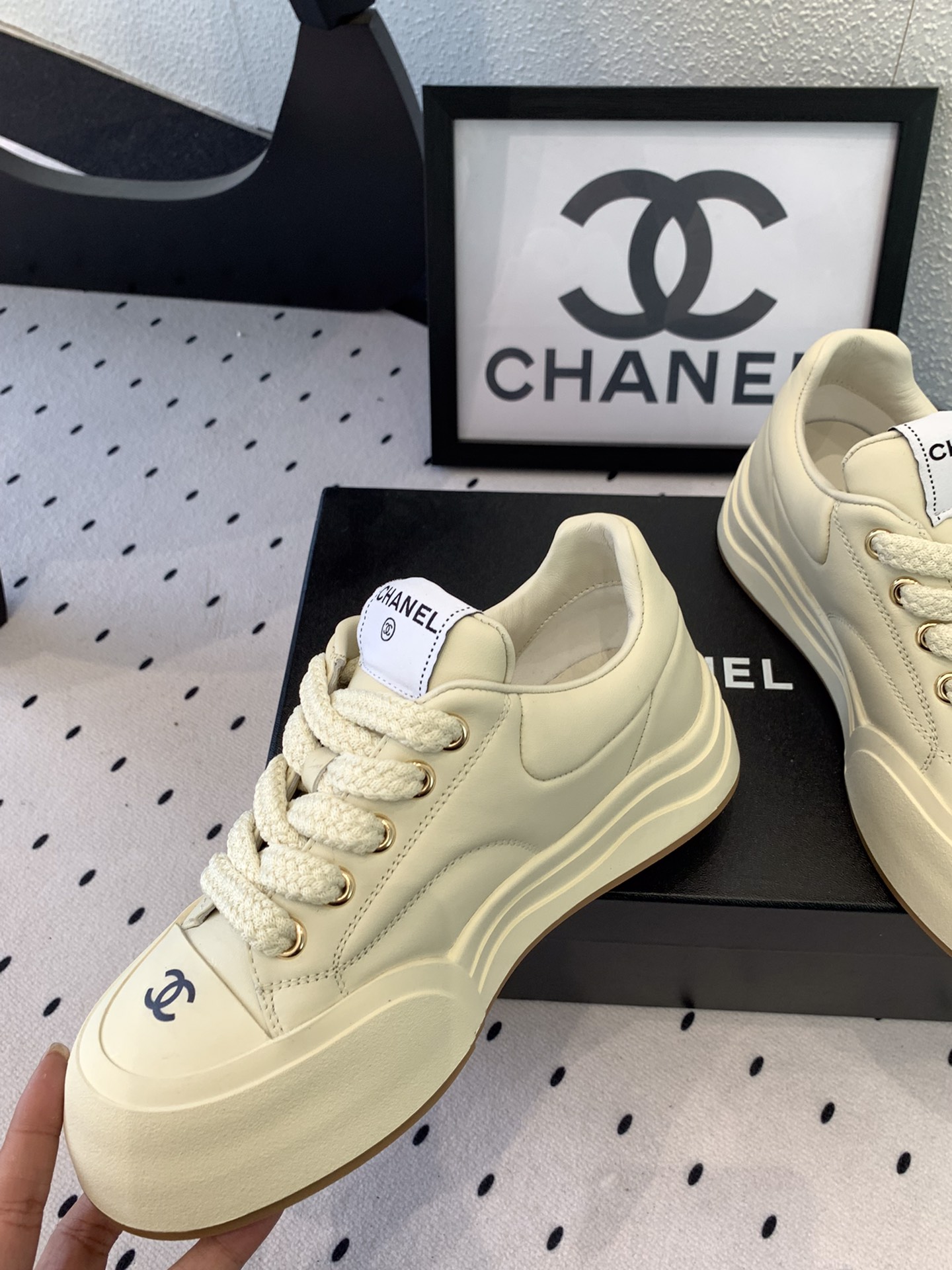 這款鞋子是AAAAA 1:1 質量(非常棒). 使用了和原版一模一樣的材料. 商標部分也保持了和香奈兒/Chanel一樣. 圖片拍攝是實物鞋子拍攝, 您所收到的實物保證和我們圖片一模一樣.