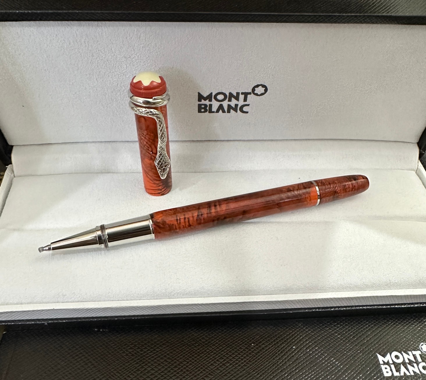 這款pen是AAAAA 1:1 質量(非常棒). 使用了和原版一模一樣的材料. 商標部分也保持了和萬寶龍/Montblanc一樣. 圖片拍攝是實物pen拍攝, 您所收到的實物保證和我們圖片一模一樣.