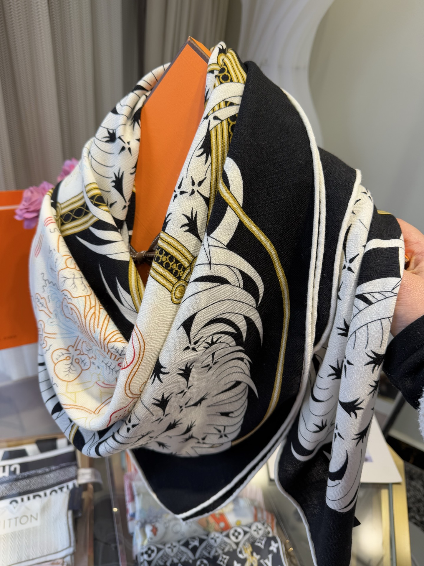 這款圍巾是AAAAA 1:1 質量(非常棒). 使用了和原版一模一樣的材料. 商標部分也保持了和愛馬仕/Hermes一樣. 圖片拍攝是實物圍巾拍攝, 您所收到的實物保證和我們圖片一模一樣.