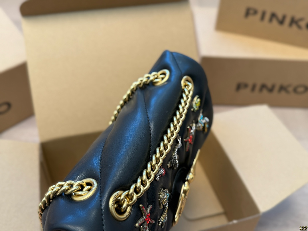 這款包包是AAAAA 1:1 質量(非常棒). 使用了和原版一模一樣的材料. 商標部分也保持了和PINKO一樣. 圖片拍攝是實物包包拍攝, 您所收到的實物保證和我們圖片一模一樣.