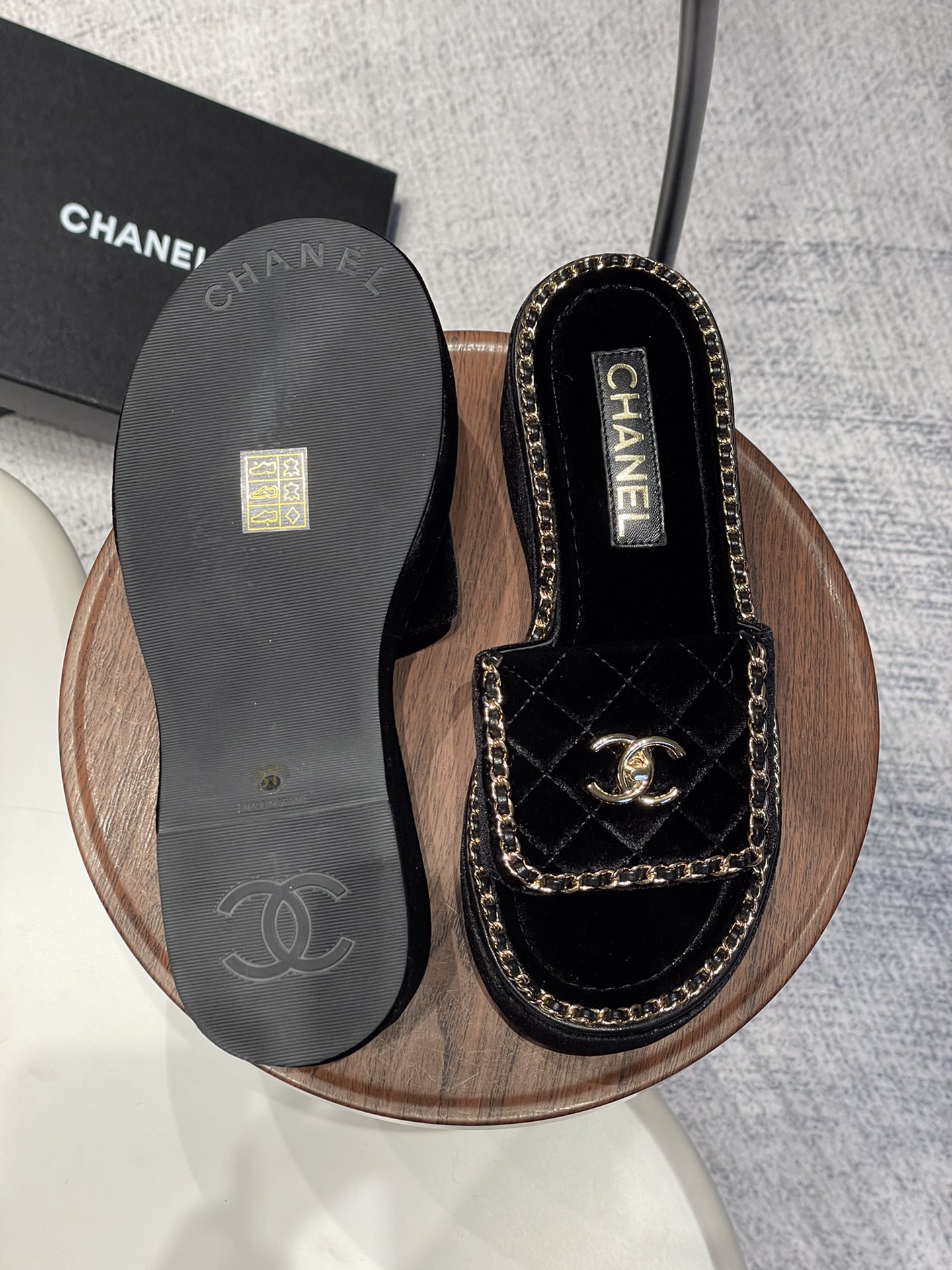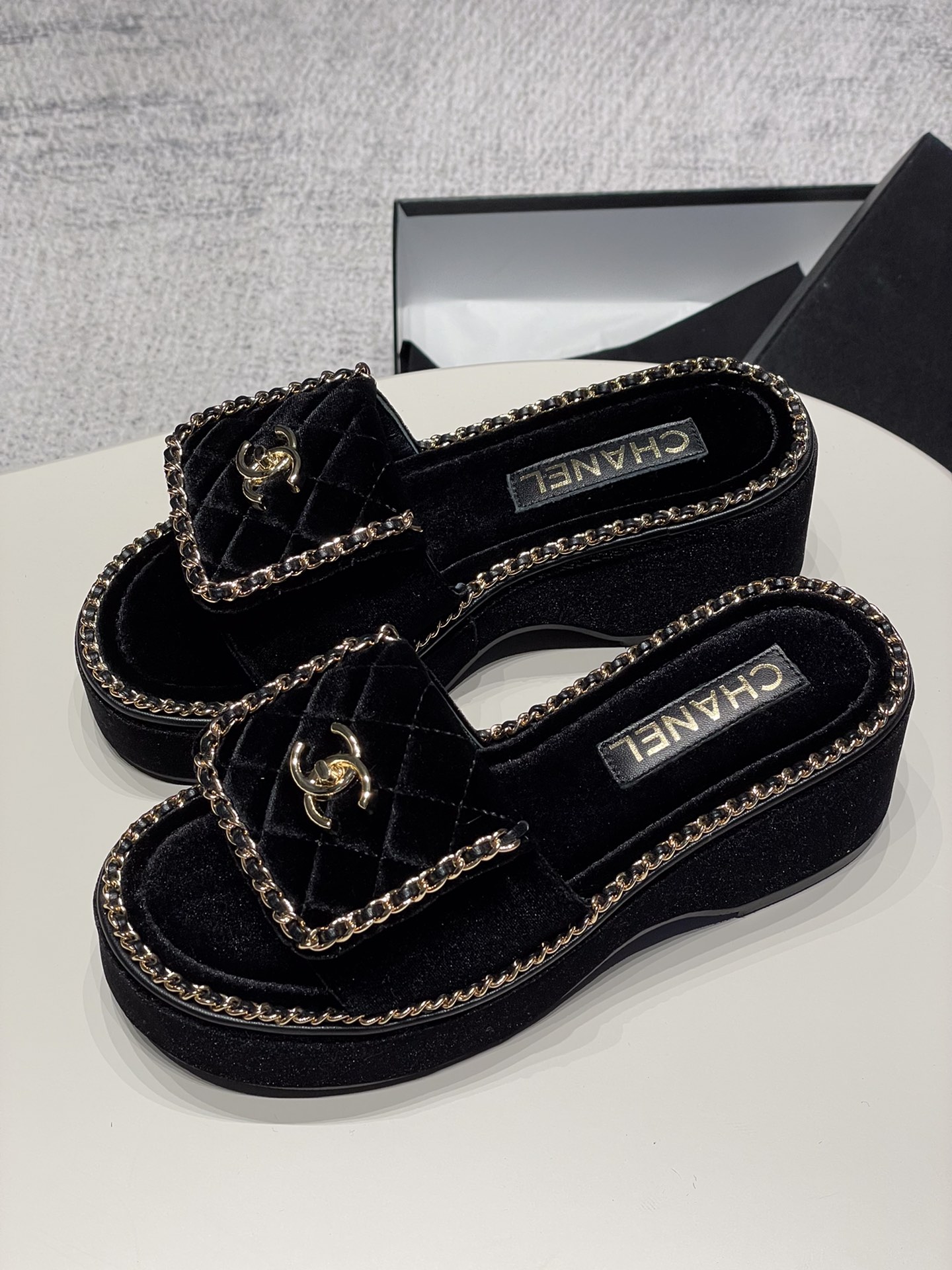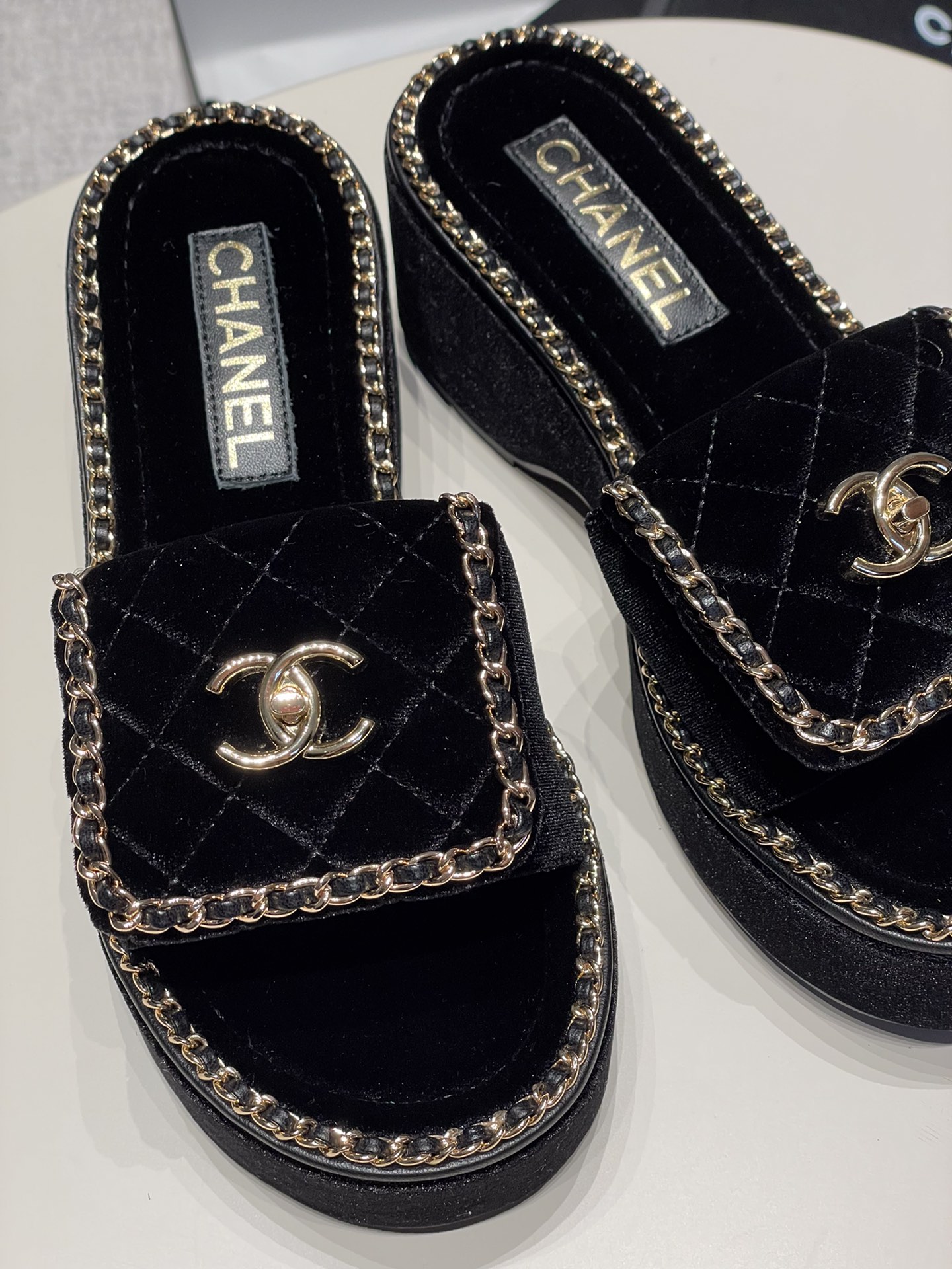 這款鞋子是AAAAA 1:1 質量(非常棒). 使用了和原版一模一樣的材料. 商標部分也保持了和香奈兒/Chanel一樣. 圖片拍攝是實物鞋子拍攝, 您所收到的實物保證和我們圖片一模一樣.