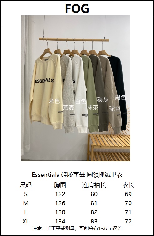 這款衣服是AAAAA 1:1 質量(非常棒). 使用了和原版一模一樣的材料. 商標部分也保持了和ESSENTIALS一樣. 圖片拍攝是實物衣服拍攝, 您所收到的實物保證和我們圖片一模一樣.