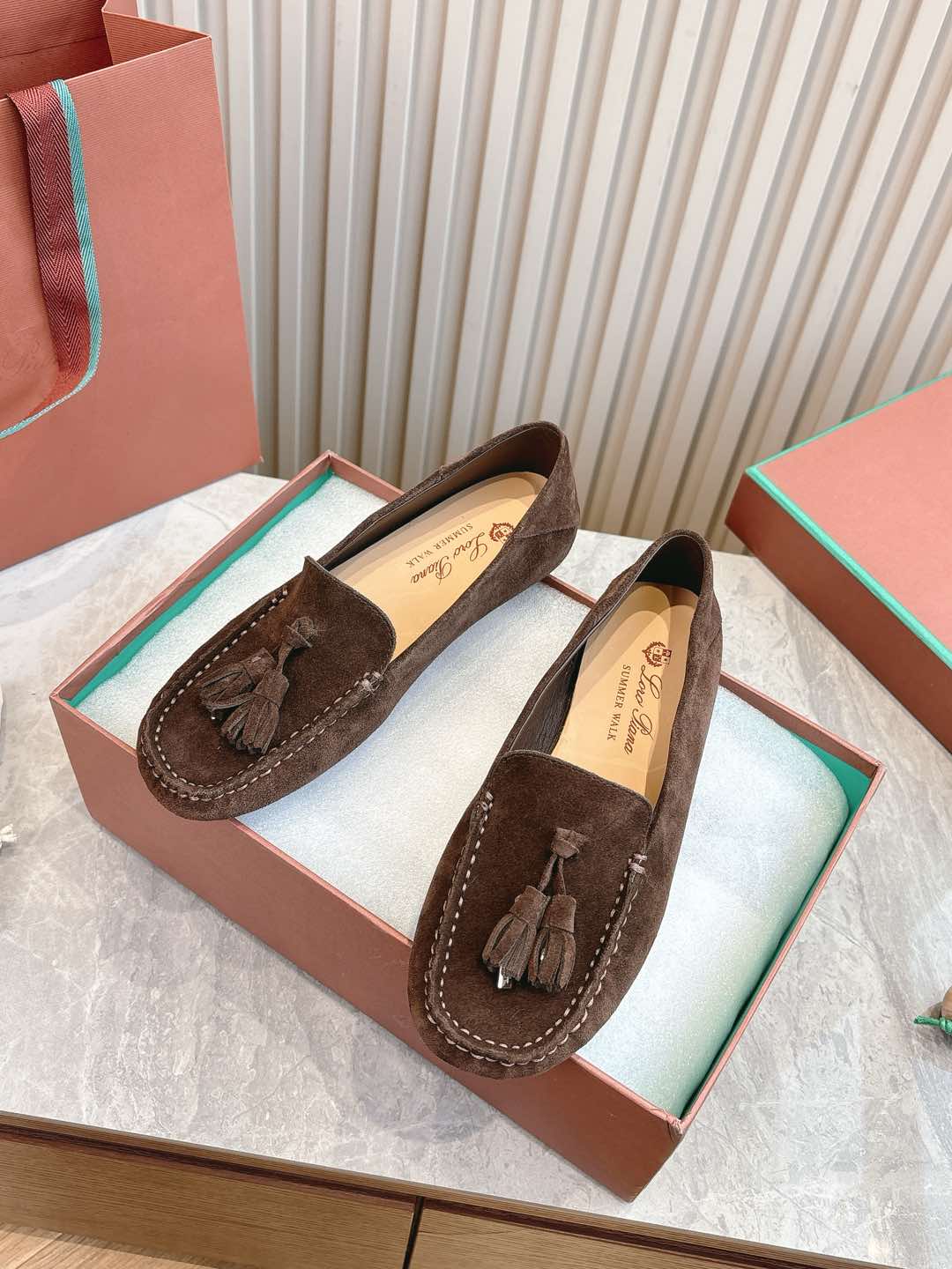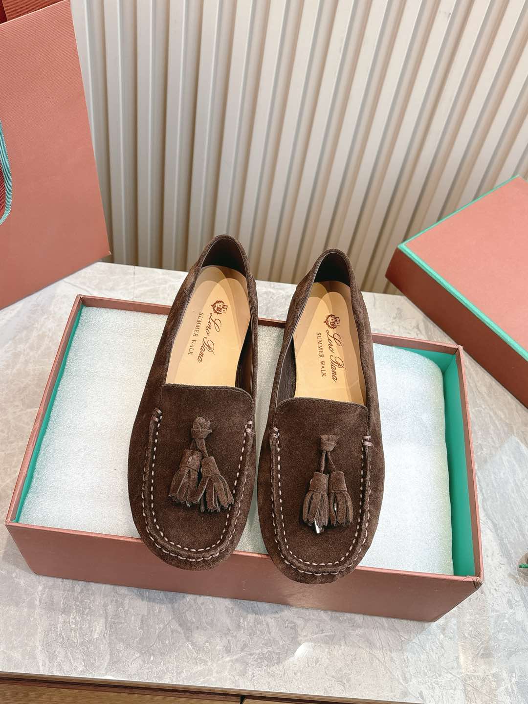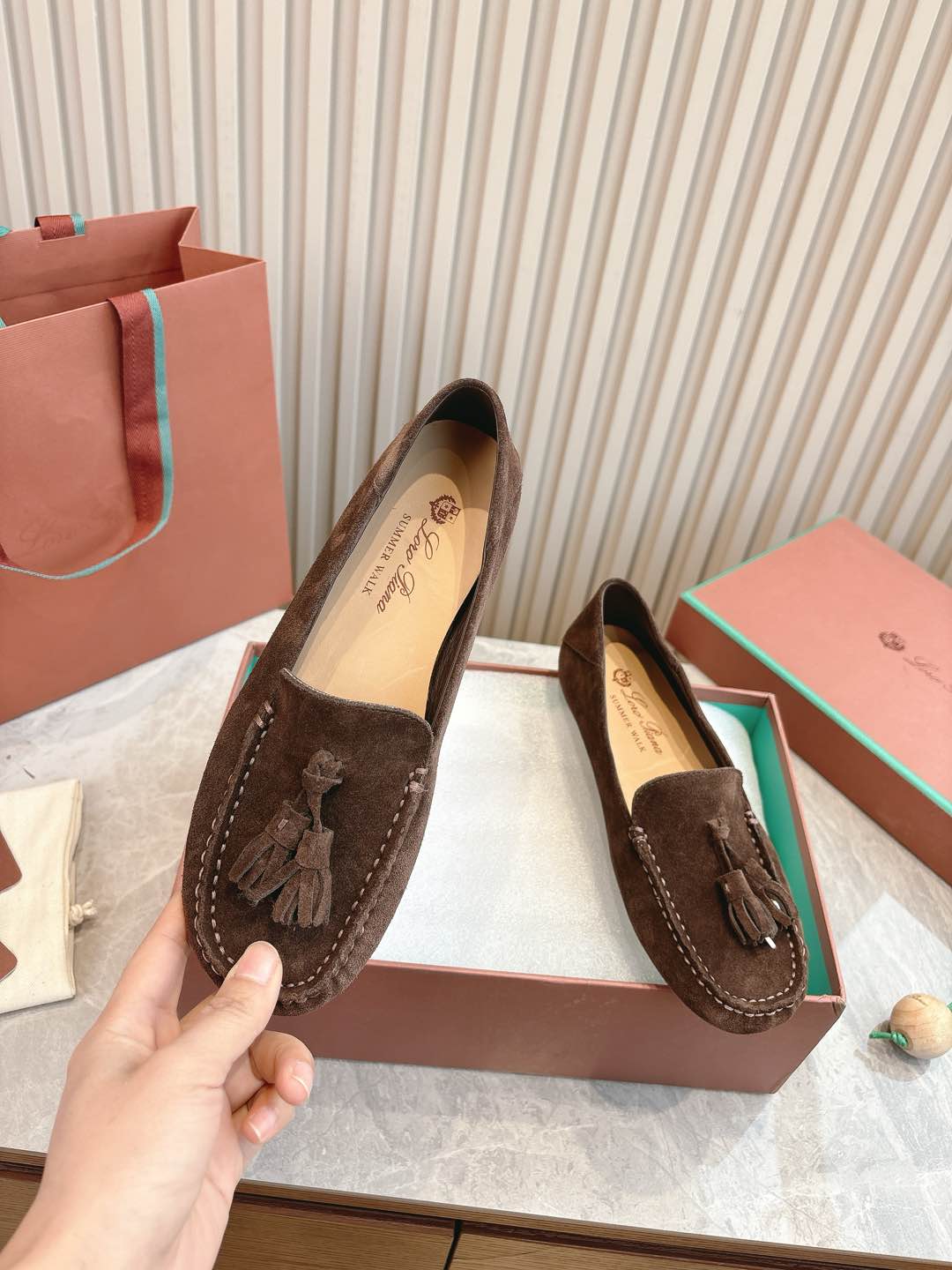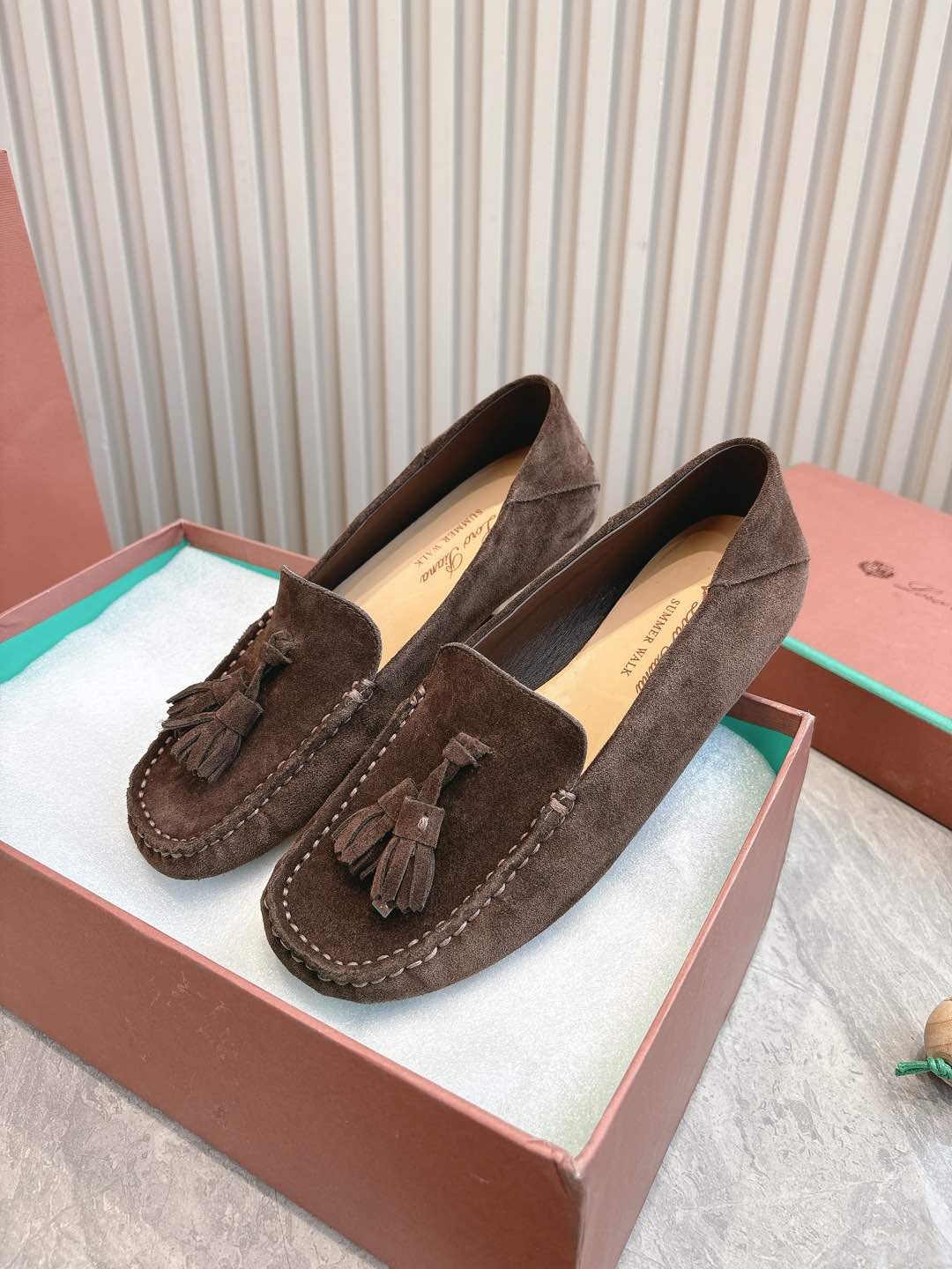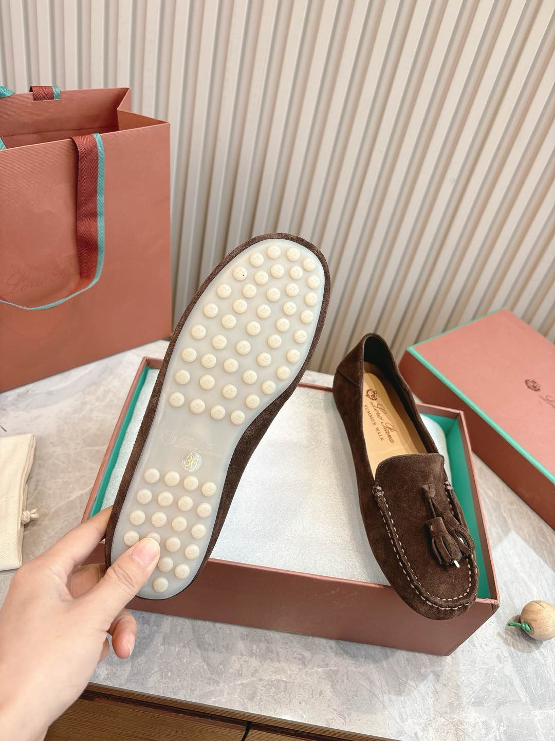 這款鞋子是AAAAA 1:1 質量(非常棒). 使用了和原版一模一樣的材料. 商標部分也保持了和Loro Piana一樣. 圖片拍攝是實物鞋子拍攝, 您所收到的實物保證和我們圖片一模一樣.