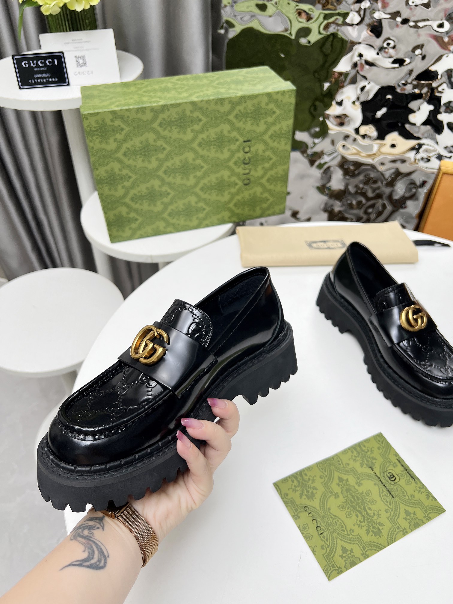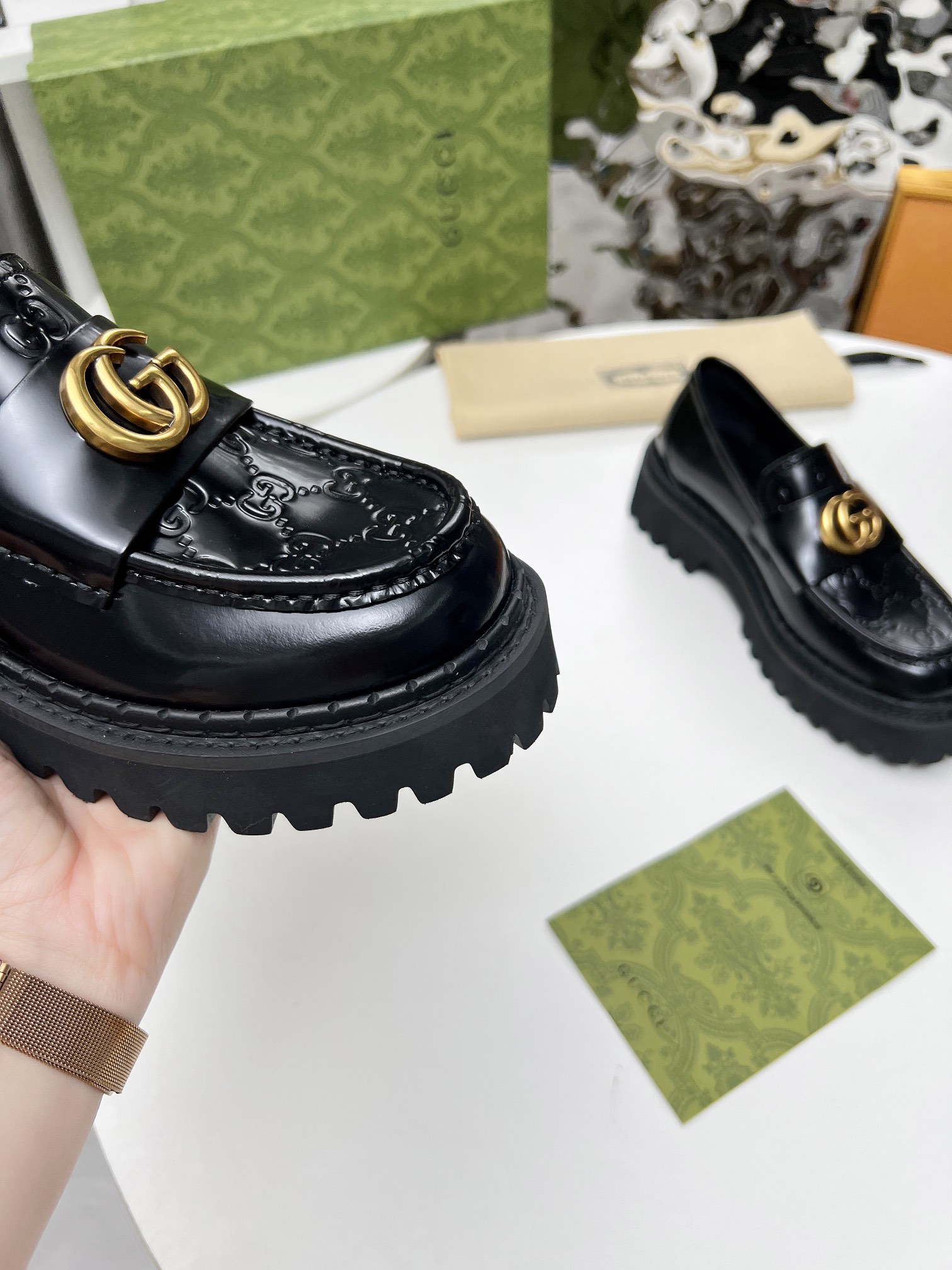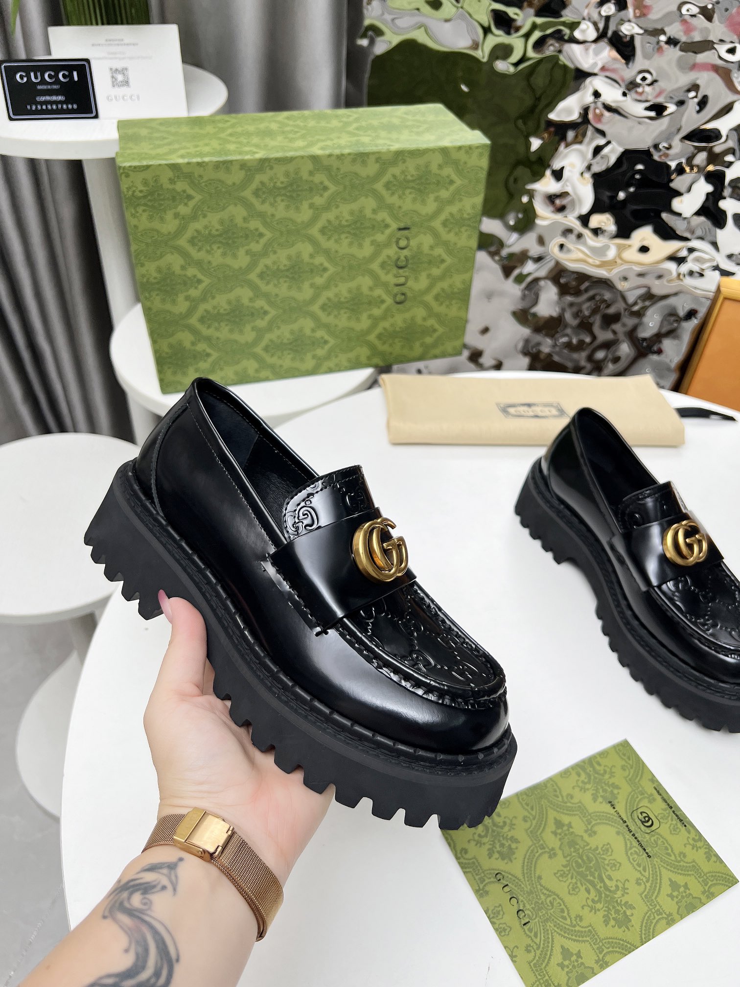 這款鞋子是AAAAA 1:1 質量(非常棒). 使用了和原版一模一樣的材料. 商標部分也保持了和古奇/Gucci一樣. 圖片拍攝是實物鞋子拍攝, 您所收到的實物保證和我們圖片一模一樣.