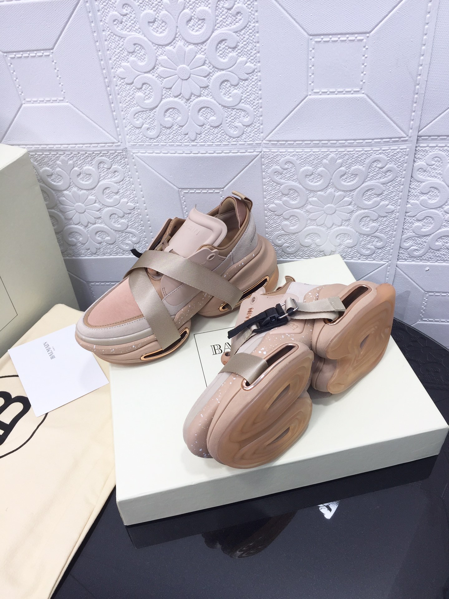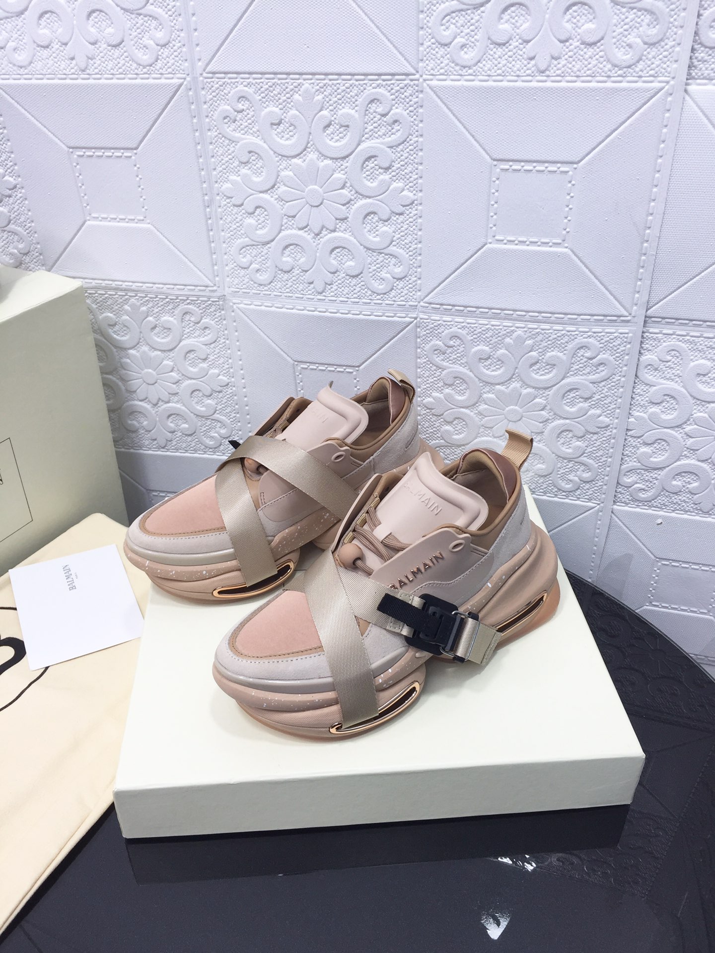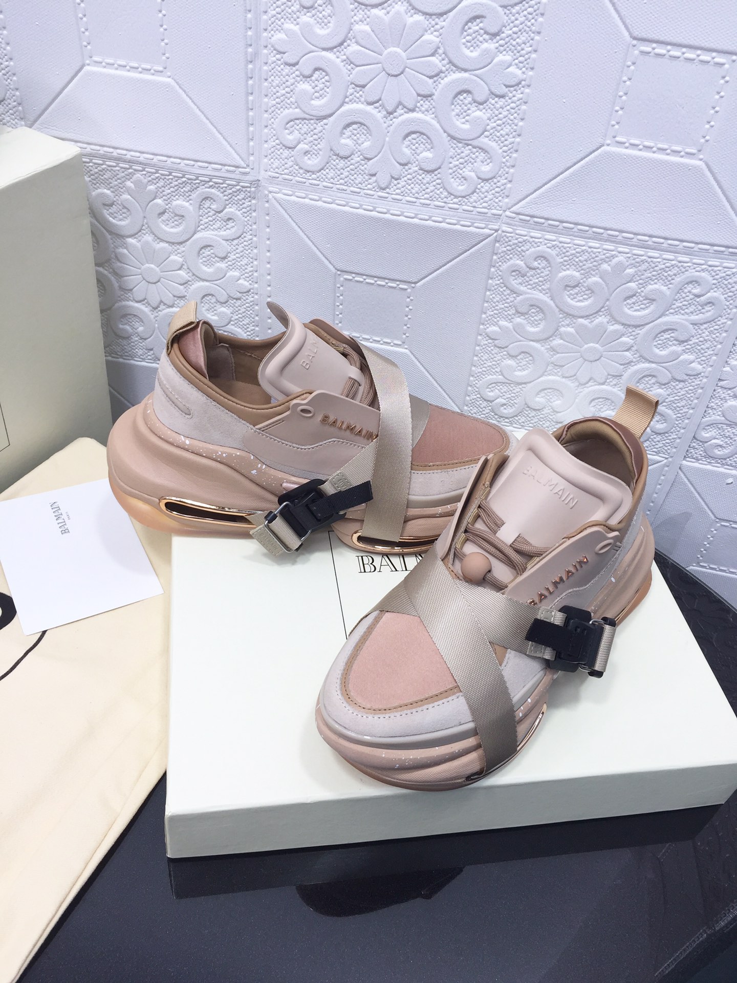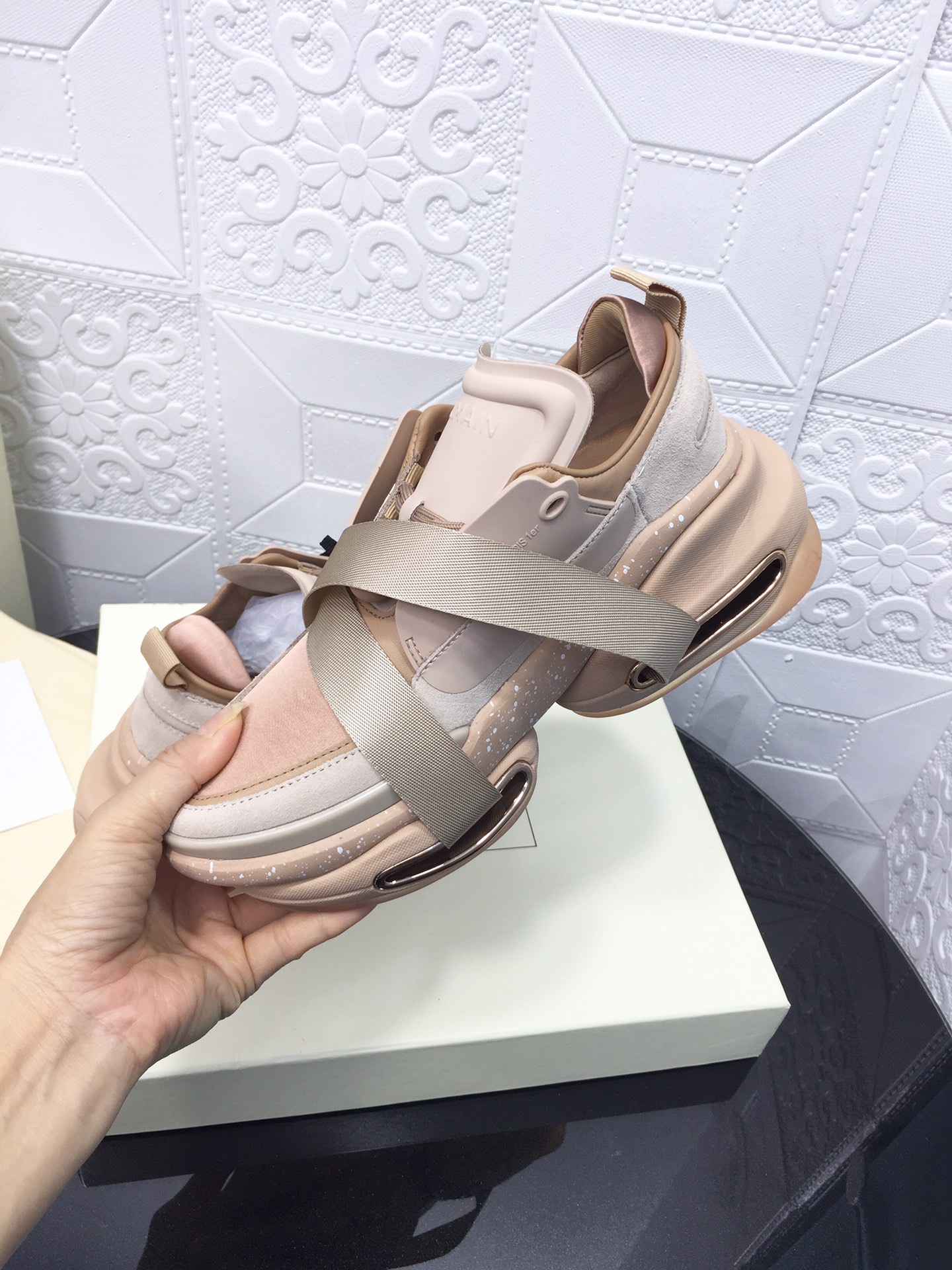 這款鞋子是AAAAA 1:1 質量(非常棒). 使用了和原版一模一樣的材料. 商標部分也保持了和巴爾曼/Balmain一樣. 圖片拍攝是實物鞋子拍攝, 您所收到的實物保證和我們圖片一模一樣.