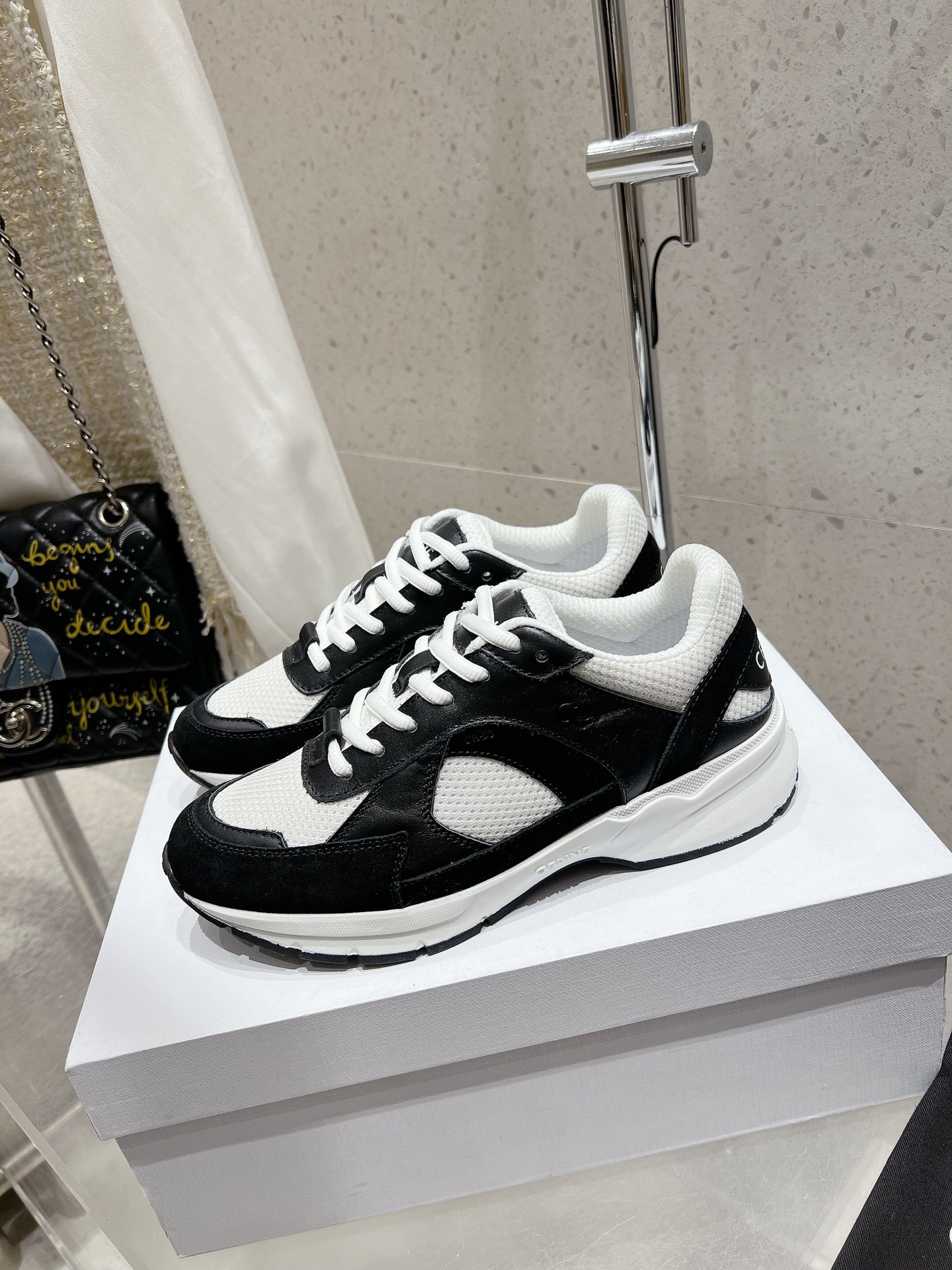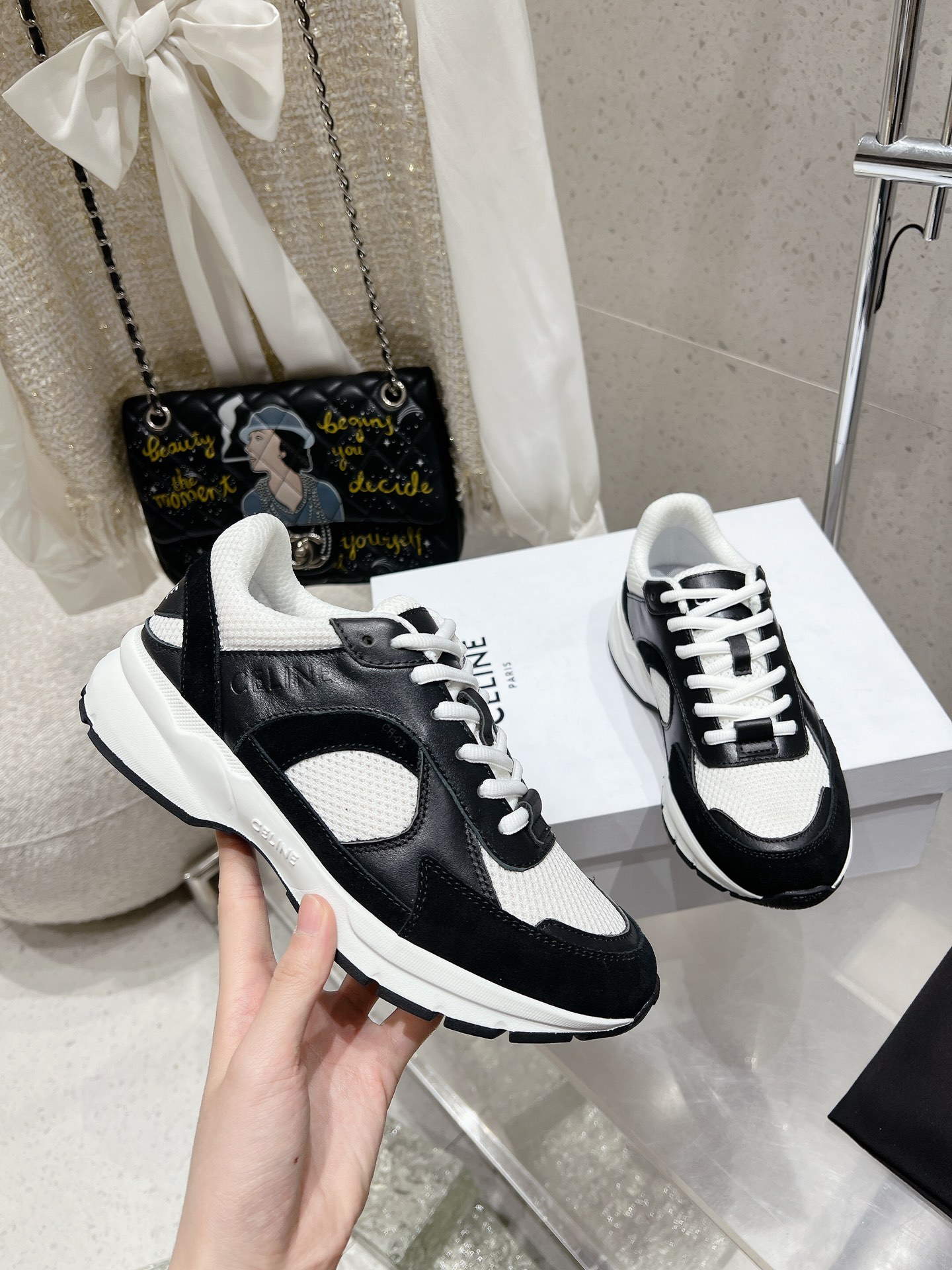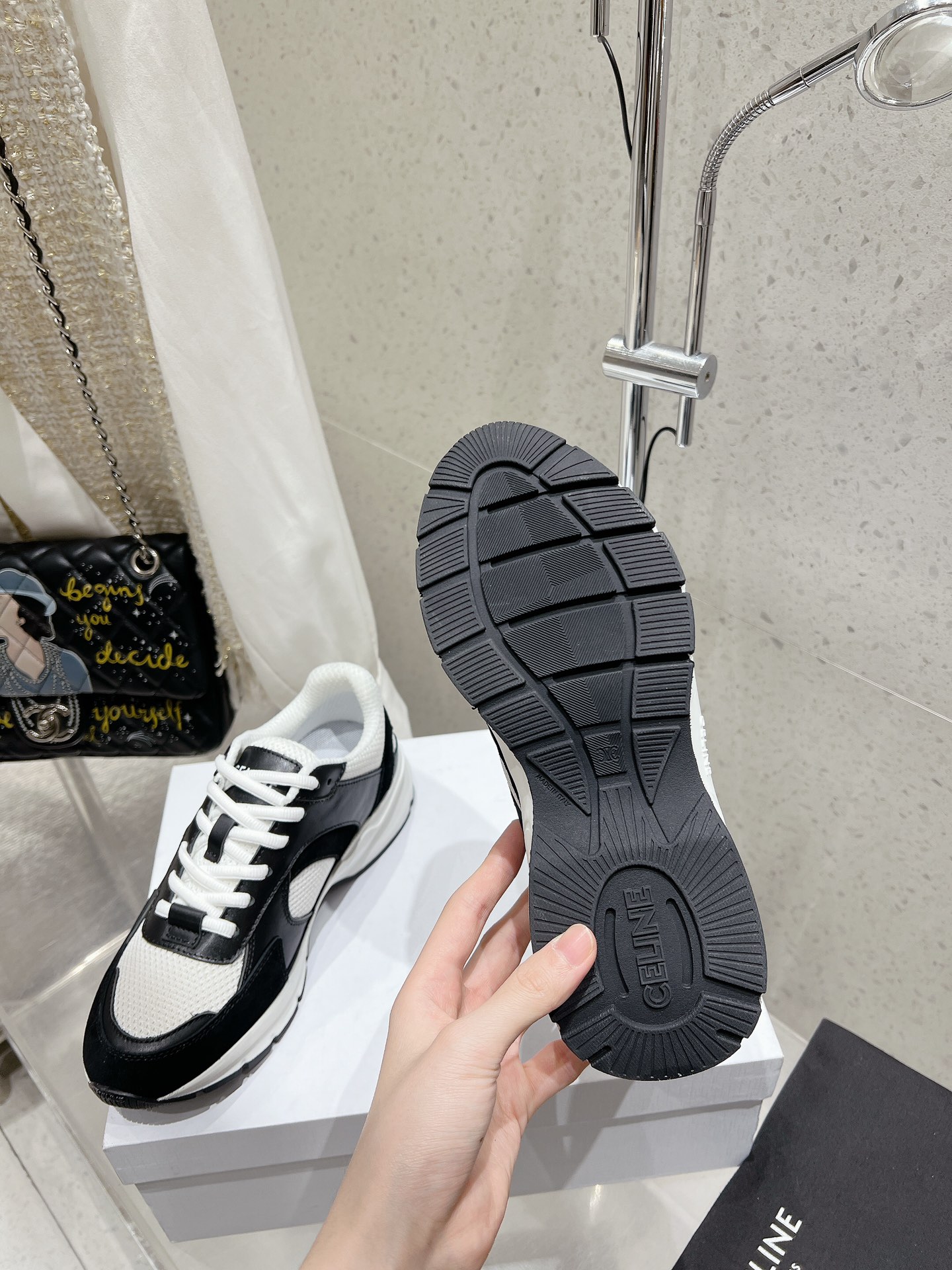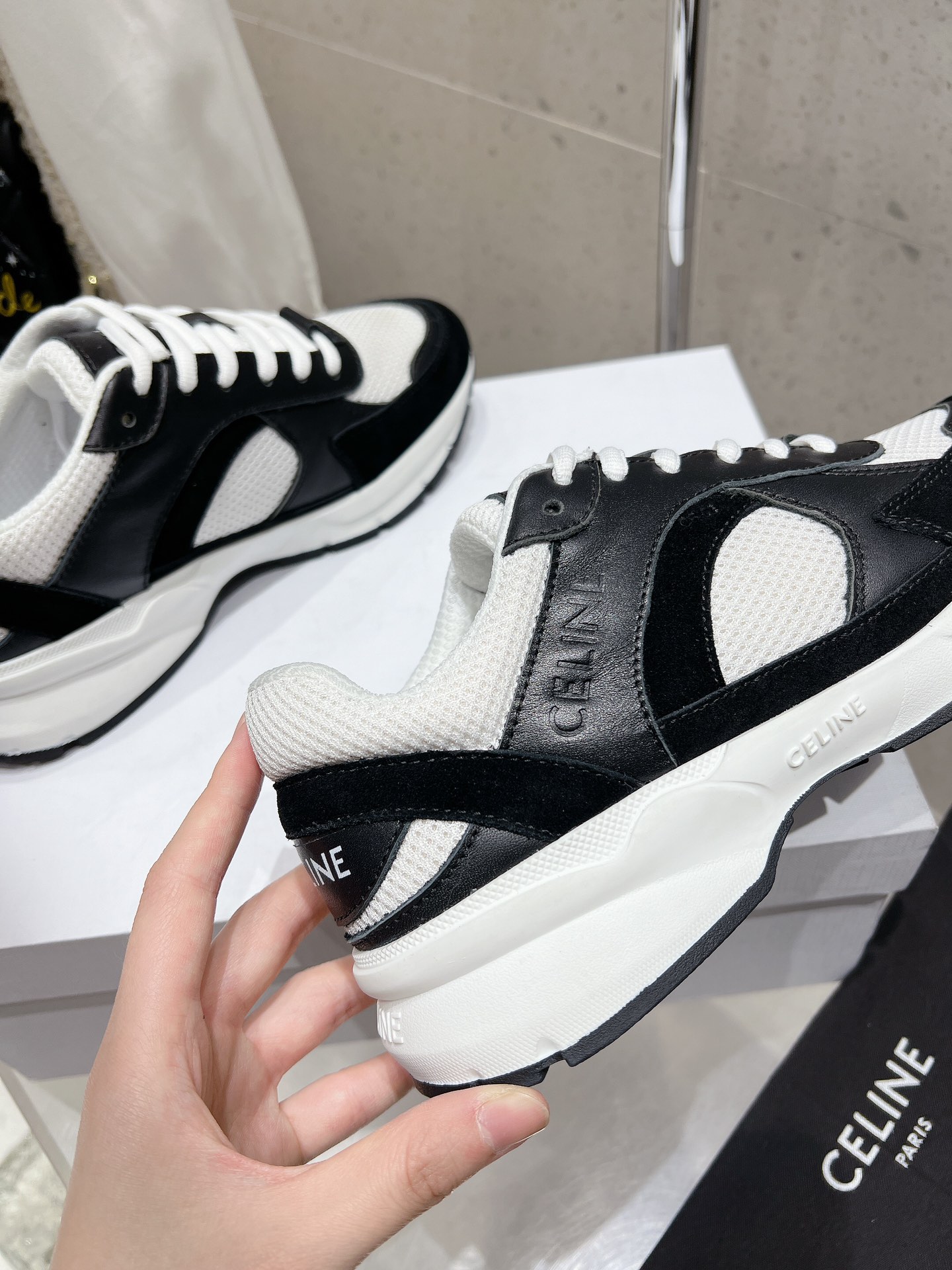 這款鞋子是AAAAA 1:1 質量(非常棒). 使用了和原版一模一樣的材料. 商標部分也保持了和思琳/赛琳/Celine一樣. 圖片拍攝是實物鞋子拍攝, 您所收到的實物保證和我們圖片一模一樣.