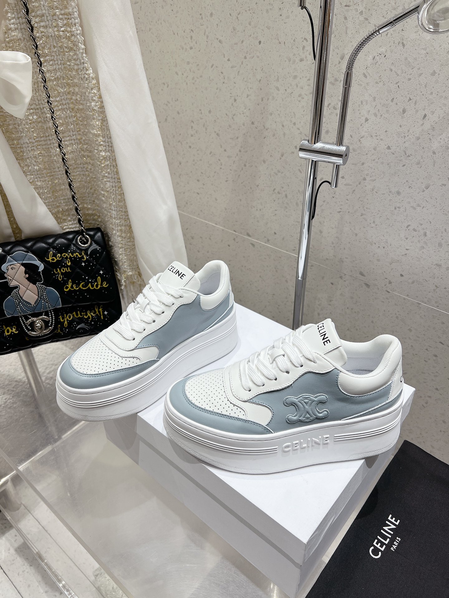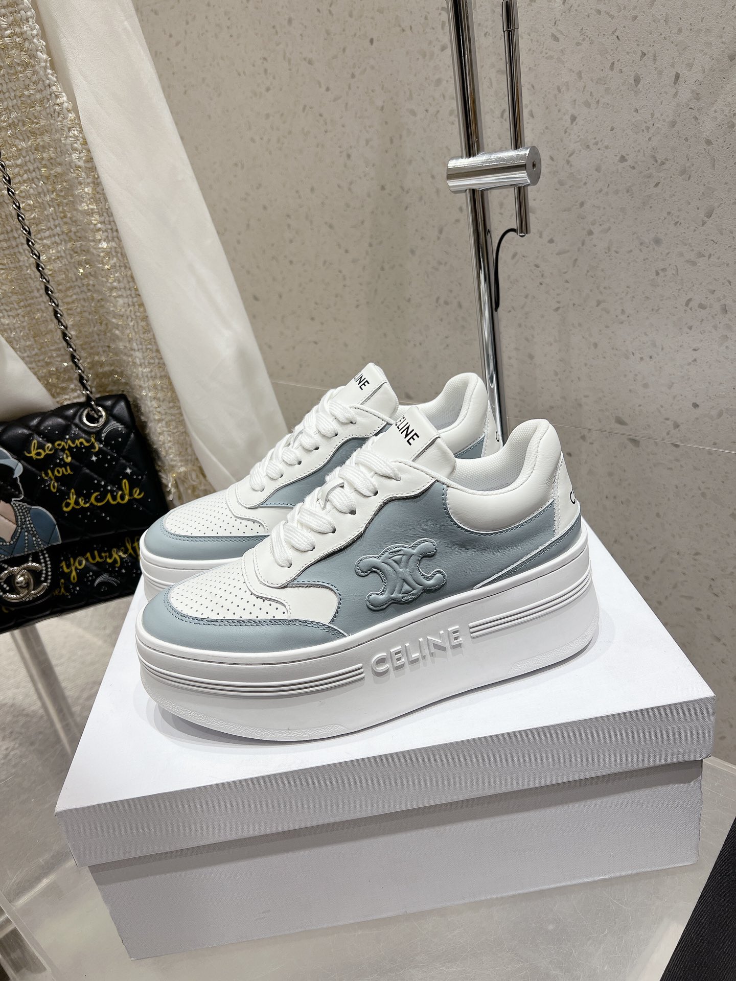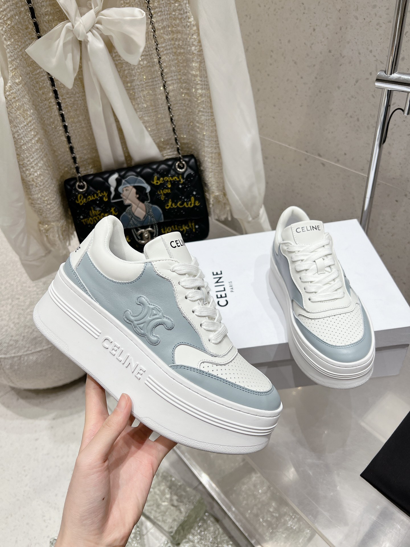 這款鞋子是AAAAA 1:1 質量(非常棒). 使用了和原版一模一樣的材料. 商標部分也保持了和思琳/赛琳/Celine一樣. 圖片拍攝是實物鞋子拍攝, 您所收到的實物保證和我們圖片一模一樣.