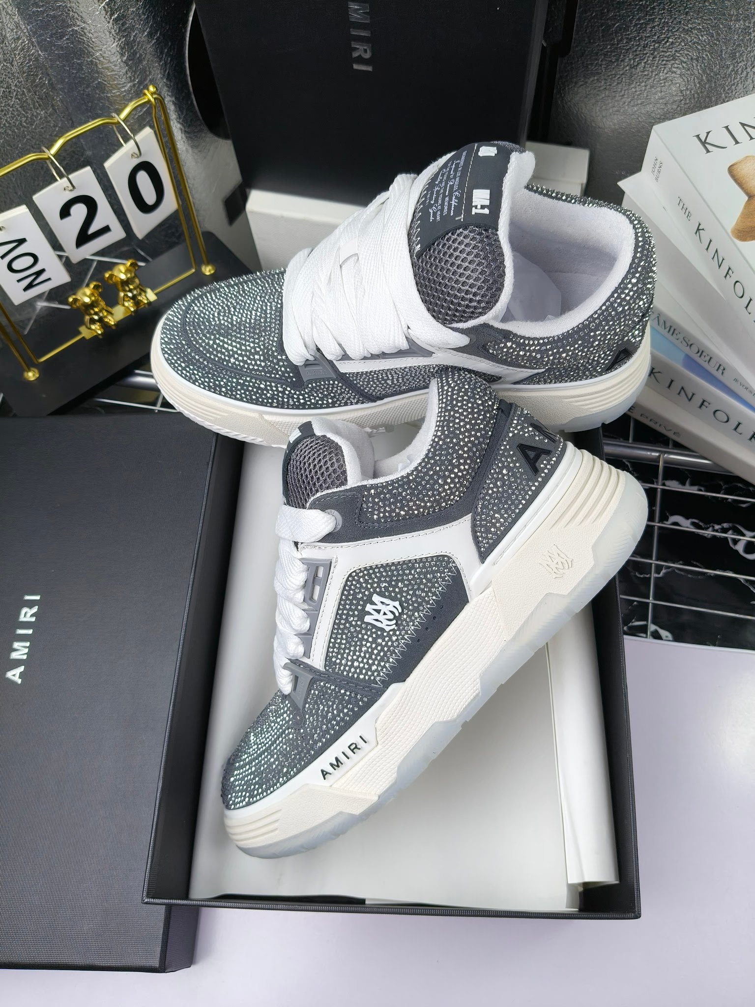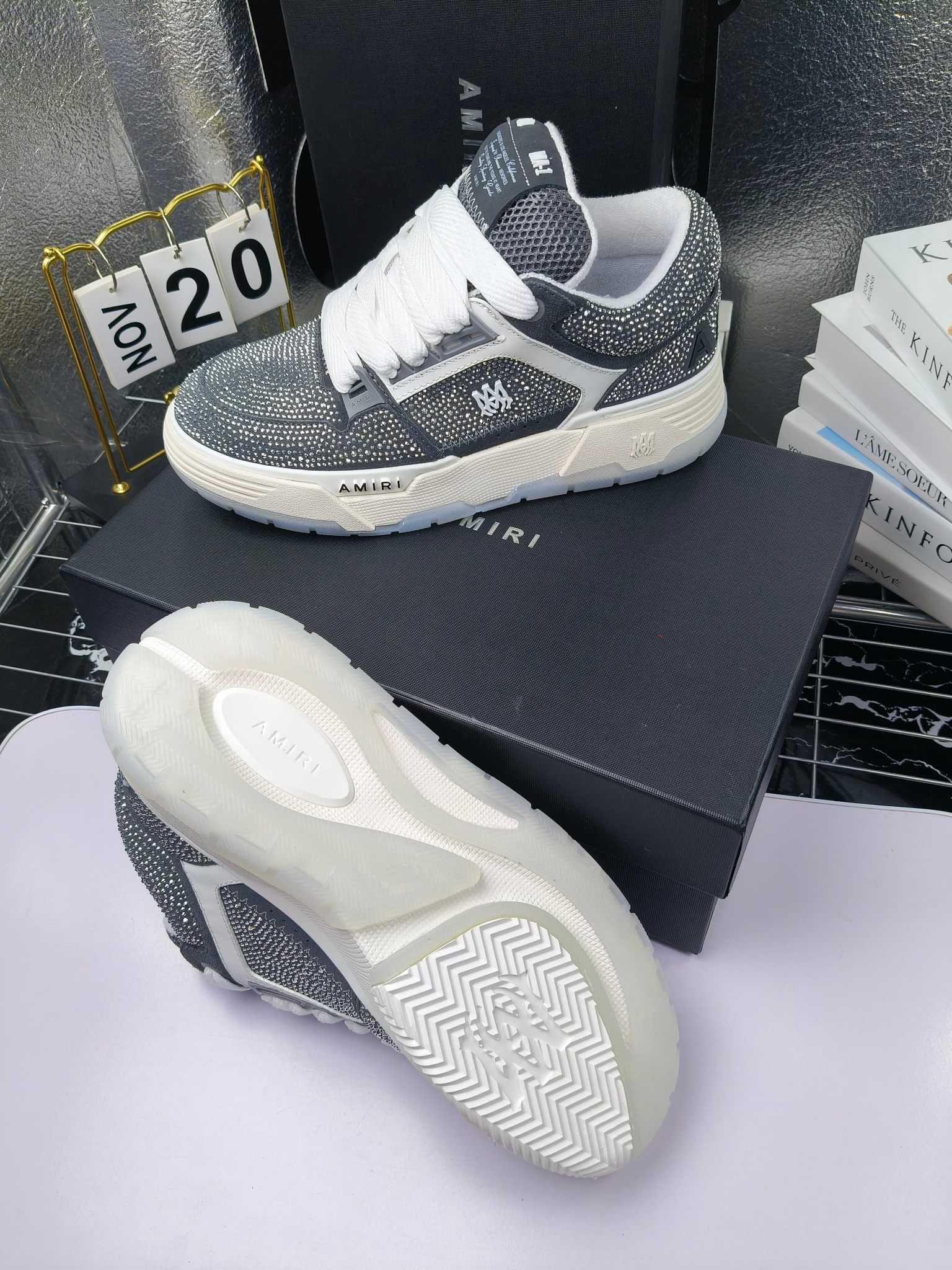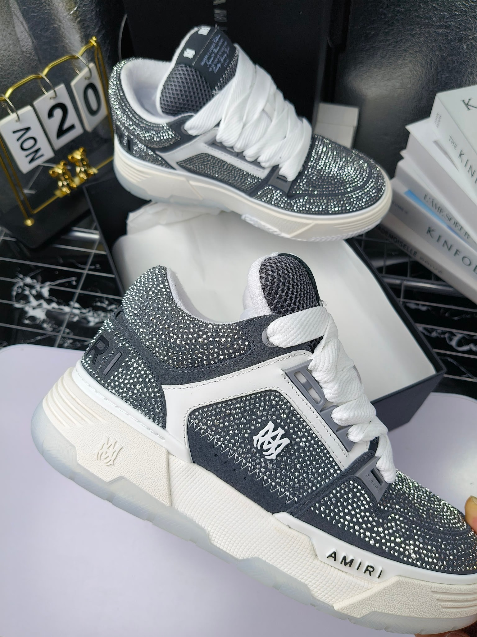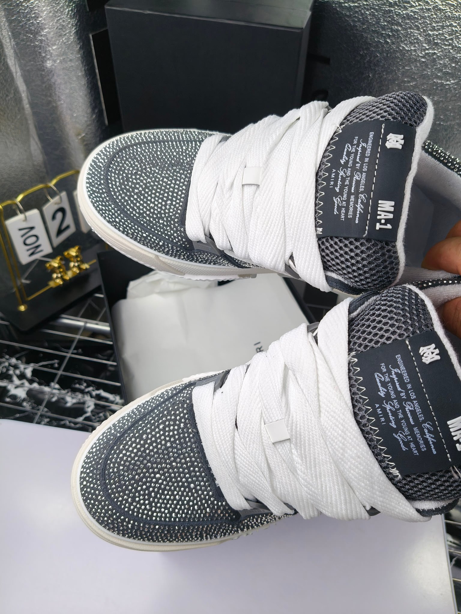這款鞋子是AAAAA 1:1 質量(非常棒). 使用了和原版一模一樣的材料. 商標部分也保持了和AMIRI一樣. 圖片拍攝是實物鞋子拍攝, 您所收到的實物保證和我們圖片一模一樣.