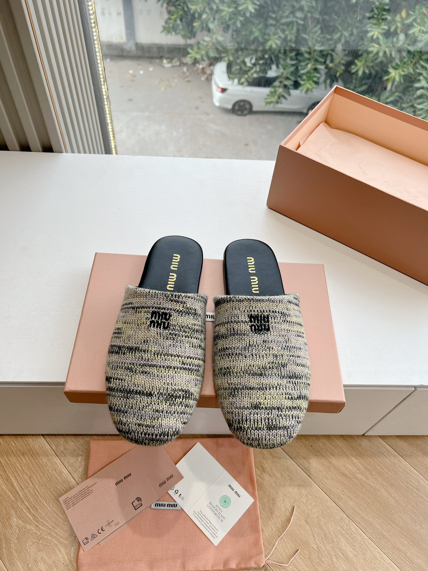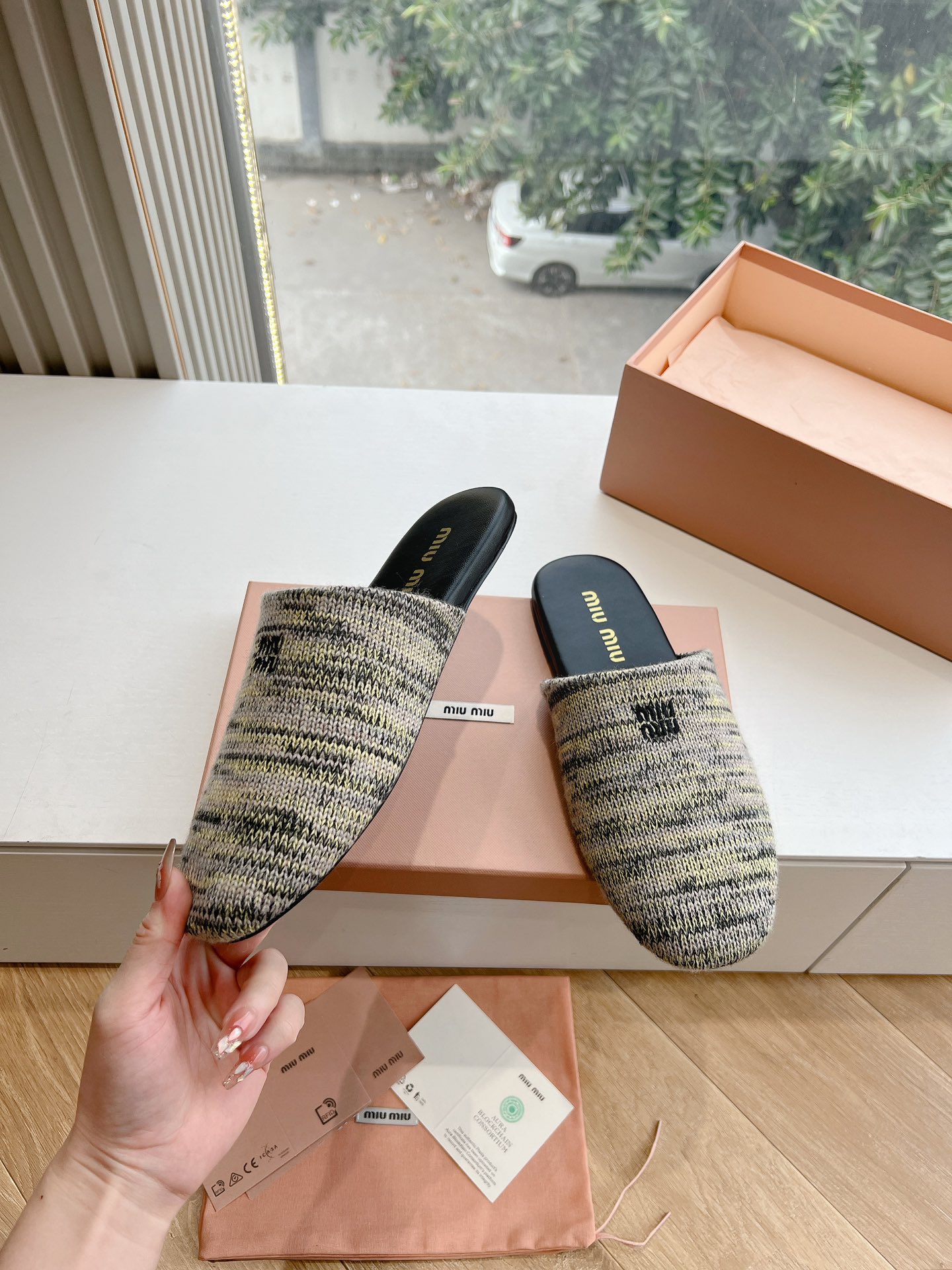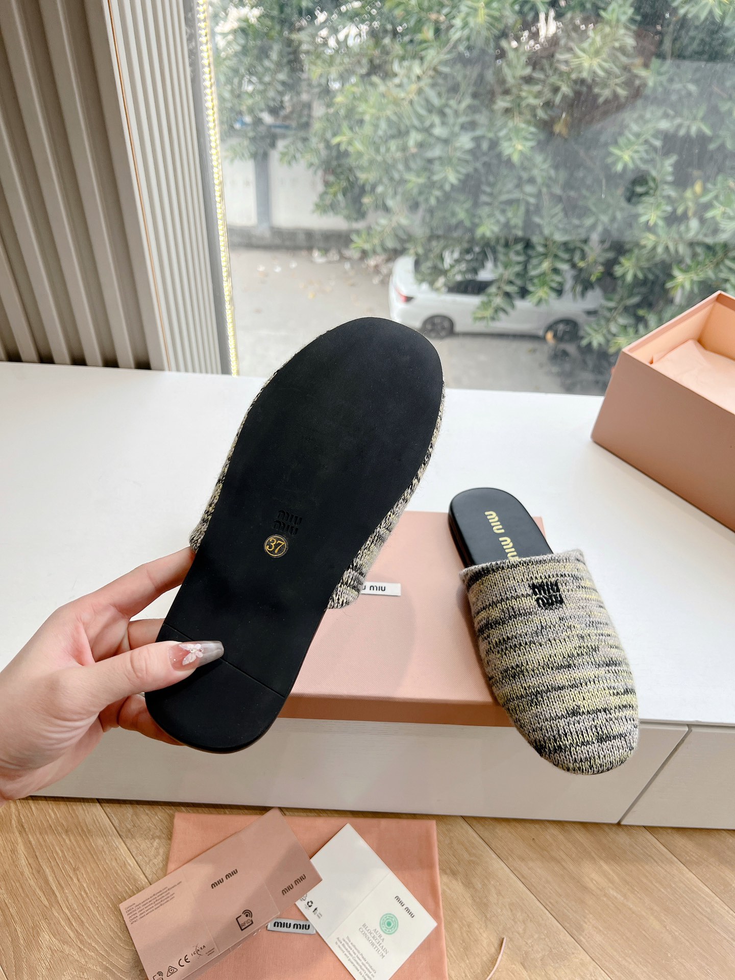 這款鞋子是AAAAA 1:1 質量(非常棒). 使用了和原版一模一樣的材料. 商標部分也保持了和繆繆/Miu Miu一樣. 圖片拍攝是實物鞋子拍攝, 您所收到的實物保證和我們圖片一模一樣.