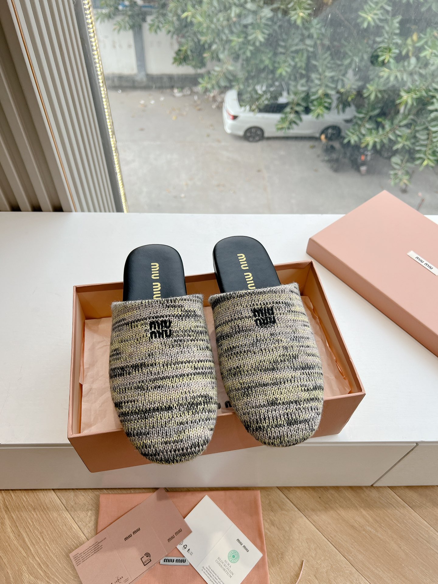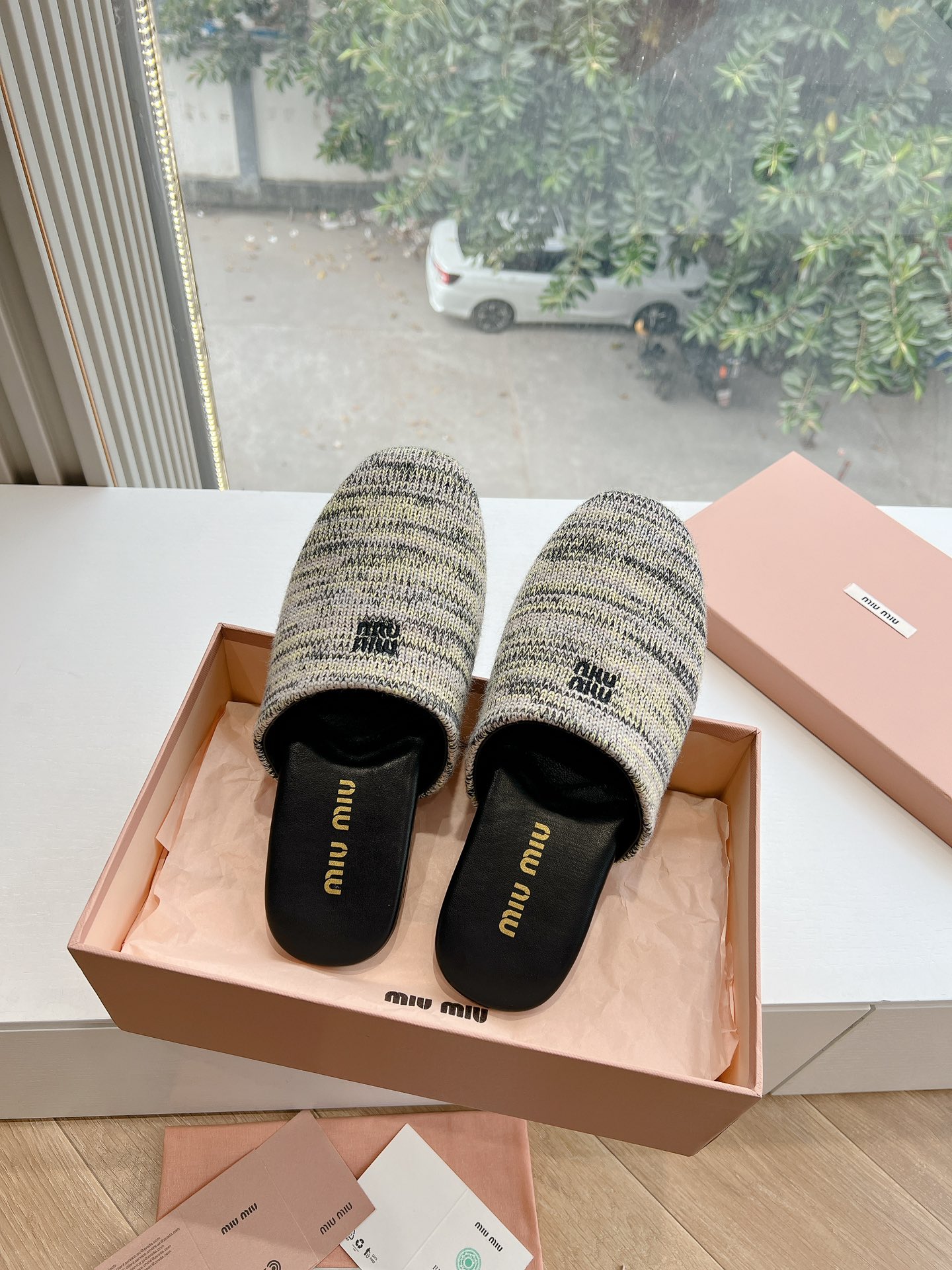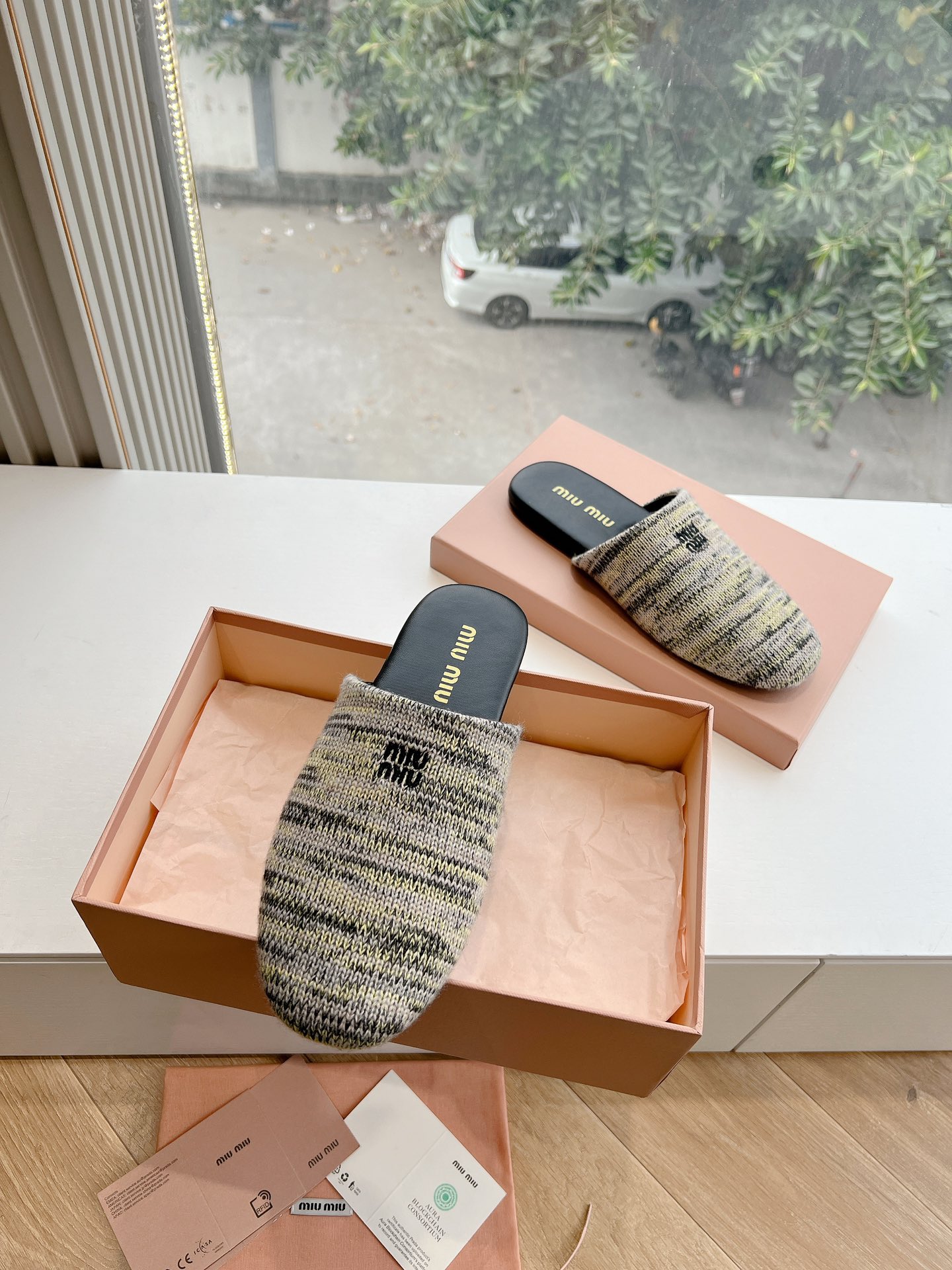 這款鞋子是AAAAA 1:1 質量(非常棒). 使用了和原版一模一樣的材料. 商標部分也保持了和繆繆/Miu Miu一樣. 圖片拍攝是實物鞋子拍攝, 您所收到的實物保證和我們圖片一模一樣.