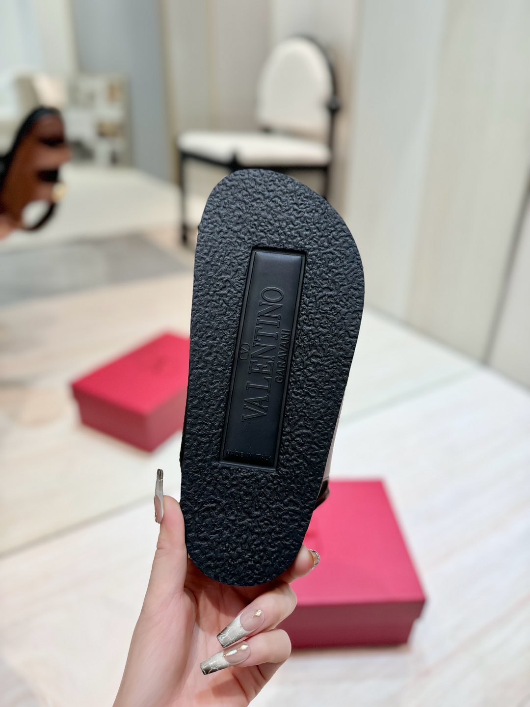 這款鞋子是AAAAA 1:1 質量(非常棒). 使用了和原版一模一樣的材料. 商標部分也保持了和瓦倫蒂諾/Valentino一樣. 圖片拍攝是實物鞋子拍攝, 您所收到的實物保證和我們圖片一模一樣.