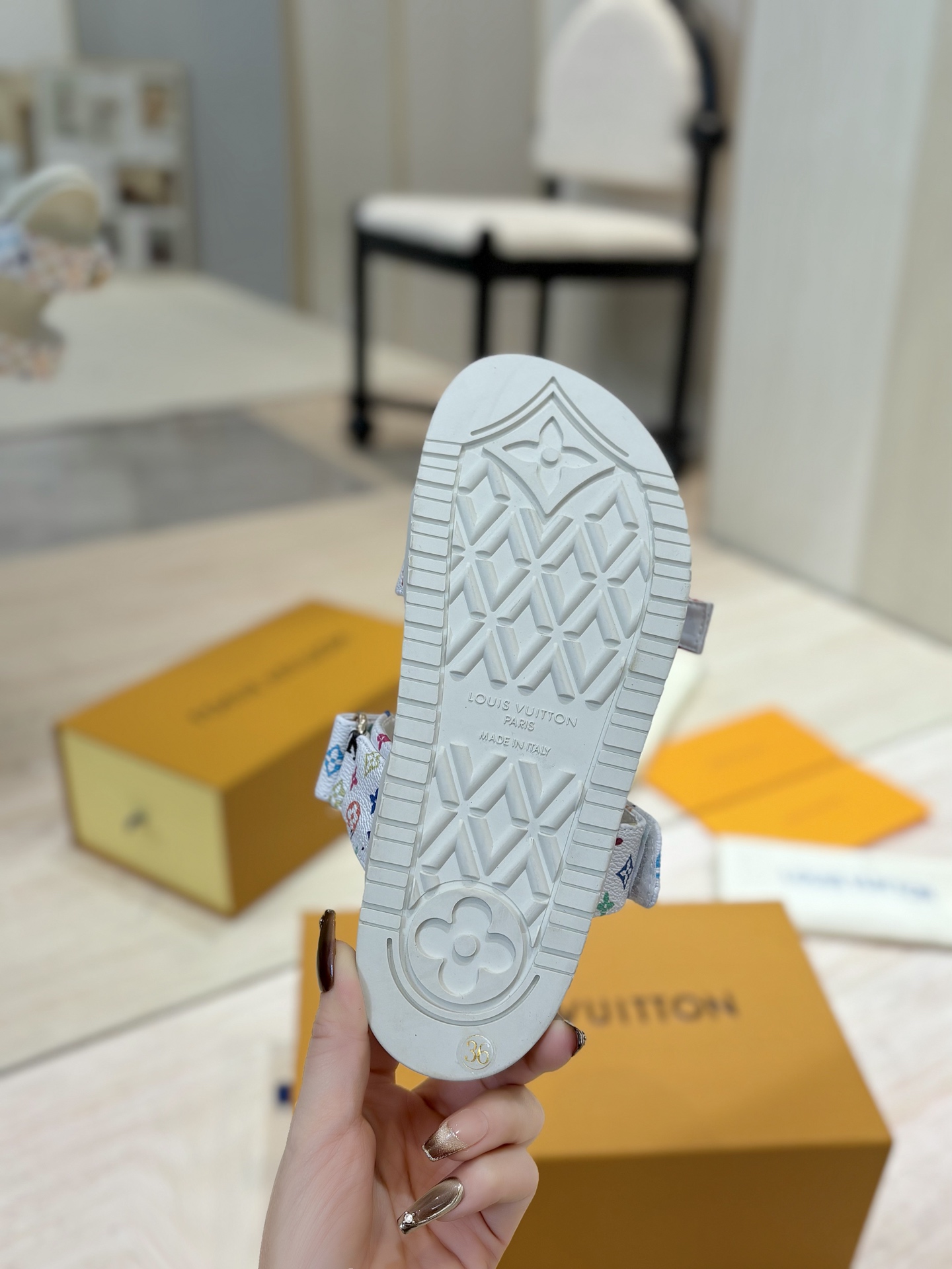 這款鞋子是AAAAA 1:1 質量(非常棒). 使用了和原版一模一樣的材料. 商標部分也保持了和路易威登/Louis Vuitton一樣. 圖片拍攝是實物鞋子拍攝, 您所收到的實物保證和我們圖片一模一樣.