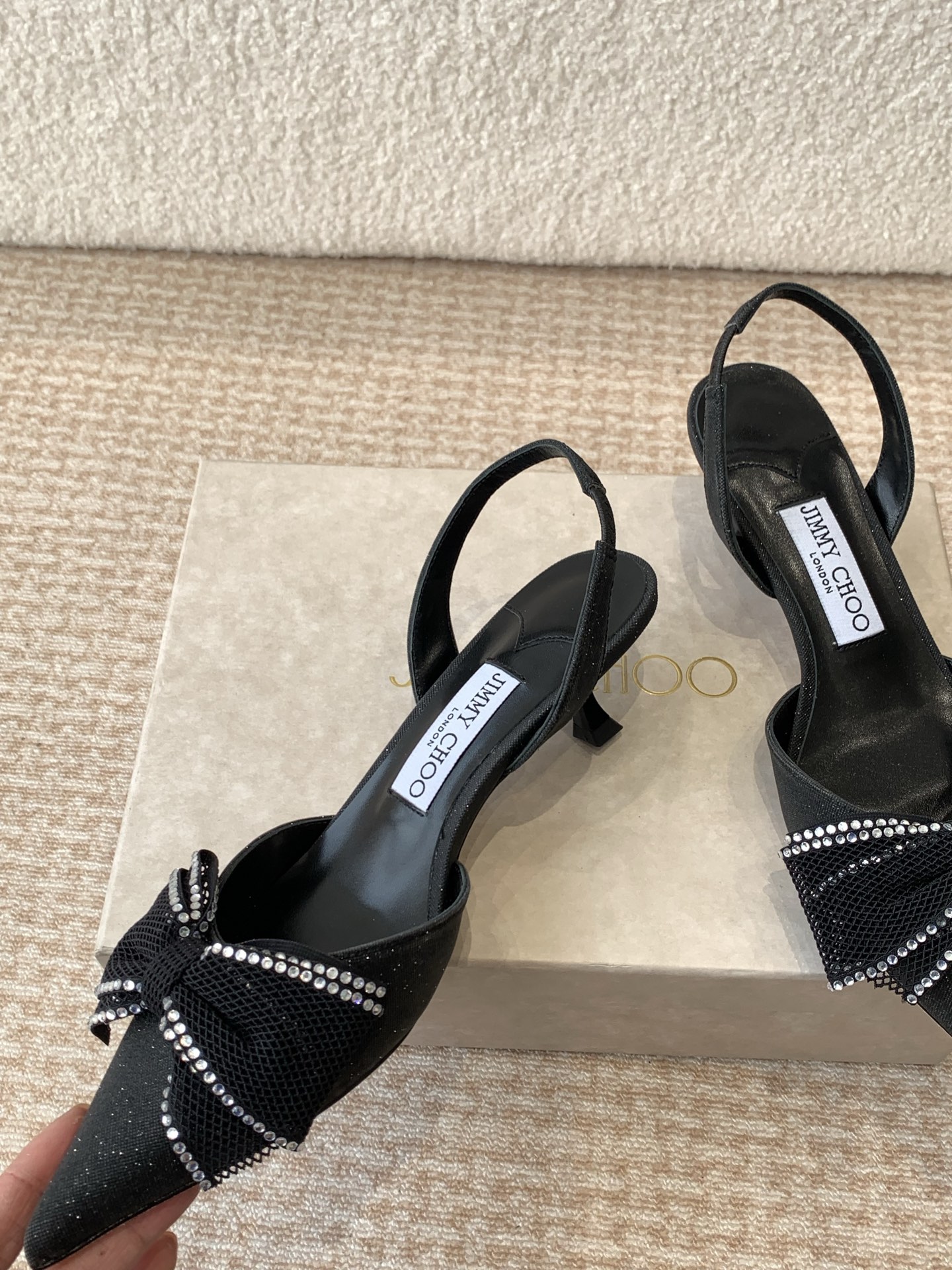 這款鞋子是AAAAA 1:1 質量(非常棒). 使用了和原版一模一樣的材料. 商標部分也保持了和吉米喬/JIMMY CHOO一樣. 圖片拍攝是實物鞋子拍攝, 您所收到的實物保證和我們圖片一模一樣.