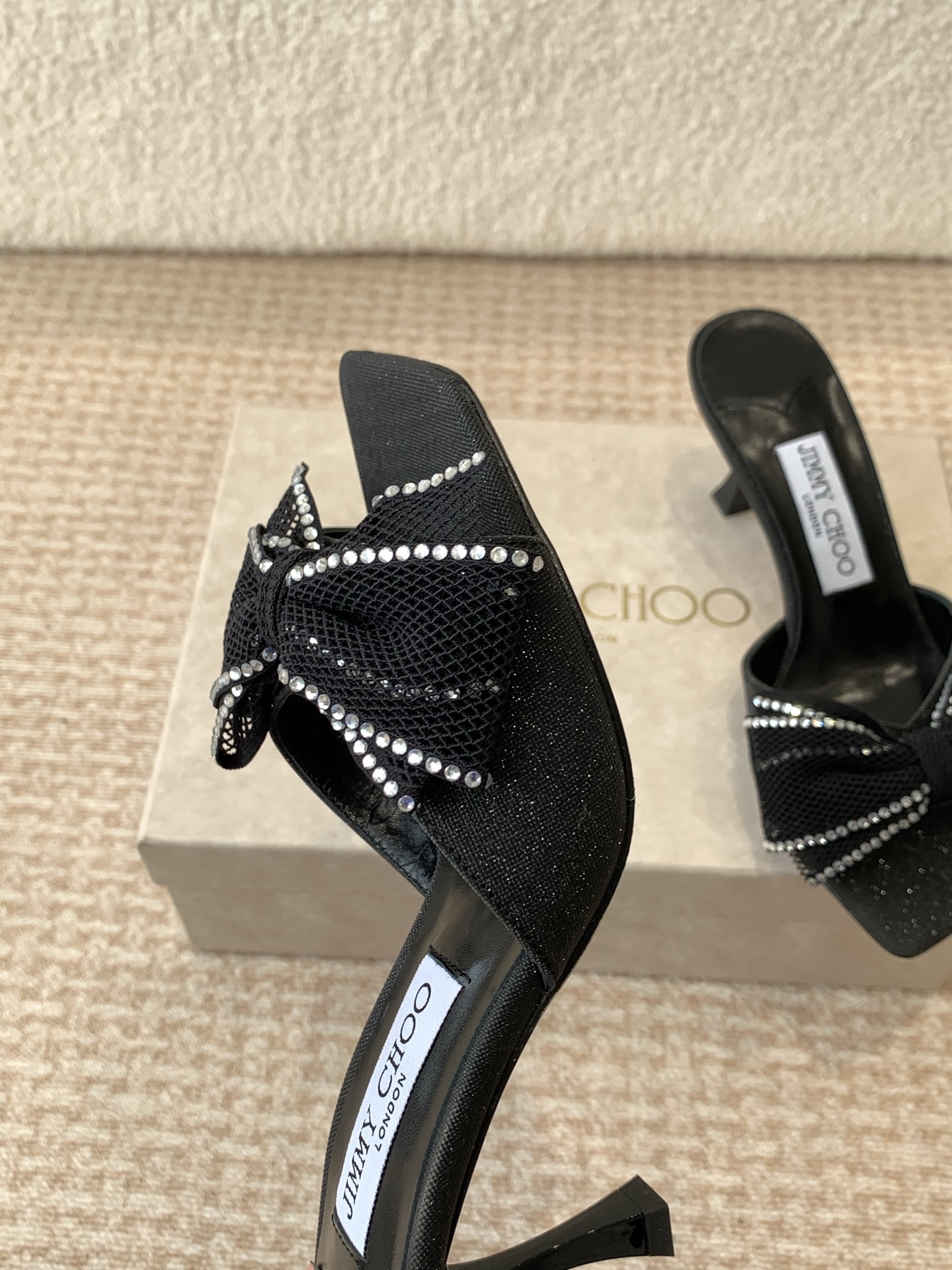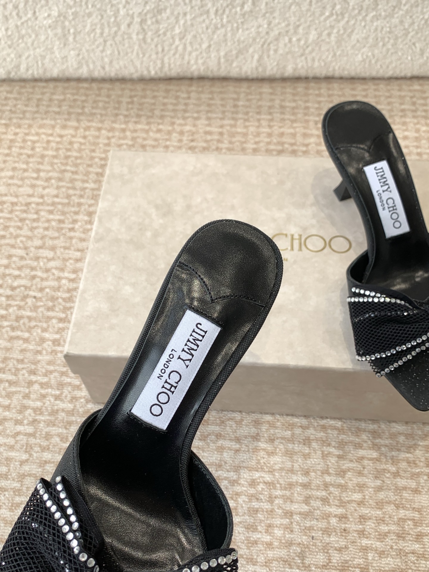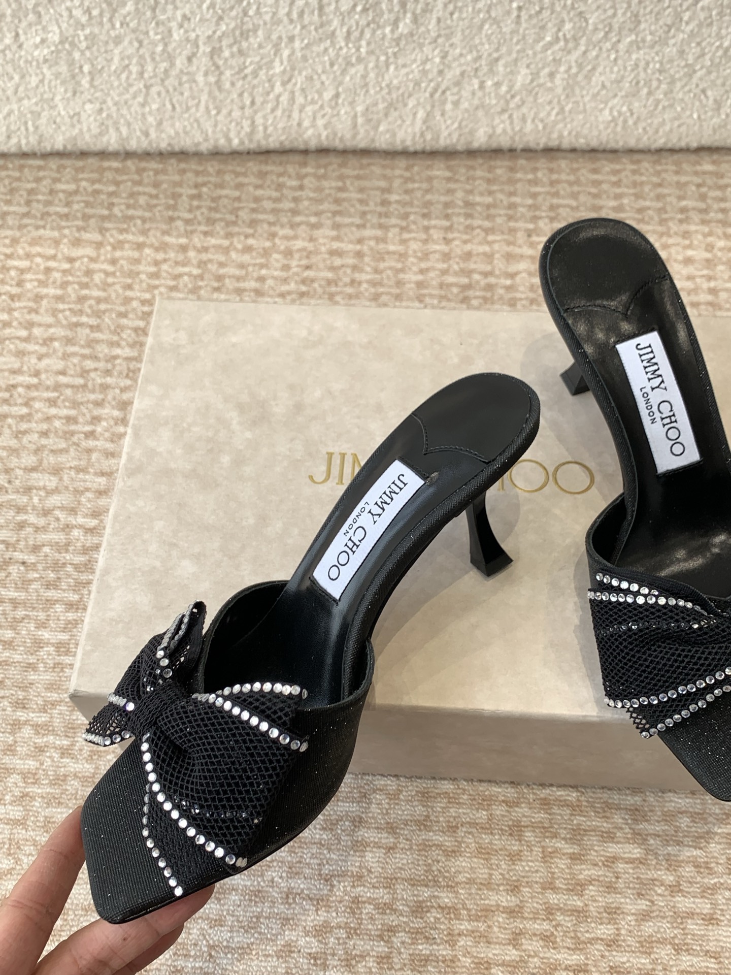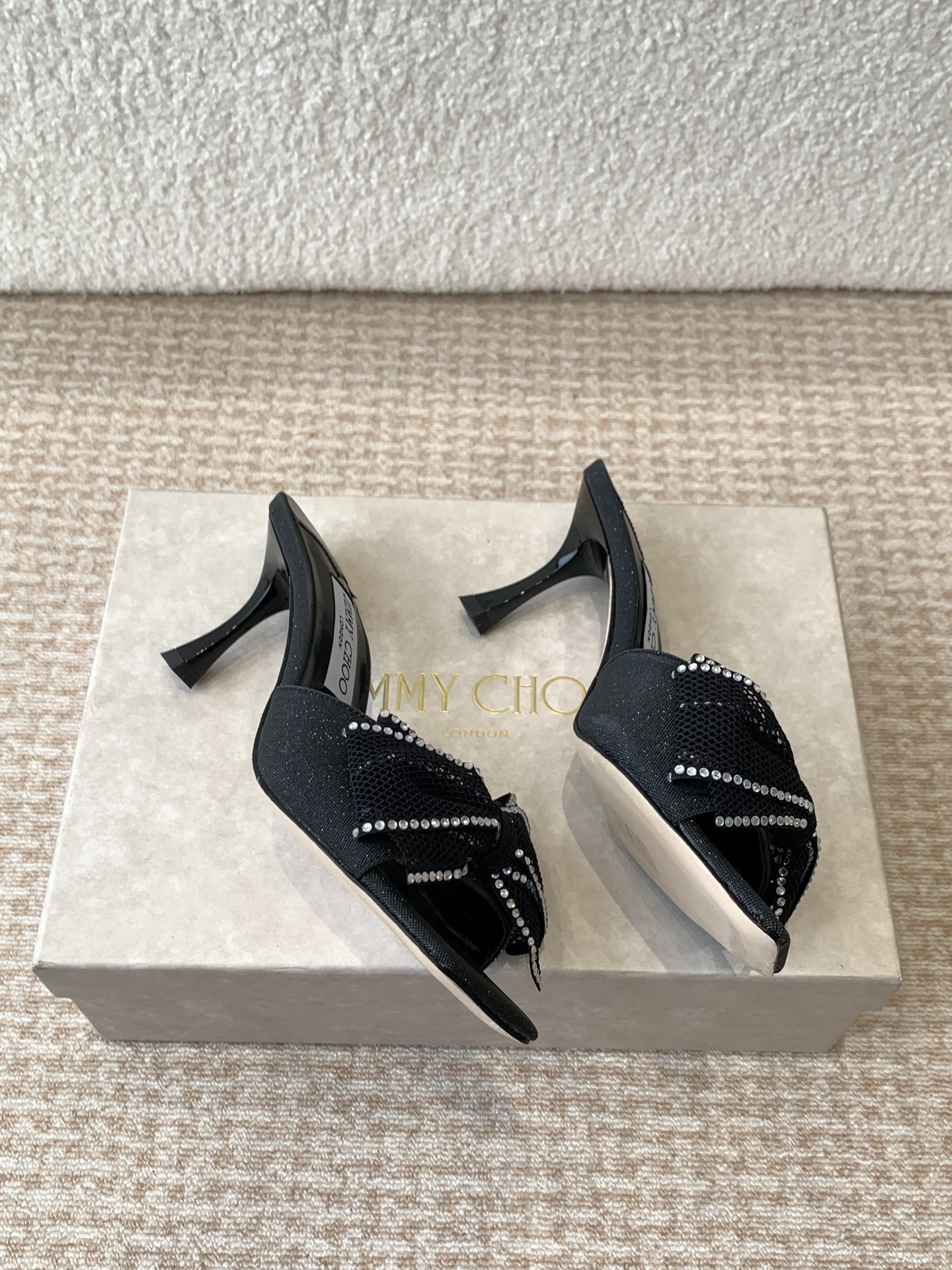 這款鞋子是AAAAA 1:1 質量(非常棒). 使用了和原版一模一樣的材料. 商標部分也保持了和吉米喬/JIMMY CHOO一樣. 圖片拍攝是實物鞋子拍攝, 您所收到的實物保證和我們圖片一模一樣.