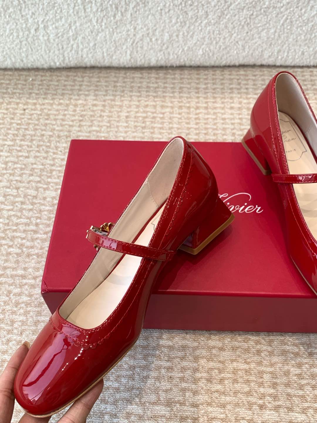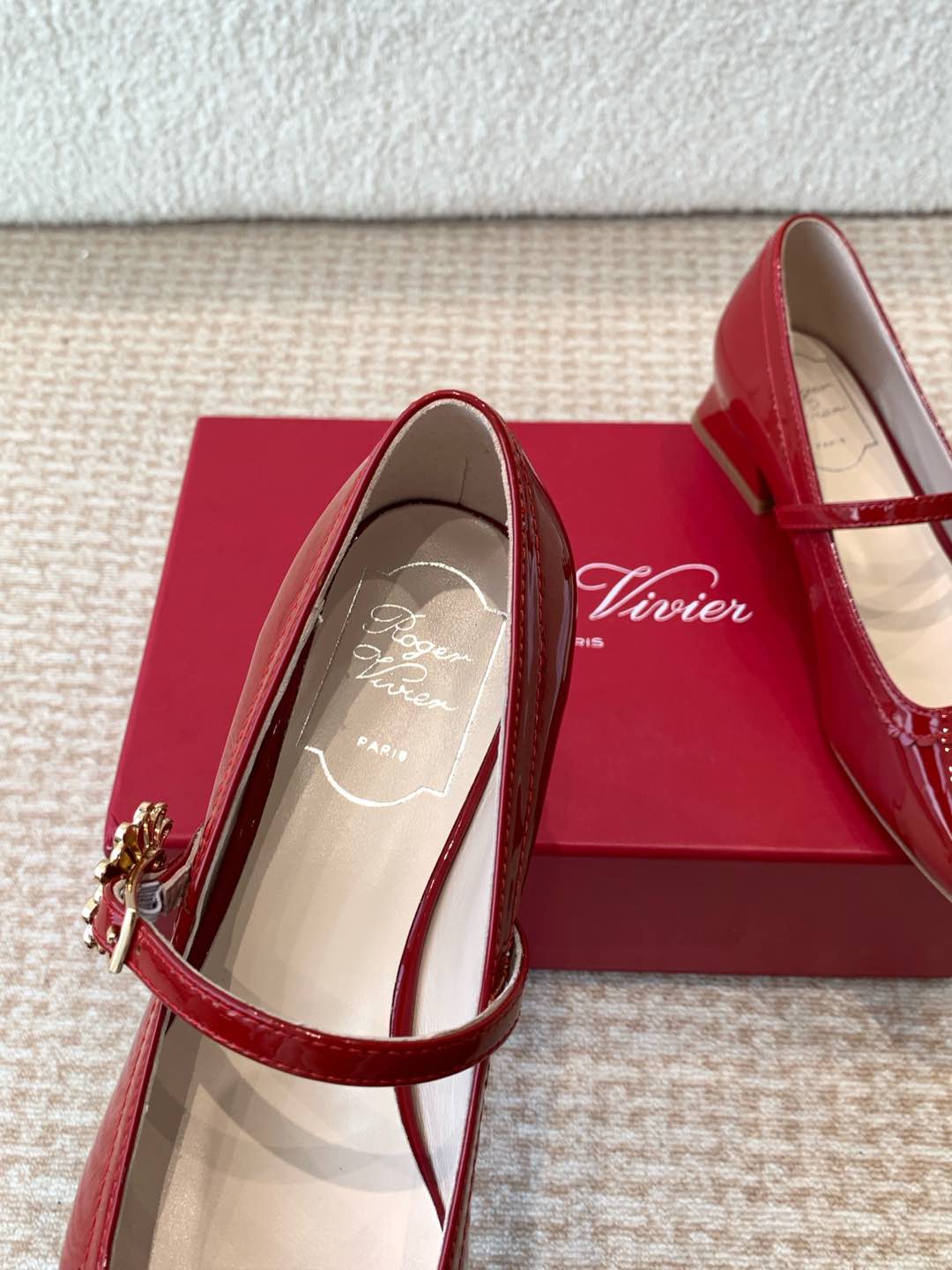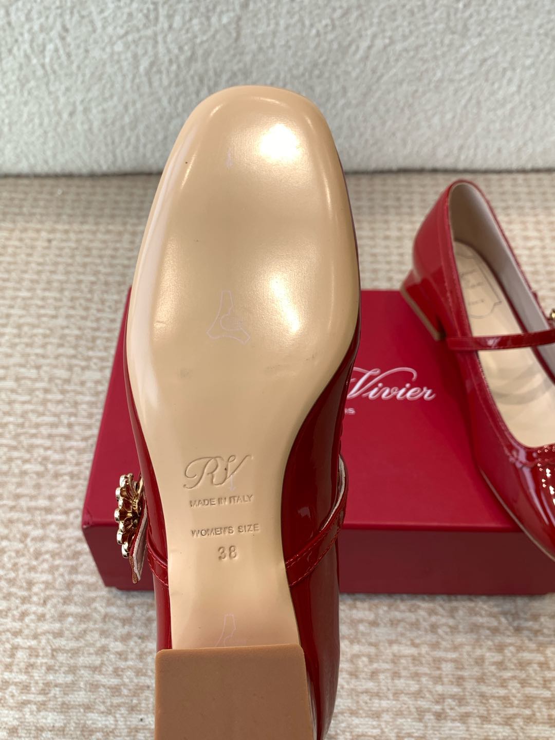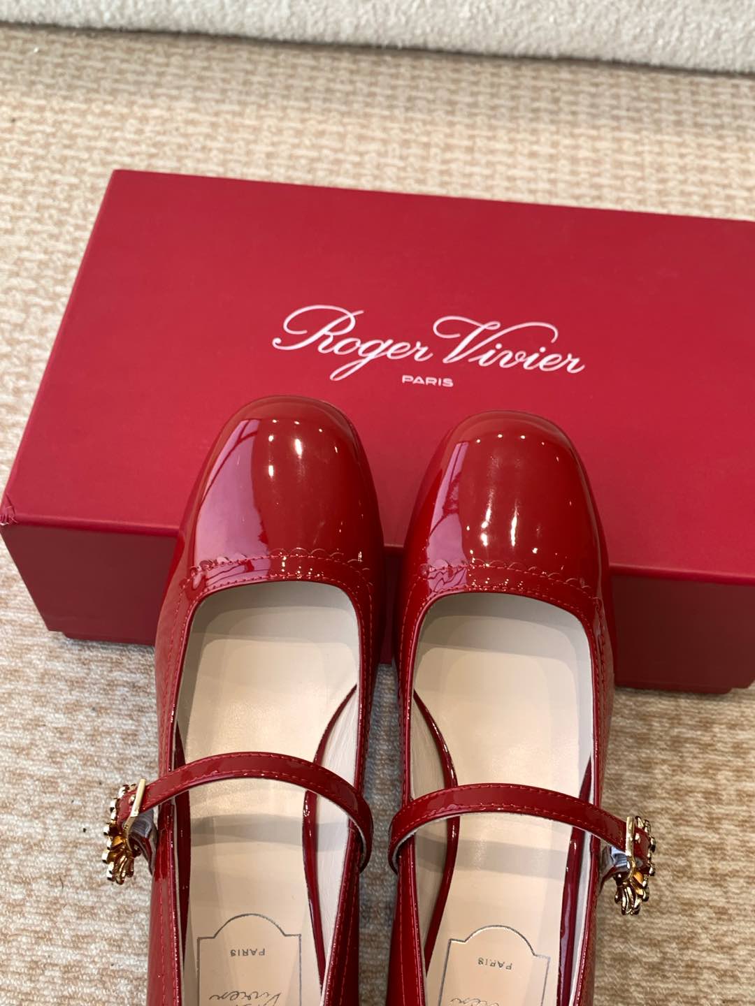 這款鞋子是AAAAA 1:1 質量(非常棒). 使用了和原版一模一樣的材料. 商標部分也保持了和羅傑維維耶/Roger Vivier一樣. 圖片拍攝是實物鞋子拍攝, 您所收到的實物保證和我們圖片一模一樣.
