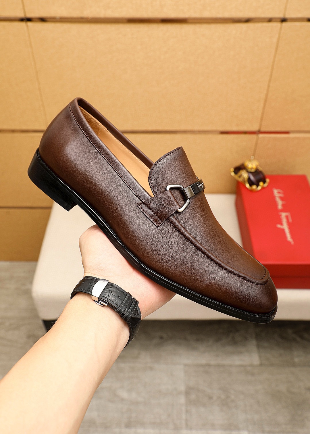 這款鞋子是AAAAA 1:1 質量(非常棒). 使用了和原版一模一樣的材料. 商標部分也保持了和菲拉格慕/Salvatore Ferragamo一樣. 圖片拍攝是實物鞋子拍攝, 您所收到的實物保證和我們圖片一模一樣.