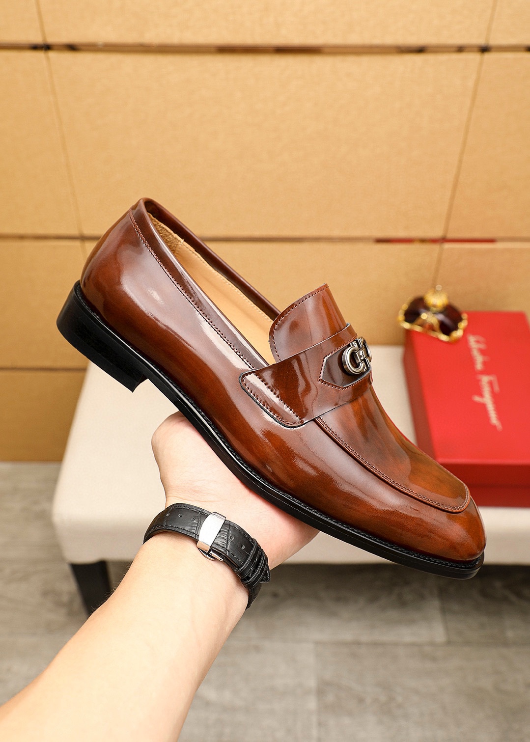 這款鞋子是AAAAA 1:1 質量(非常棒). 使用了和原版一模一樣的材料. 商標部分也保持了和菲拉格慕/Salvatore Ferragamo一樣. 圖片拍攝是實物鞋子拍攝, 您所收到的實物保證和我們圖片一模一樣.