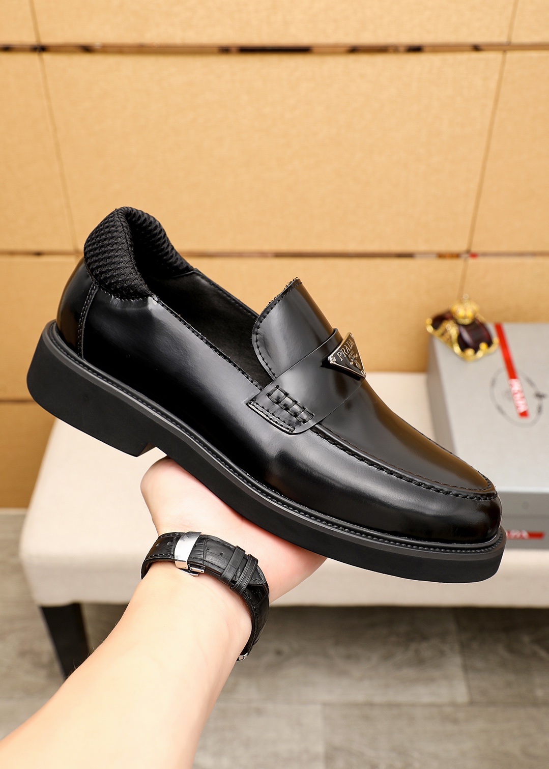 這款鞋子是AAAAA 1:1 質量(非常棒). 使用了和原版一模一樣的材料. 商標部分也保持了和普拉達/Prada一樣. 圖片拍攝是實物鞋子拍攝, 您所收到的實物保證和我們圖片一模一樣.