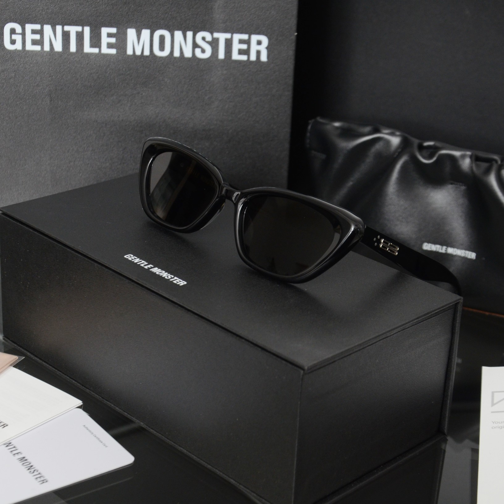這款太陽眼鏡是AAAAA 1:1 質量(非常棒). 使用了和原版一模一樣的材料. 商標部分也保持了和Gentle Monster一樣. 圖片拍攝是實物太陽眼鏡拍攝, 您所收到的實物保證和我們圖片一模一樣.