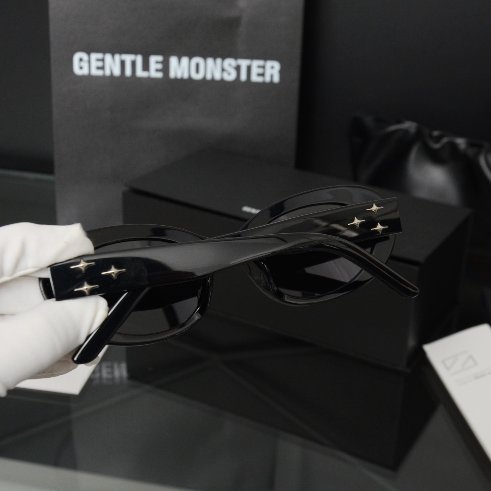 這款太陽眼鏡是AAAAA 1:1 質量(非常棒). 使用了和原版一模一樣的材料. 商標部分也保持了和Gentle Monster一樣. 圖片拍攝是實物太陽眼鏡拍攝, 您所收到的實物保證和我們圖片一模一樣.