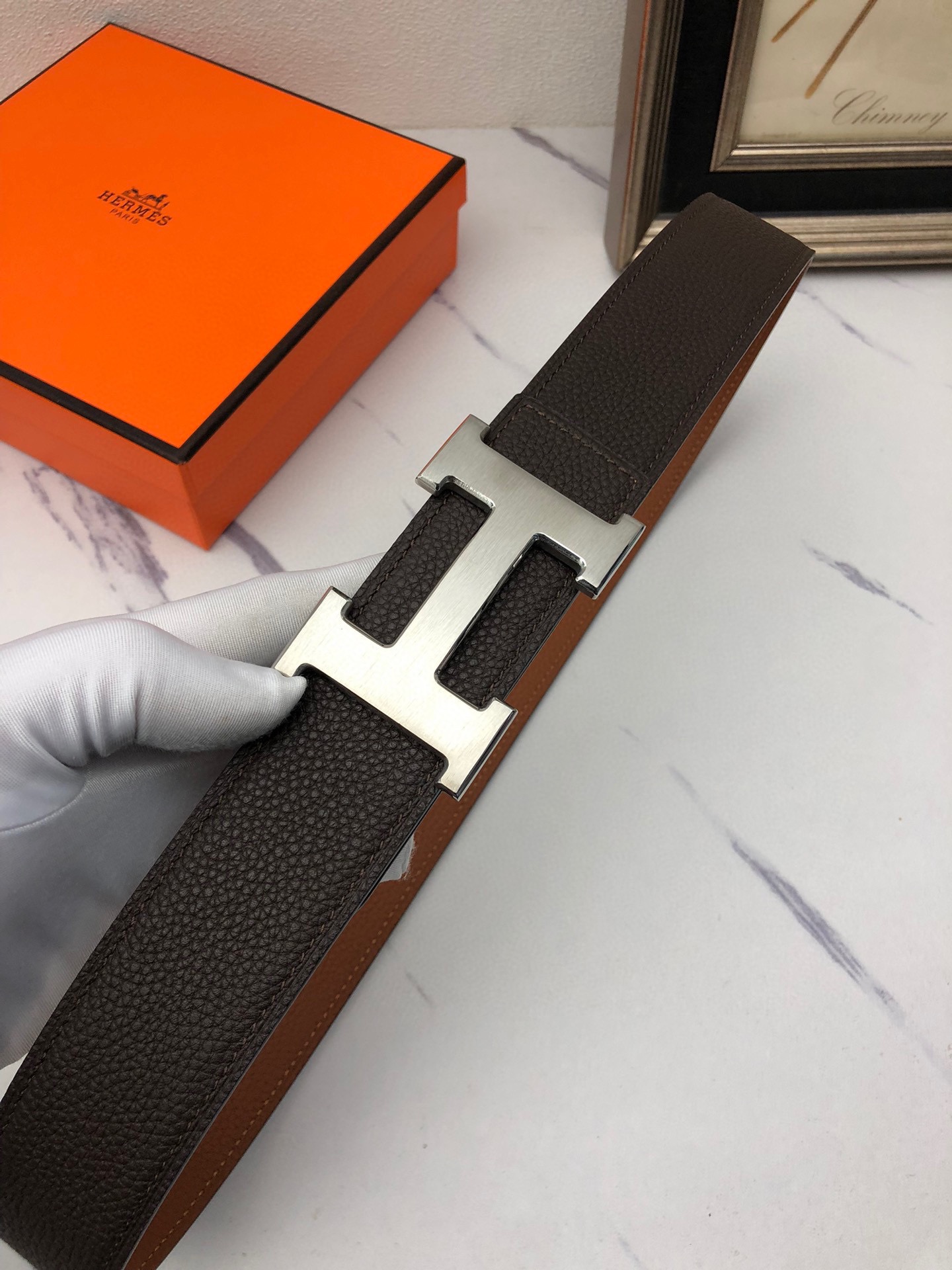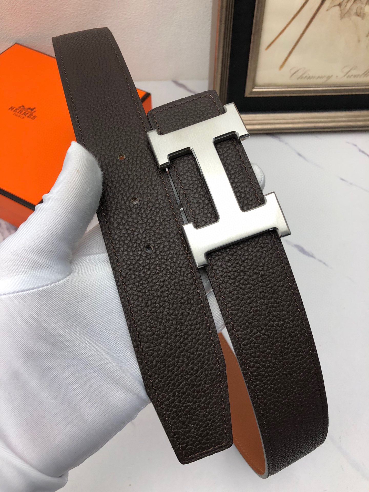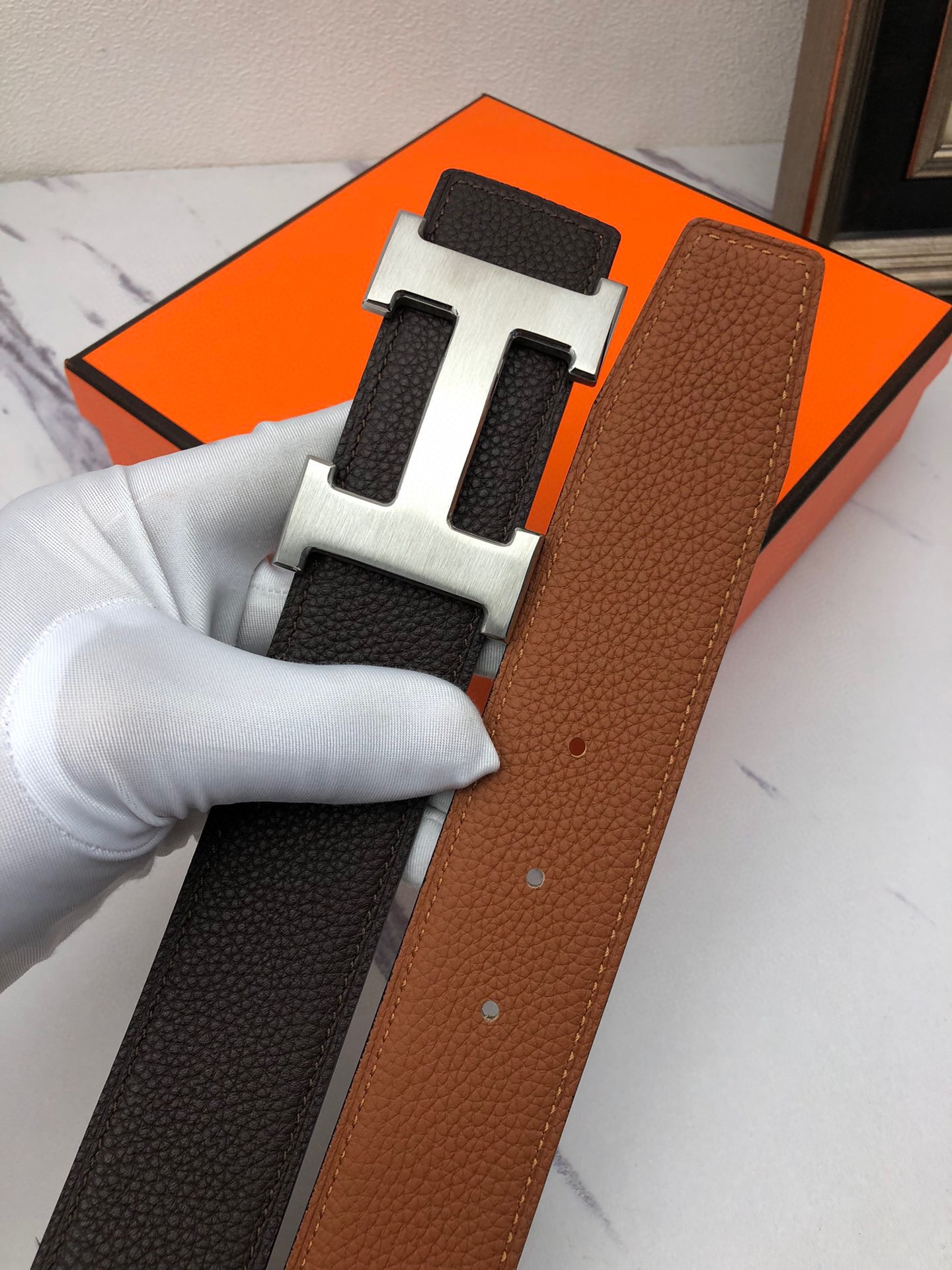 這款皮帶是AAAAA 1:1 質量(非常棒). 使用了和原版一模一樣的材料. 商標部分也保持了和愛馬仕/Hermes一樣. 圖片拍攝是實物皮帶拍攝, 您所收到的實物保證和我們圖片一模一樣.