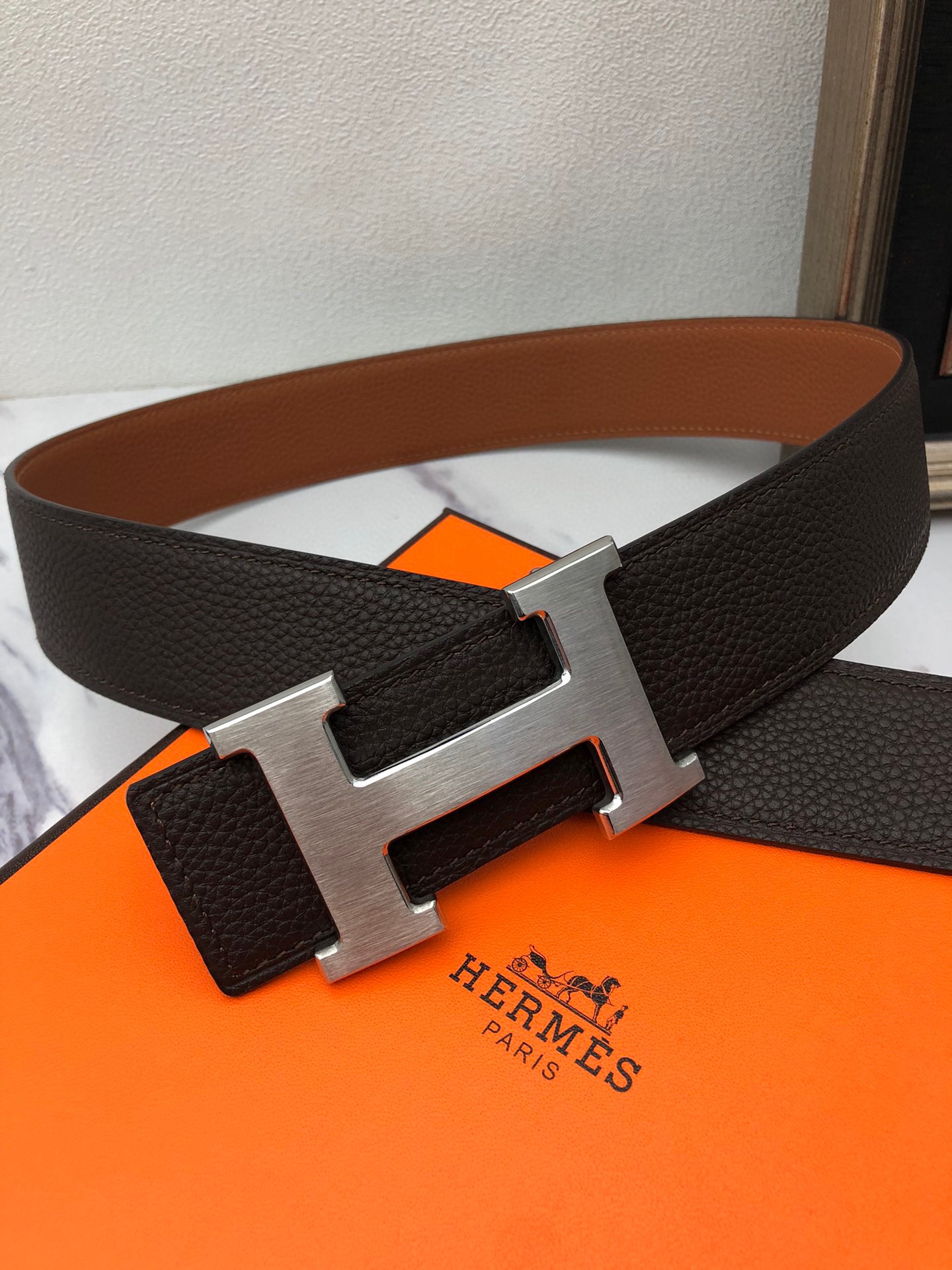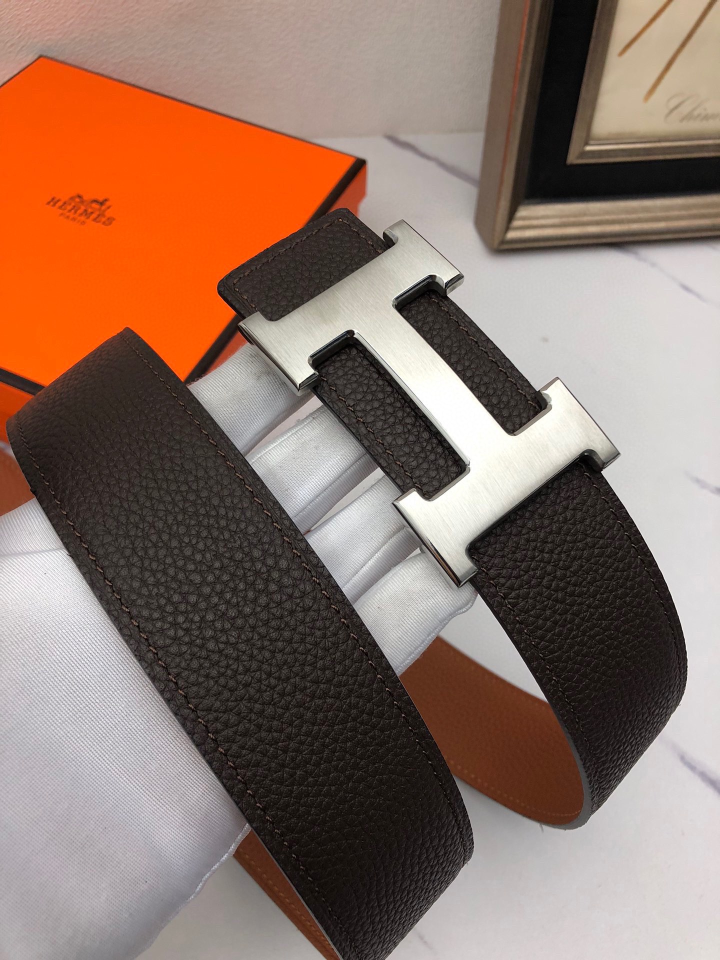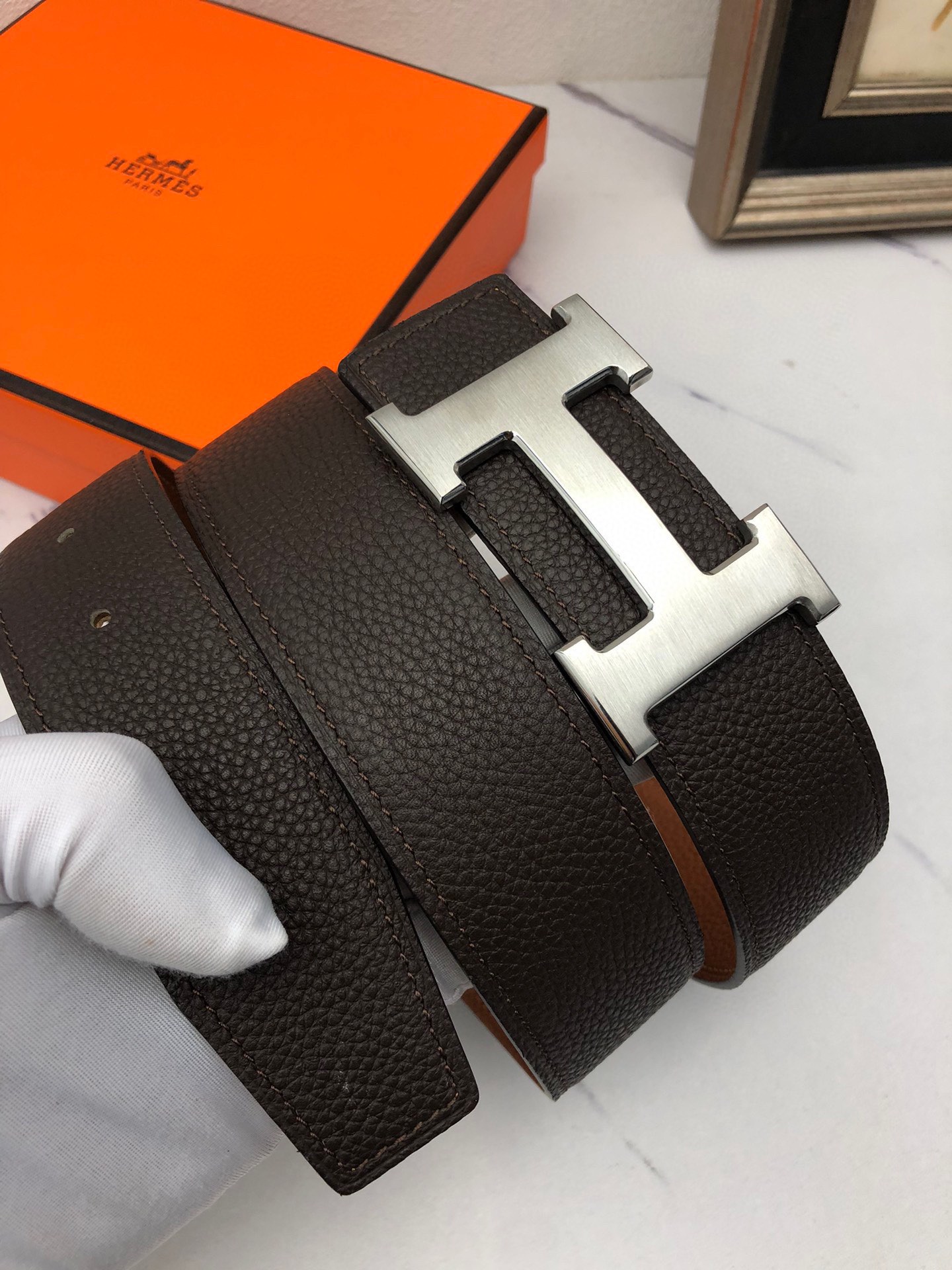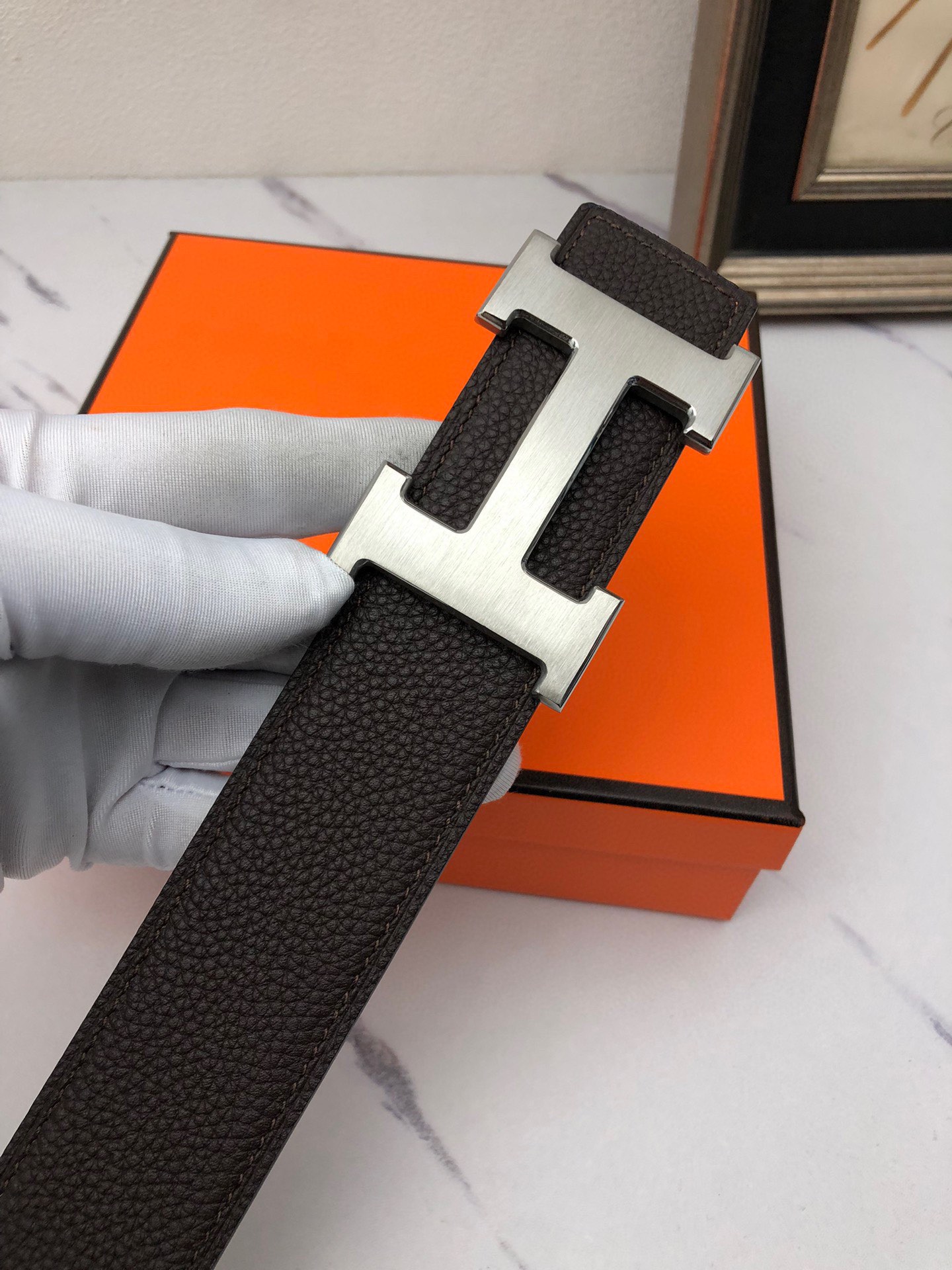 這款皮帶是AAAAA 1:1 質量(非常棒). 使用了和原版一模一樣的材料. 商標部分也保持了和愛馬仕/Hermes一樣. 圖片拍攝是實物皮帶拍攝, 您所收到的實物保證和我們圖片一模一樣.