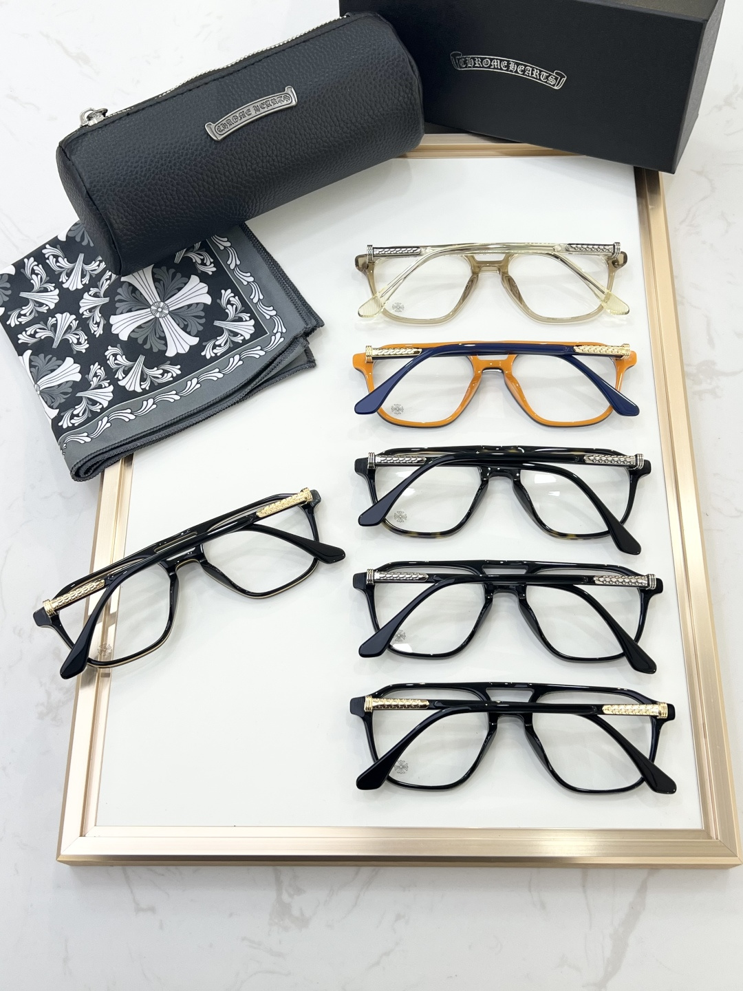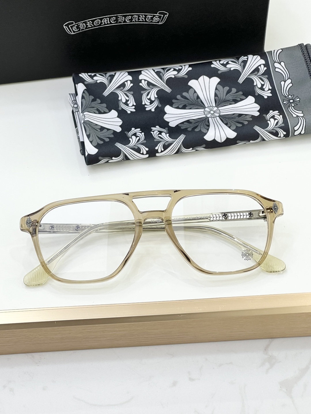 這款太陽眼鏡是AAAAA 1:1 質量(非常棒). 使用了和原版一模一樣的材料. 商標部分也保持了和鉻心/Chrome Hearts一樣. 圖片拍攝是實物太陽眼鏡拍攝, 您所收到的實物保證和我們圖片一模一樣.