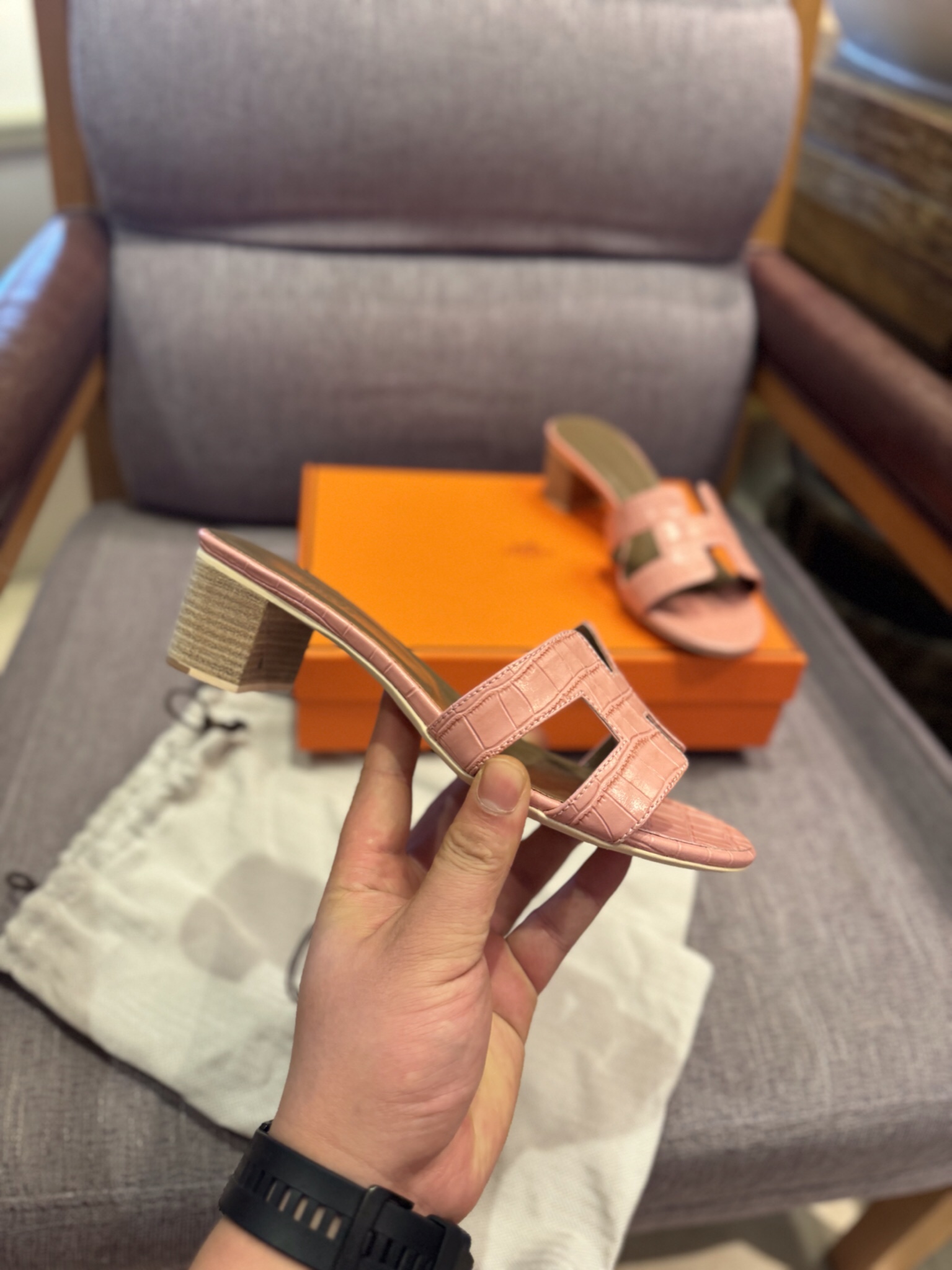 這款鞋子是AAAAA 1:1 質量(非常棒). 使用了和原版一模一樣的材料. 商標部分也保持了和愛馬仕/Hermes一樣. 圖片拍攝是實物鞋子拍攝, 您所收到的實物保證和我們圖片一模一樣.