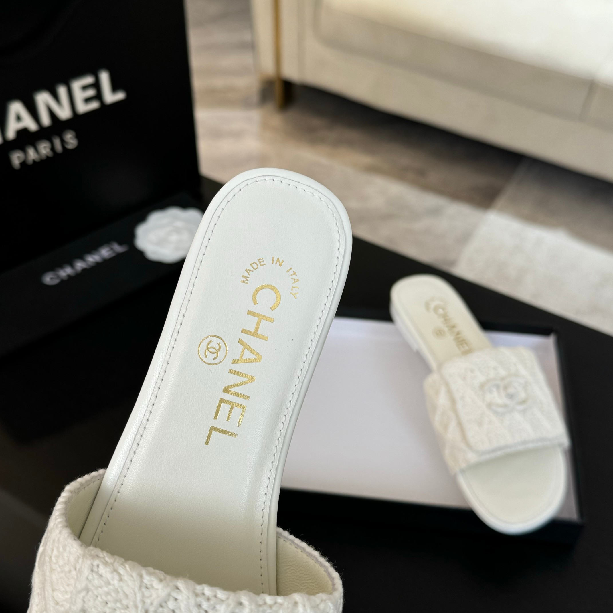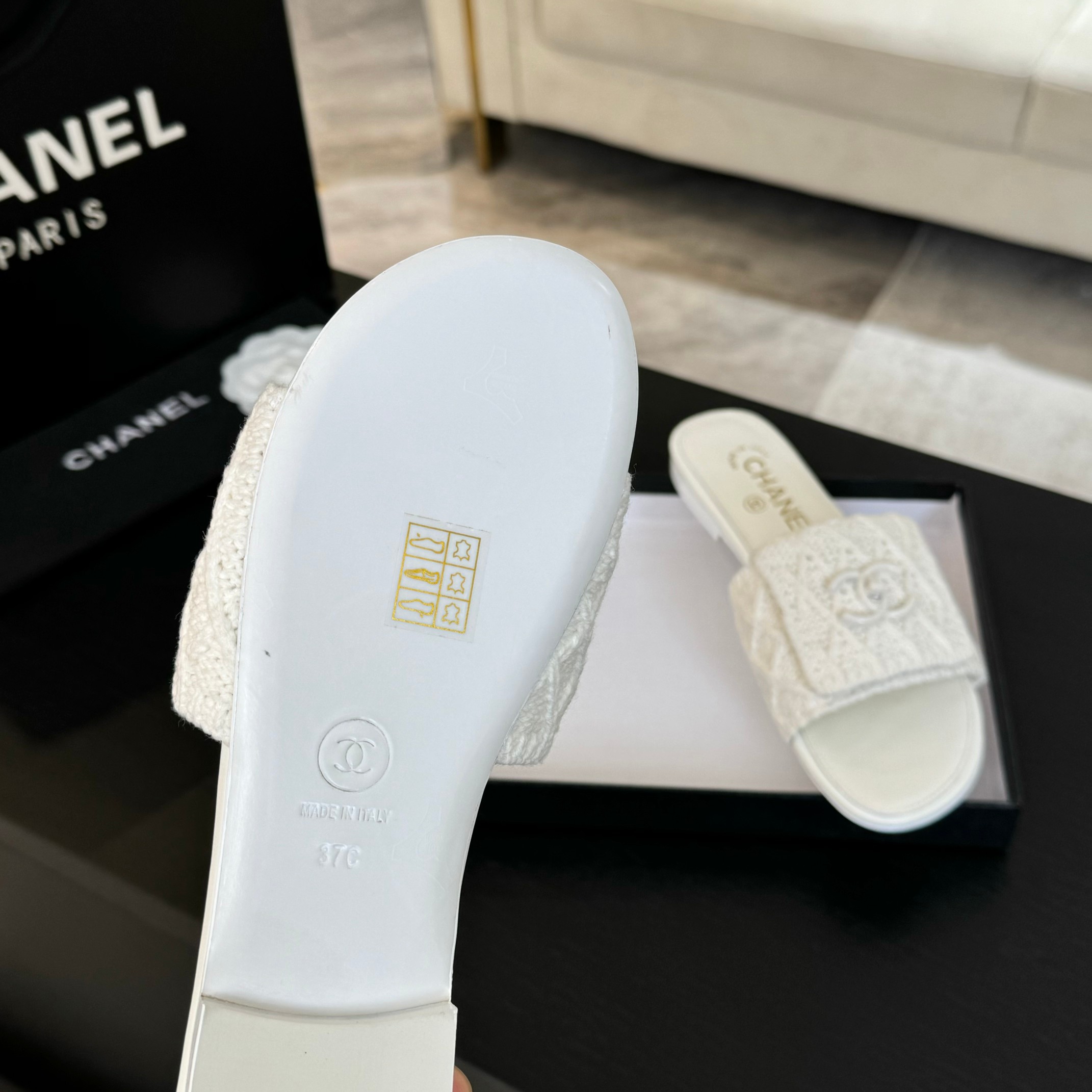 這款鞋子是AAAAA 1:1 質量(非常棒). 使用了和原版一模一樣的材料. 商標部分也保持了和香奈兒/Chanel一樣. 圖片拍攝是實物鞋子拍攝, 您所收到的實物保證和我們圖片一模一樣.