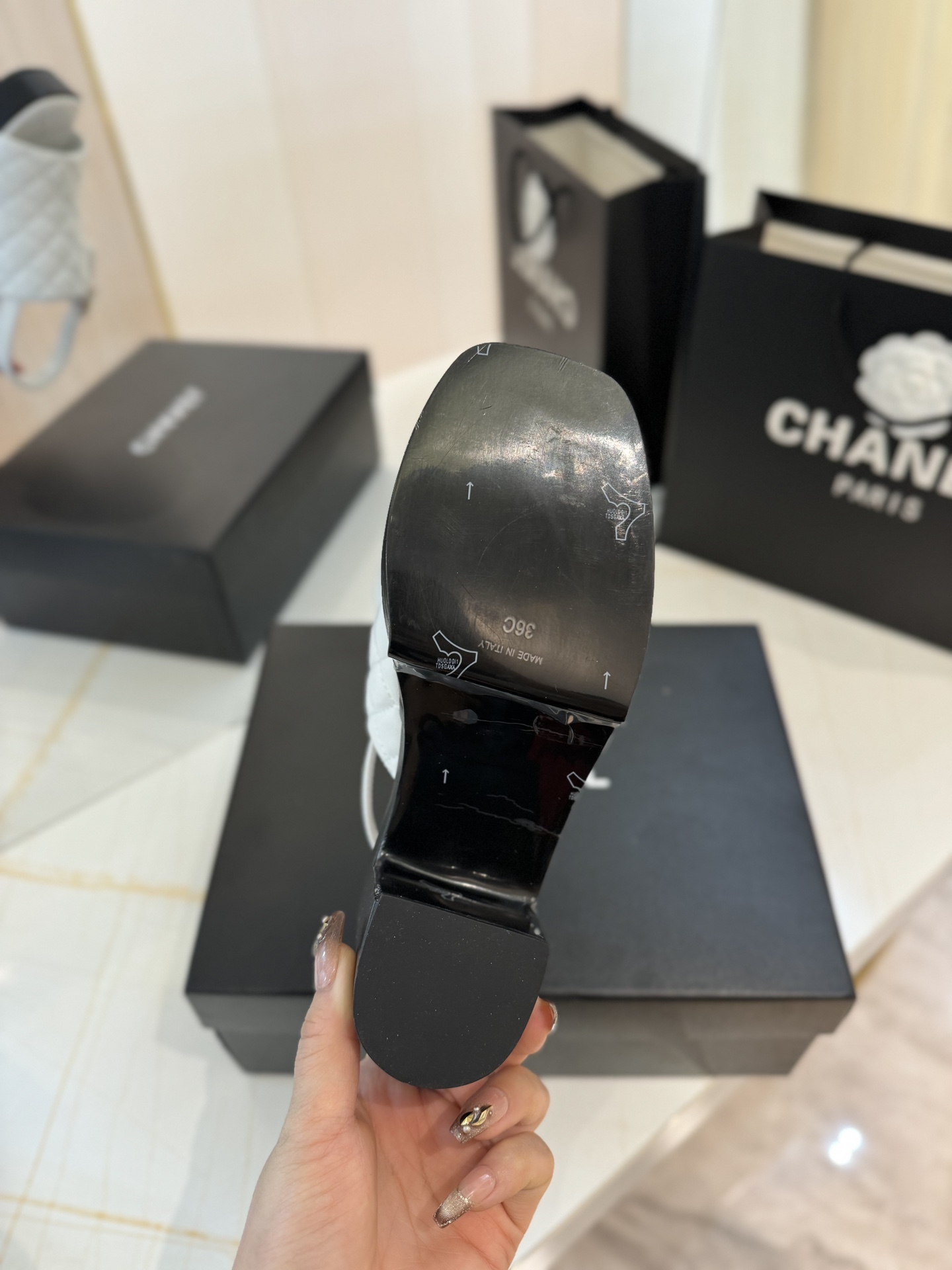 這款鞋子是AAAAA 1:1 質量(非常棒). 使用了和原版一模一樣的材料. 商標部分也保持了和香奈兒/Chanel一樣. 圖片拍攝是實物鞋子拍攝, 您所收到的實物保證和我們圖片一模一樣.
