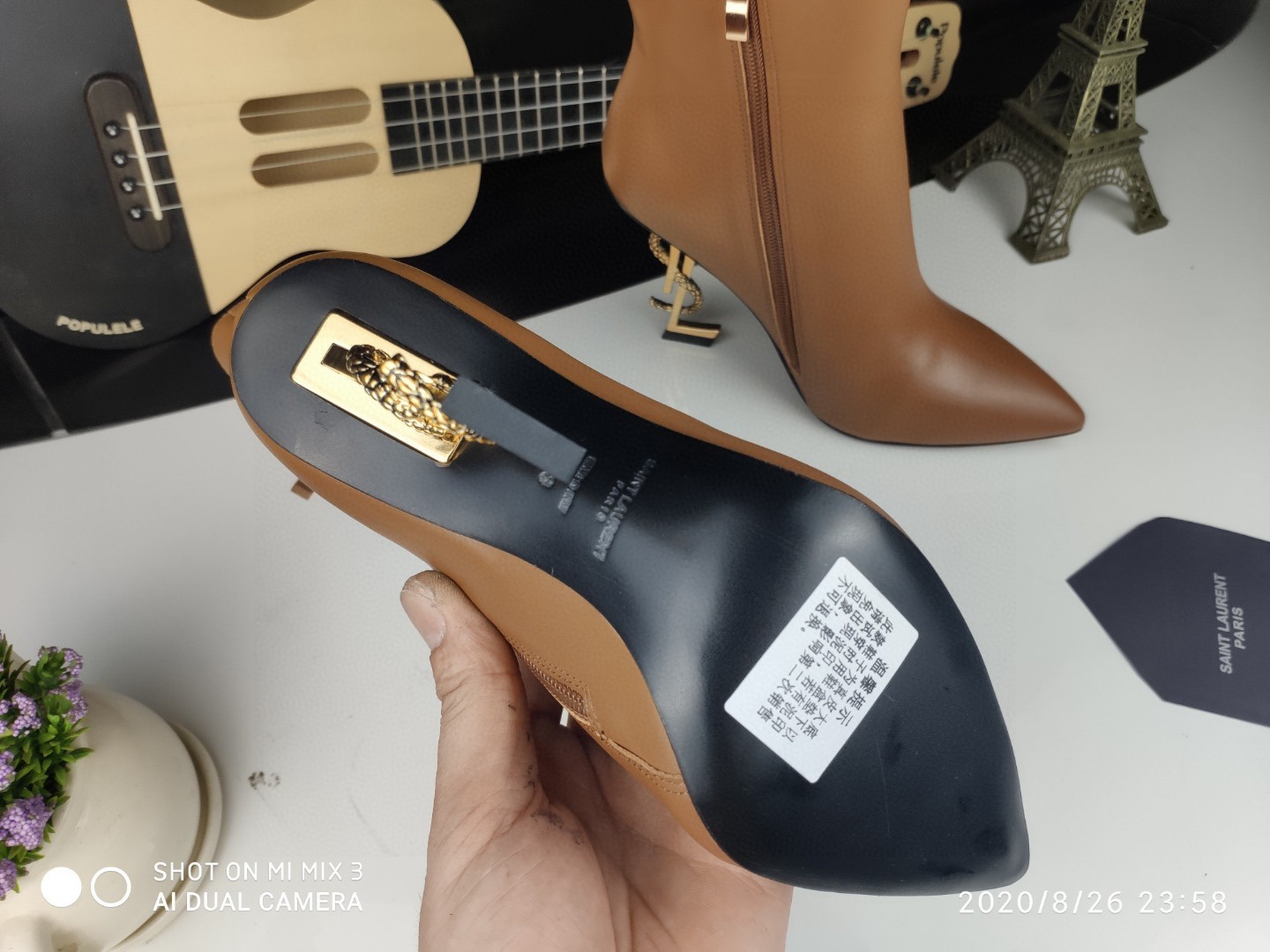 這款鞋子是AAAAA 1:1 質量(非常棒). 使用了和原版一模一樣的材料. 商標部分也保持了和聖羅蘭/Saint Laurent一樣. 圖片拍攝是實物鞋子拍攝, 您所收到的實物保證和我們圖片一模一樣.