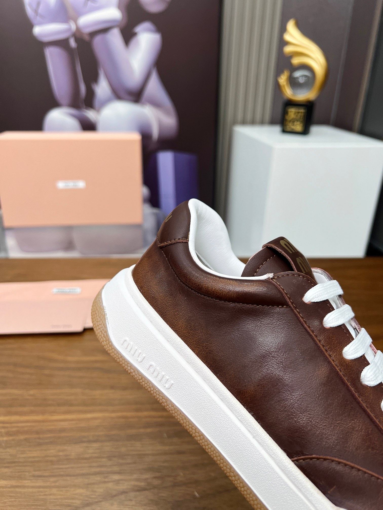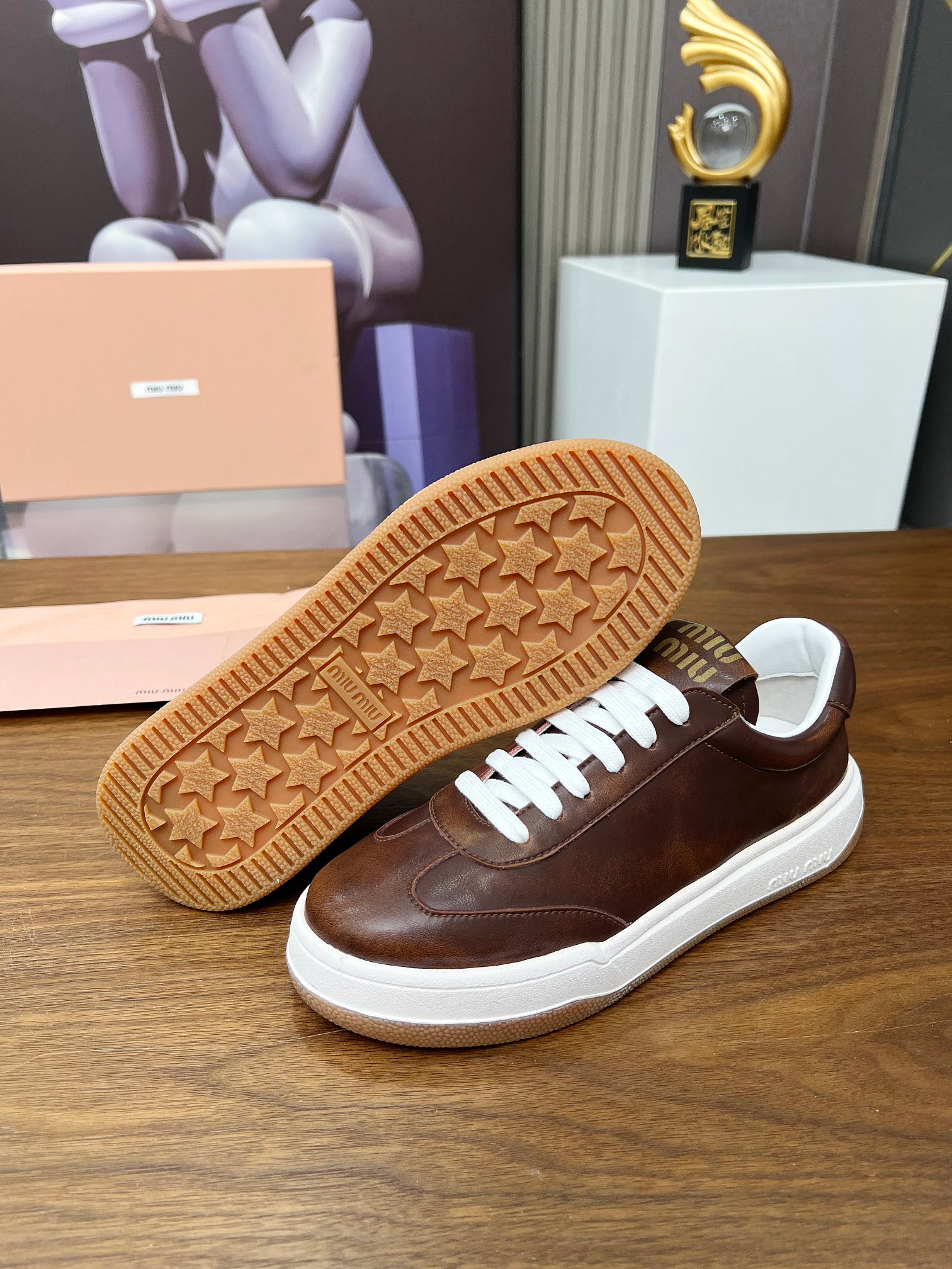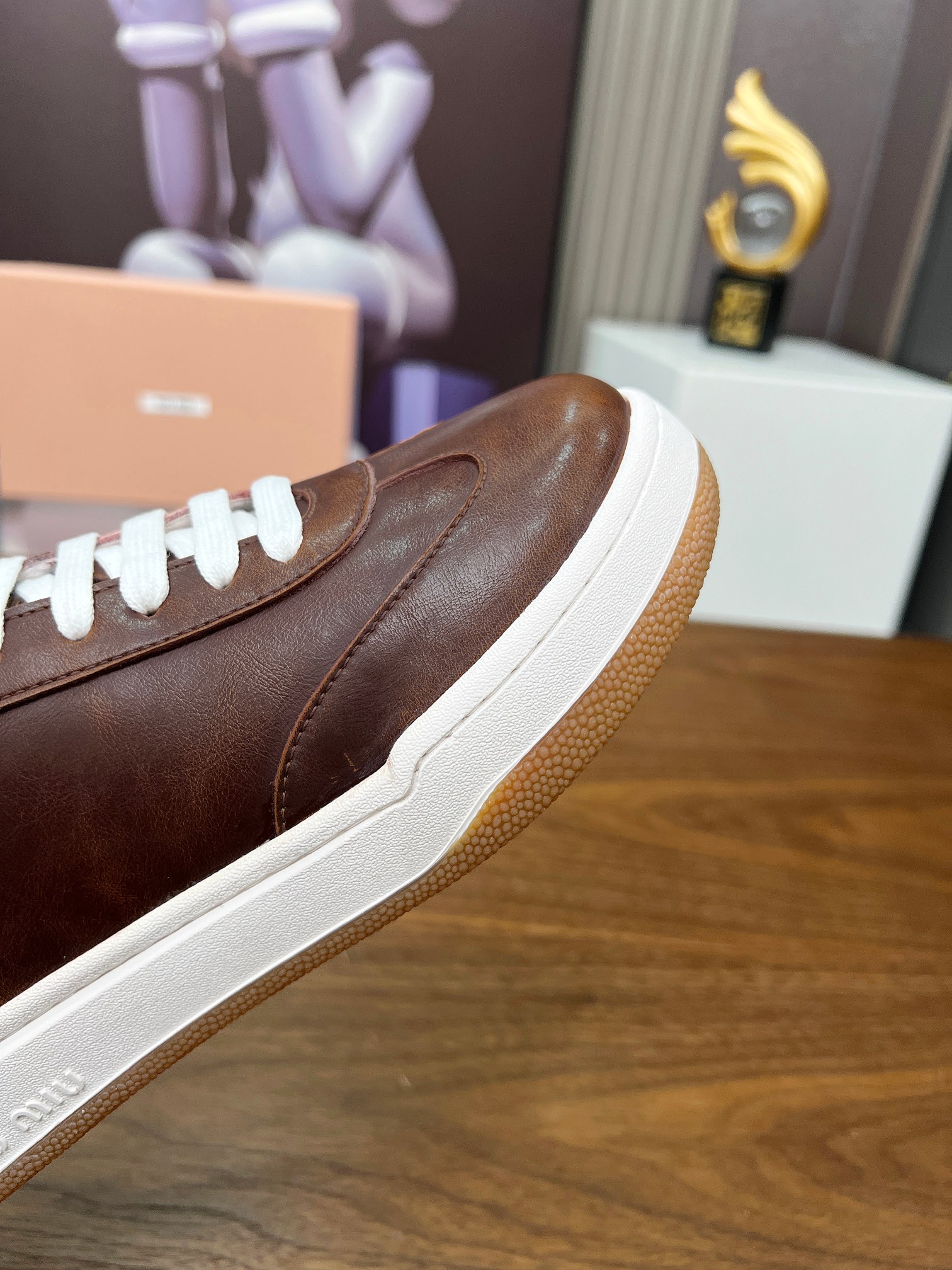 這款鞋子是AAAAA 1:1 質量(非常棒). 使用了和原版一模一樣的材料. 商標部分也保持了和繆繆/Miu Miu一樣. 圖片拍攝是實物鞋子拍攝, 您所收到的實物保證和我們圖片一模一樣.