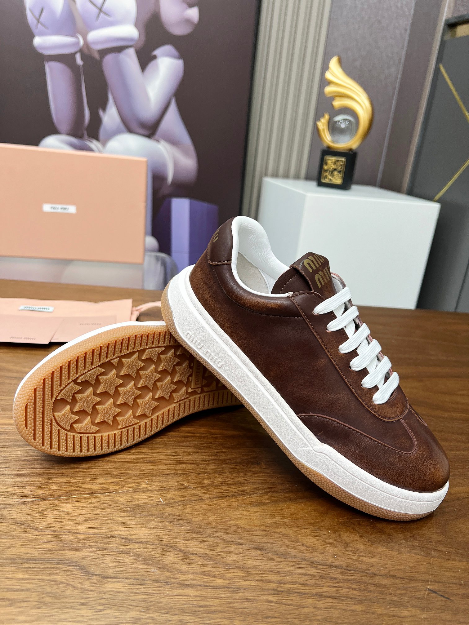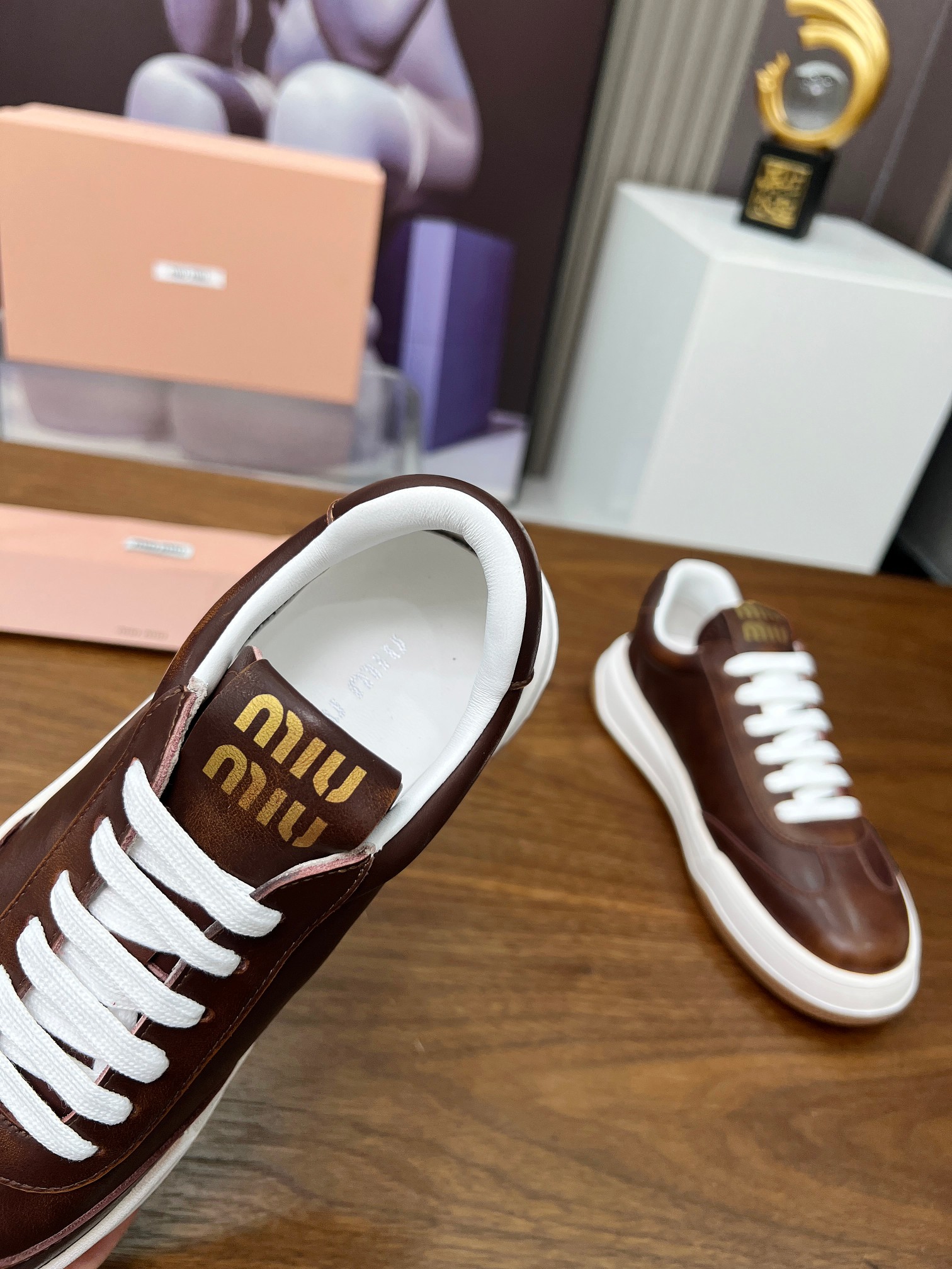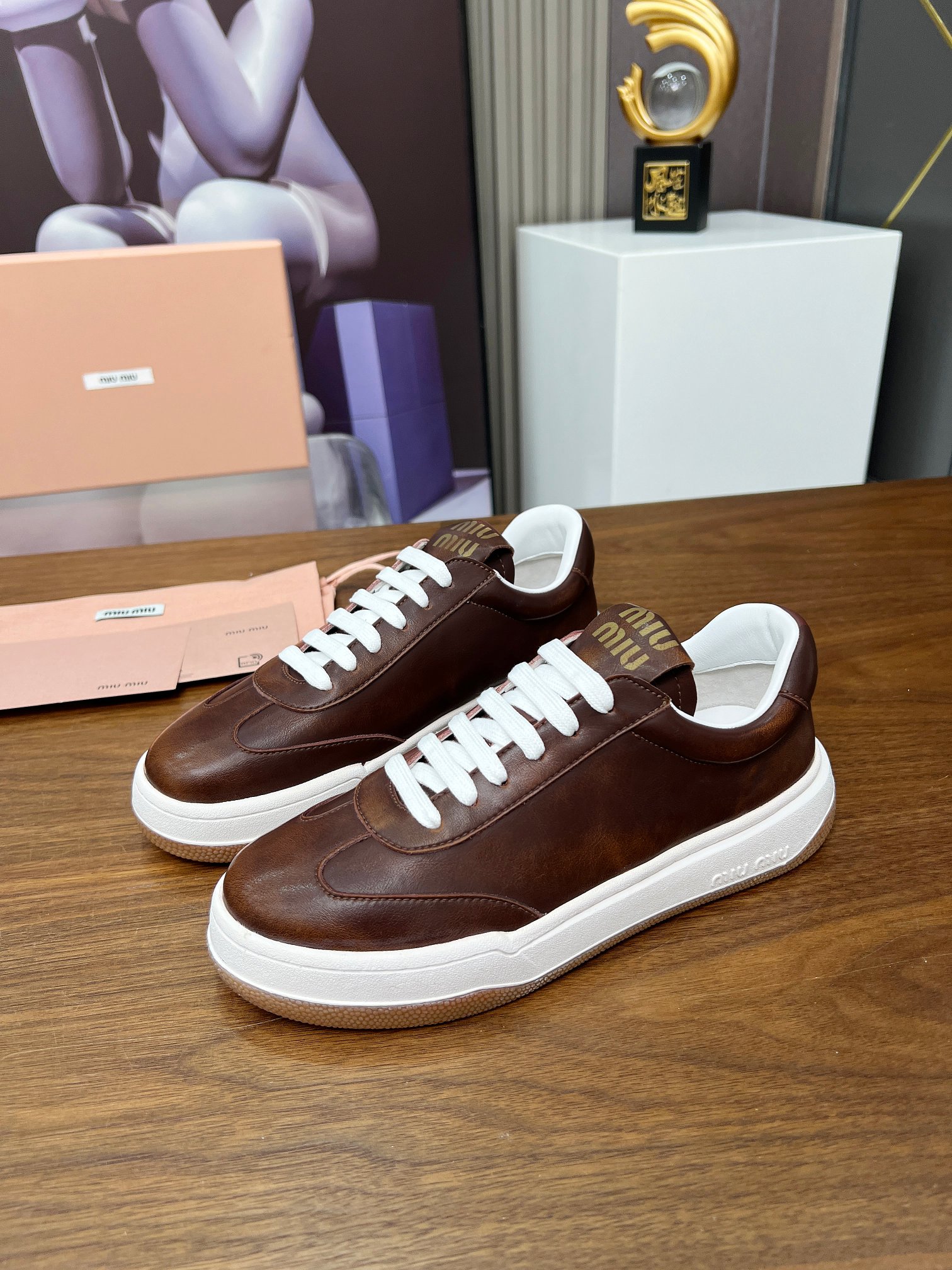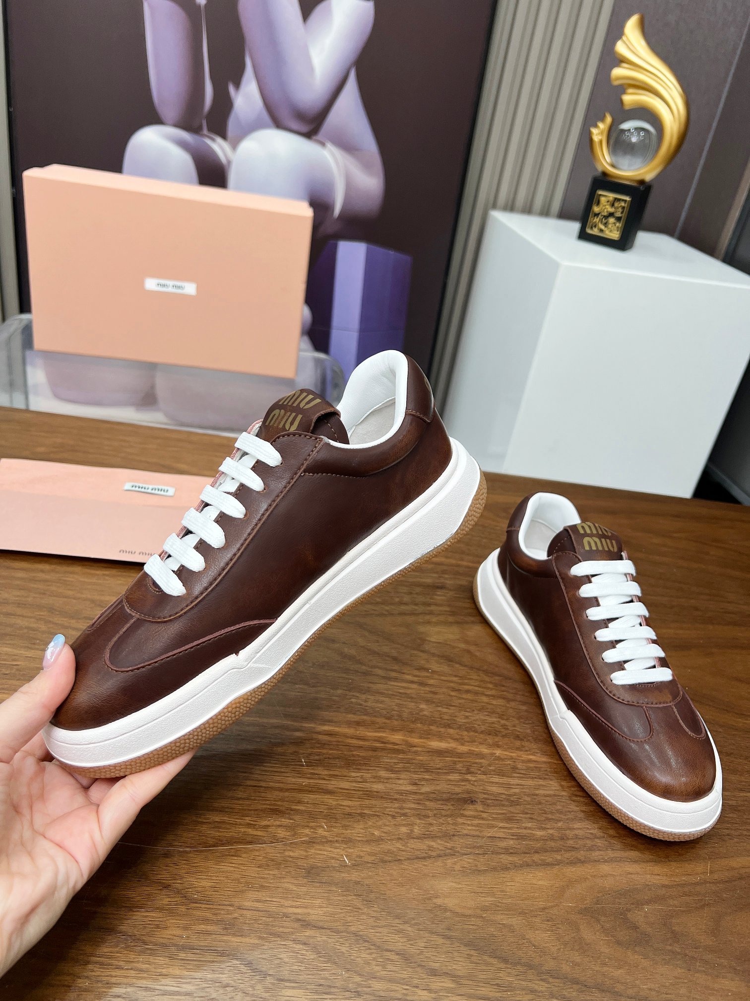 這款鞋子是AAAAA 1:1 質量(非常棒). 使用了和原版一模一樣的材料. 商標部分也保持了和繆繆/Miu Miu一樣. 圖片拍攝是實物鞋子拍攝, 您所收到的實物保證和我們圖片一模一樣.