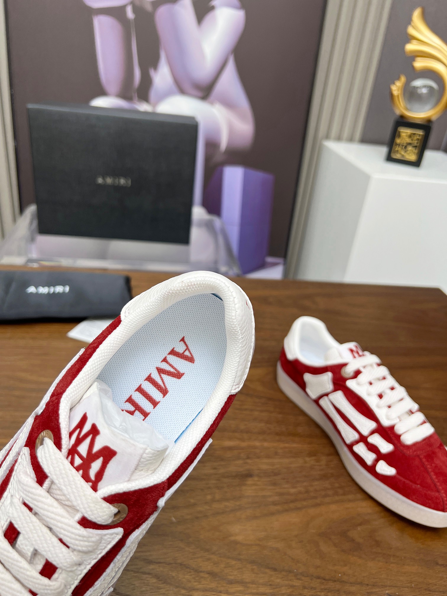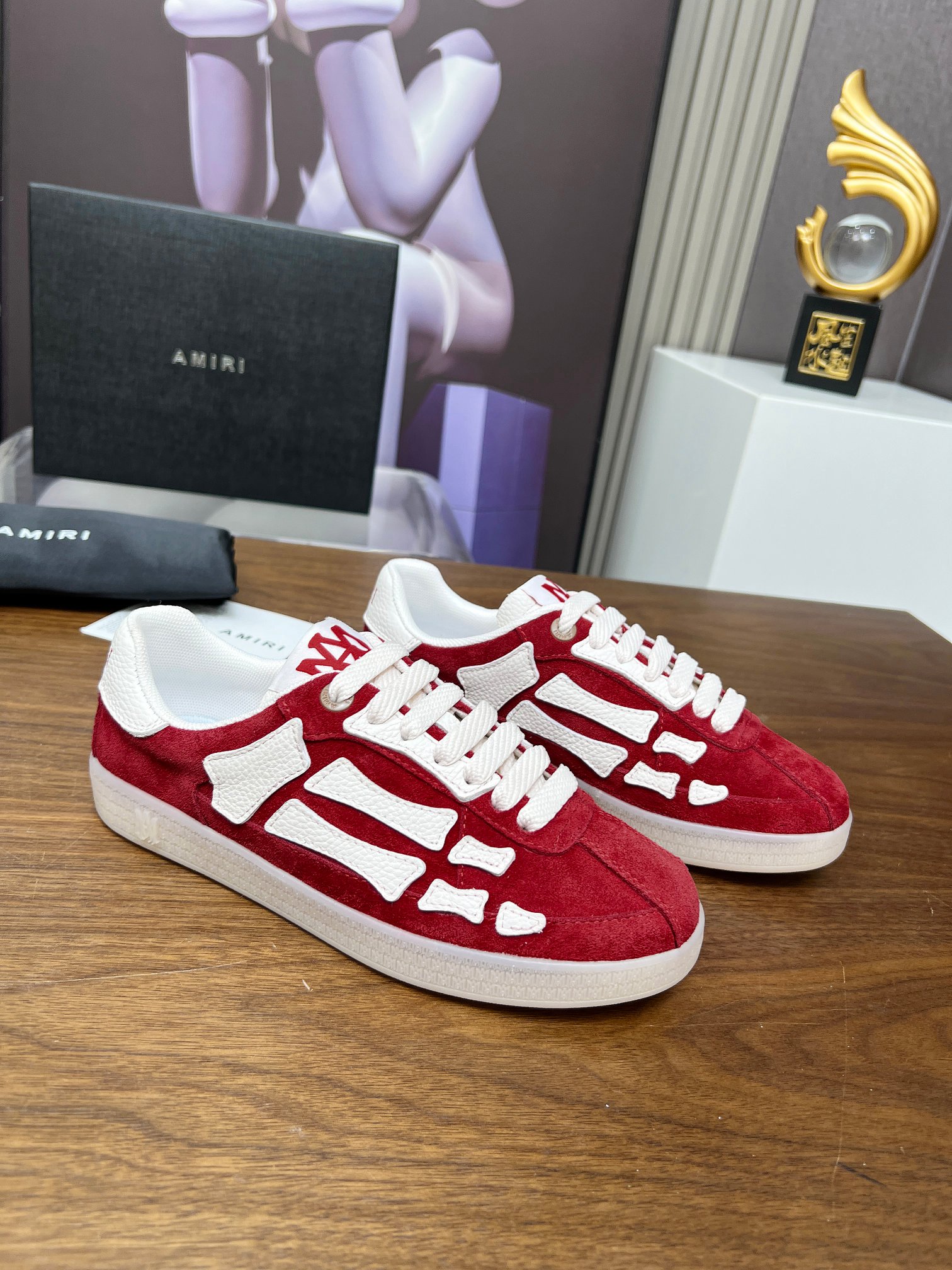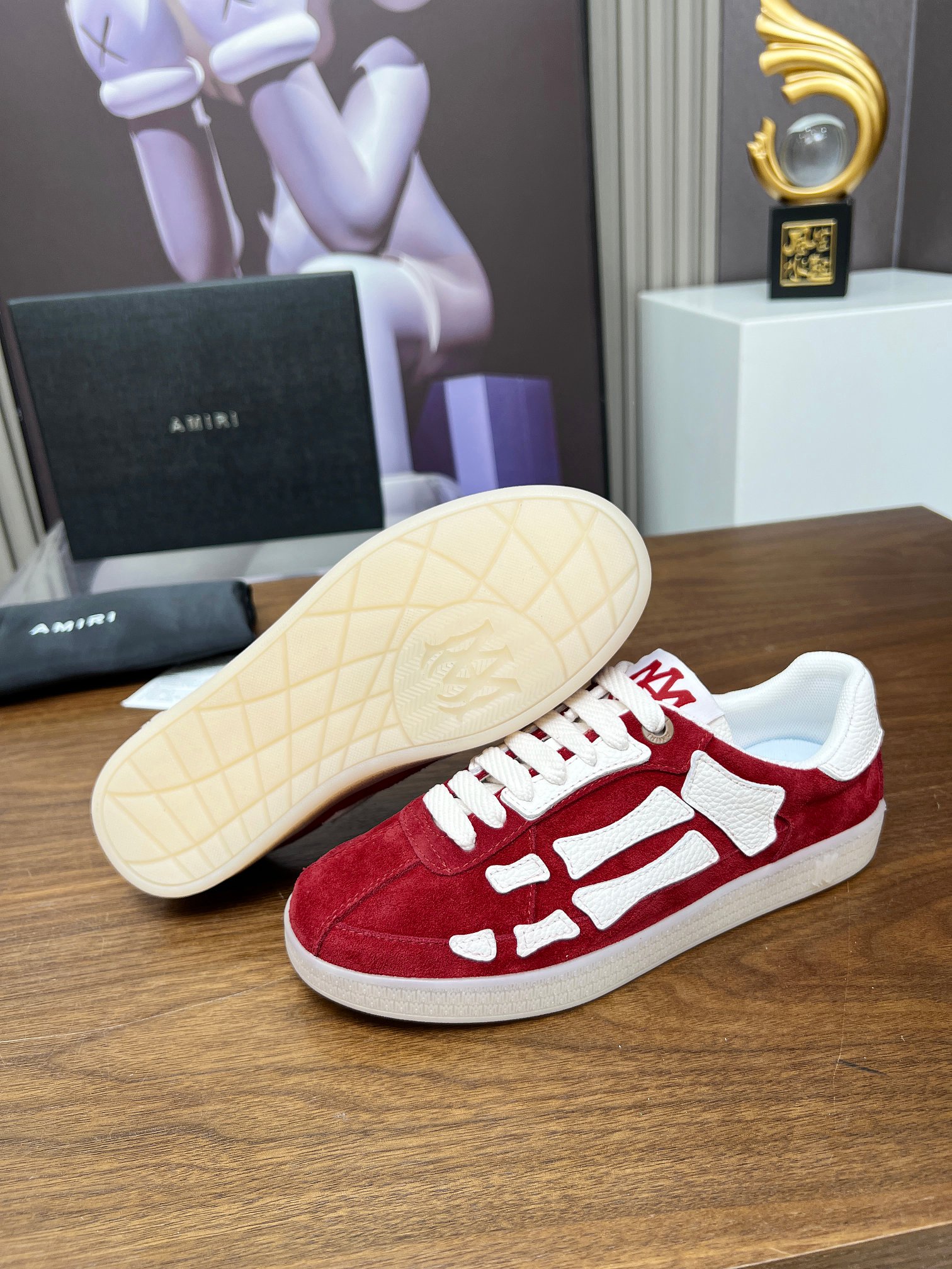 這款鞋子是AAAAA 1:1 質量(非常棒). 使用了和原版一模一樣的材料. 商標部分也保持了和AMIRI一樣. 圖片拍攝是實物鞋子拍攝, 您所收到的實物保證和我們圖片一模一樣.