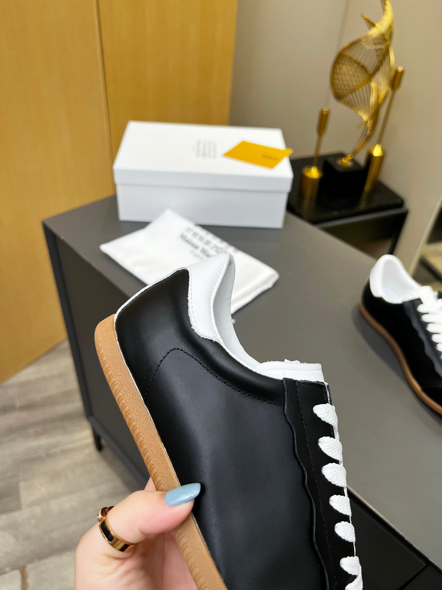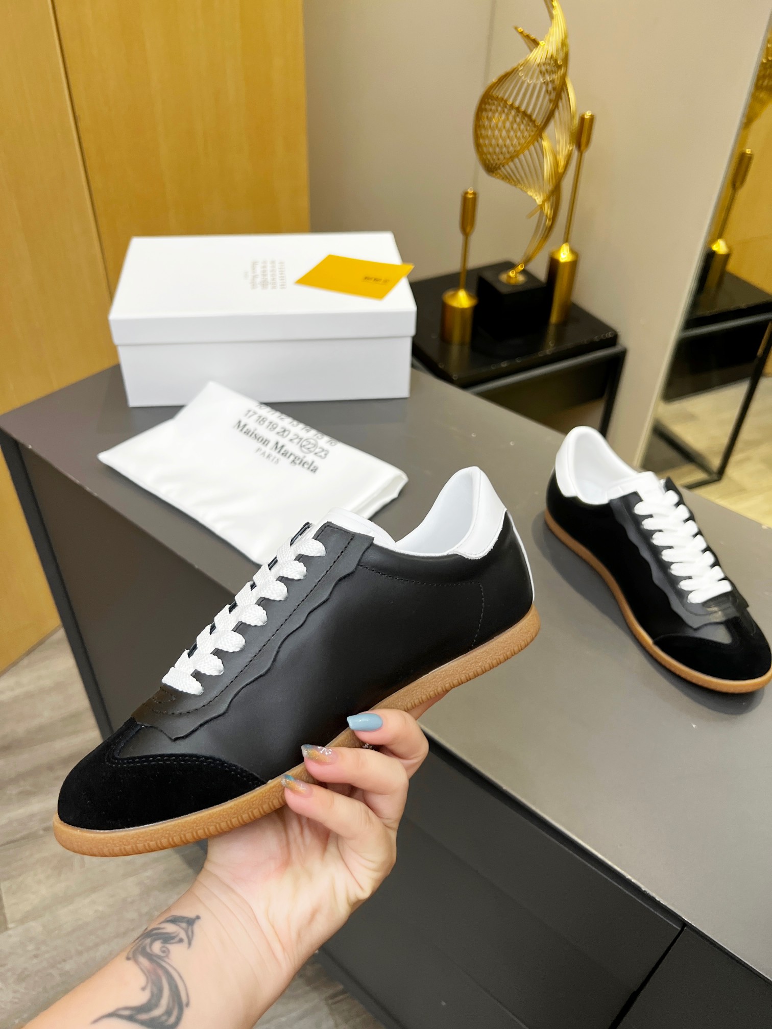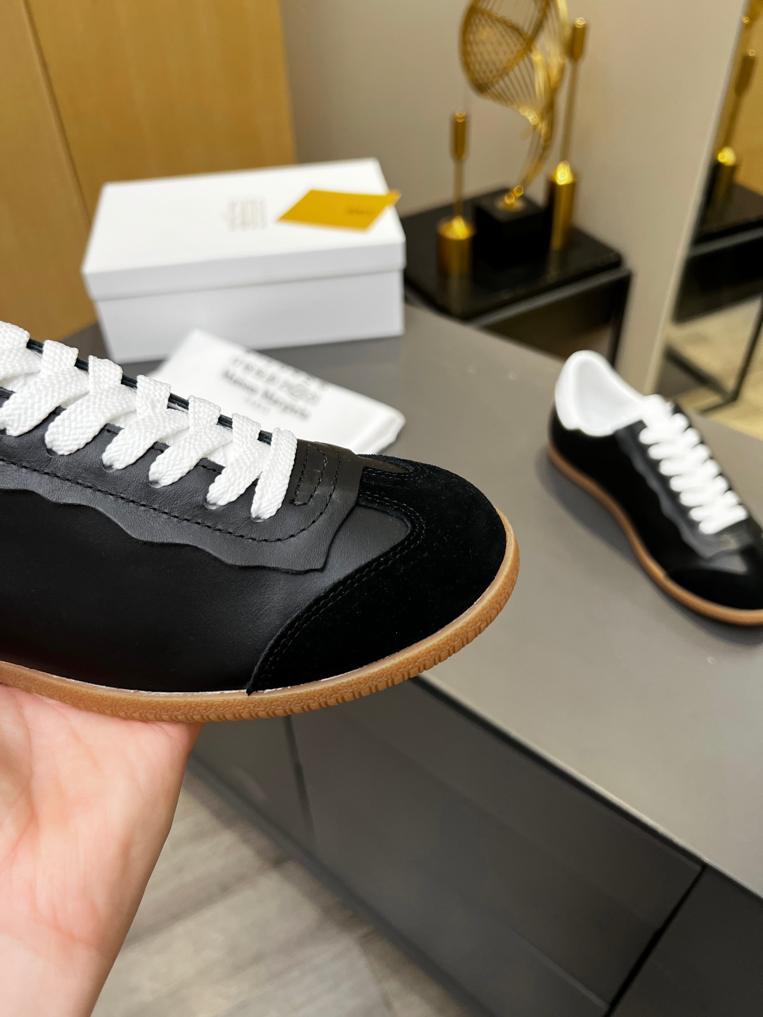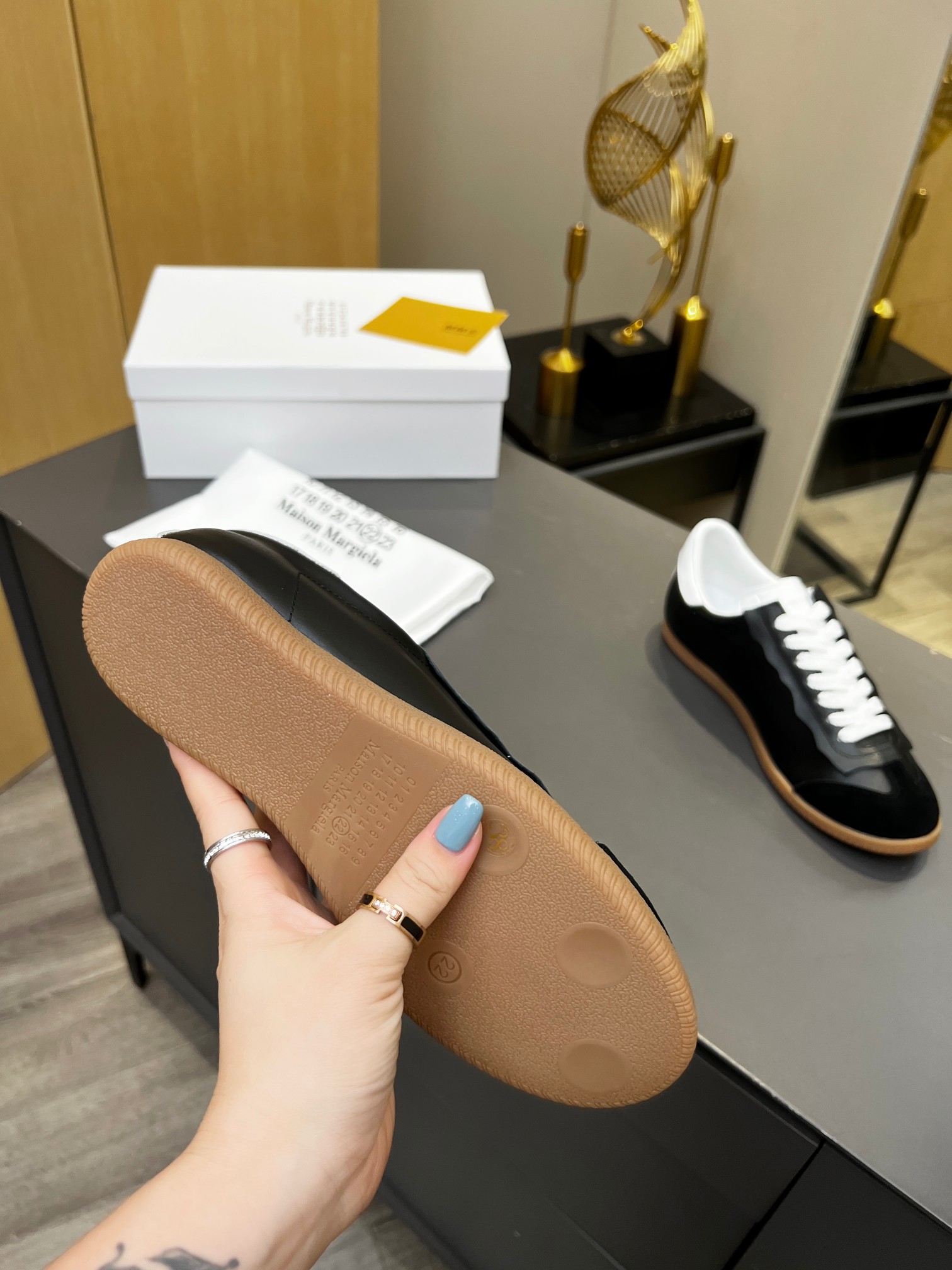 這款鞋子是AAAAA 1:1 質量(非常棒). 使用了和原版一模一樣的材料. 商標部分也保持了和Maison Margiela一樣. 圖片拍攝是實物鞋子拍攝, 您所收到的實物保證和我們圖片一模一樣.