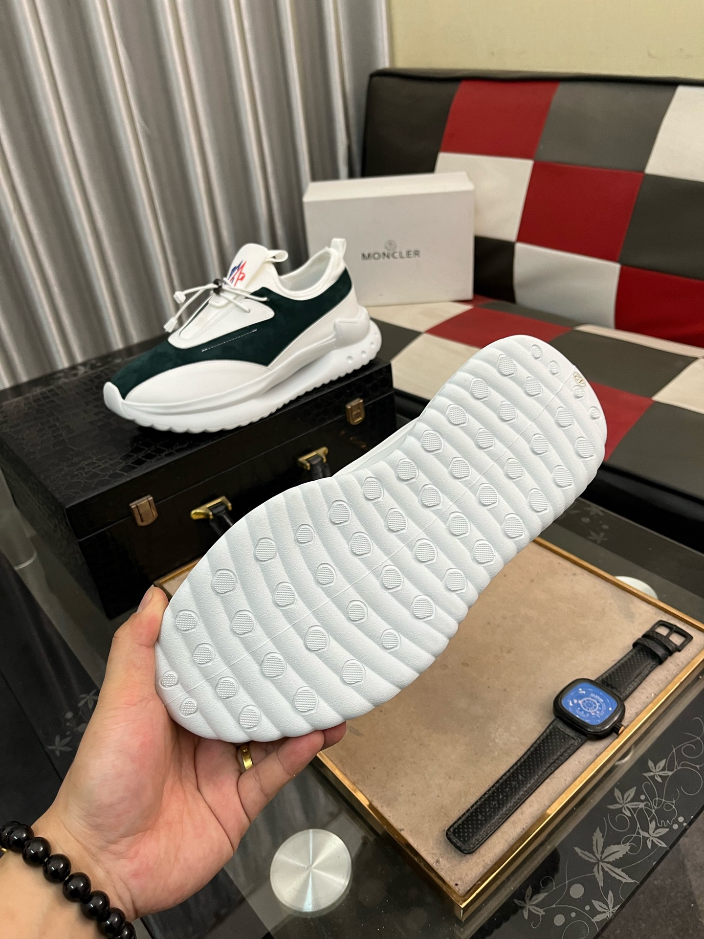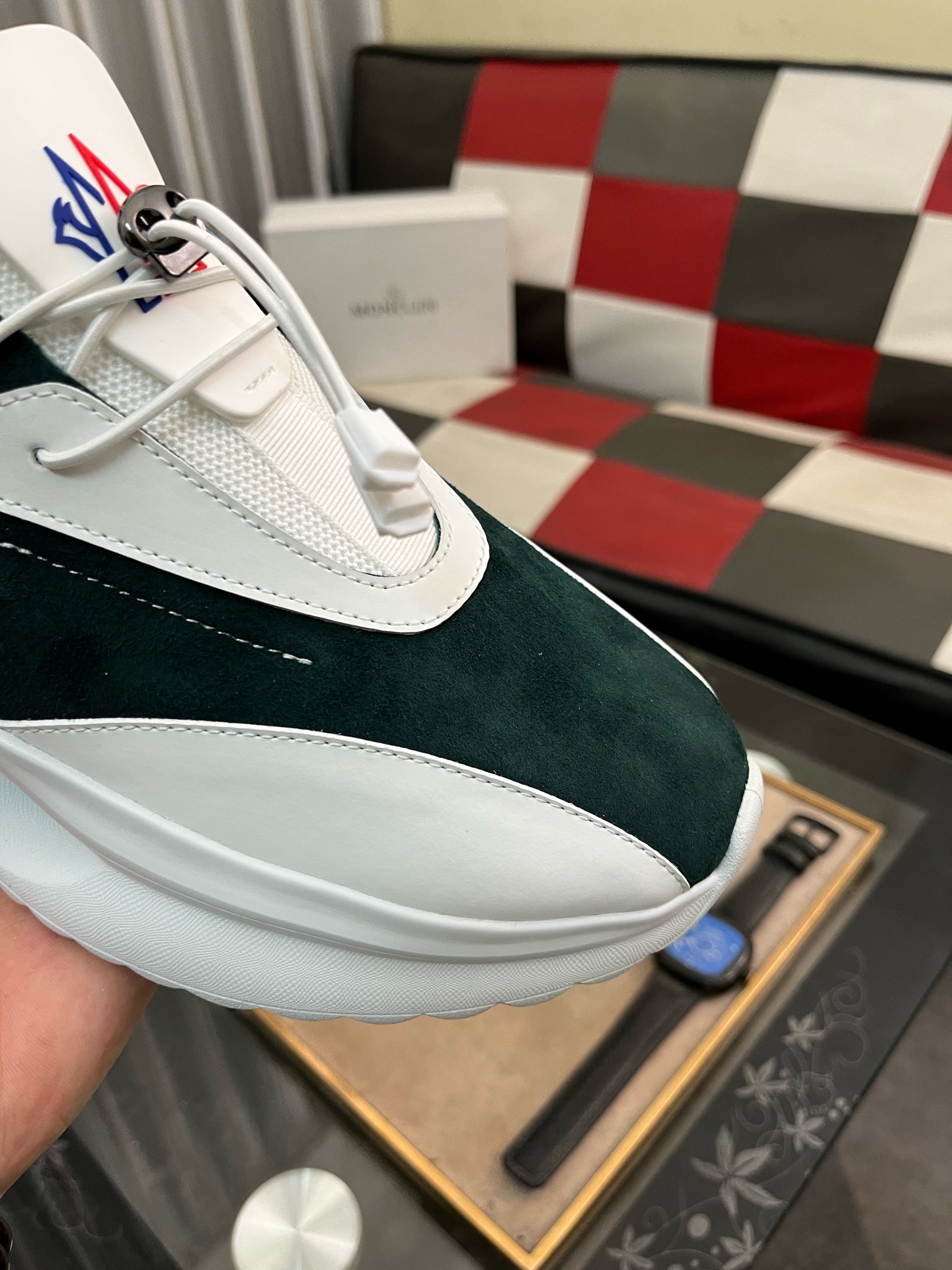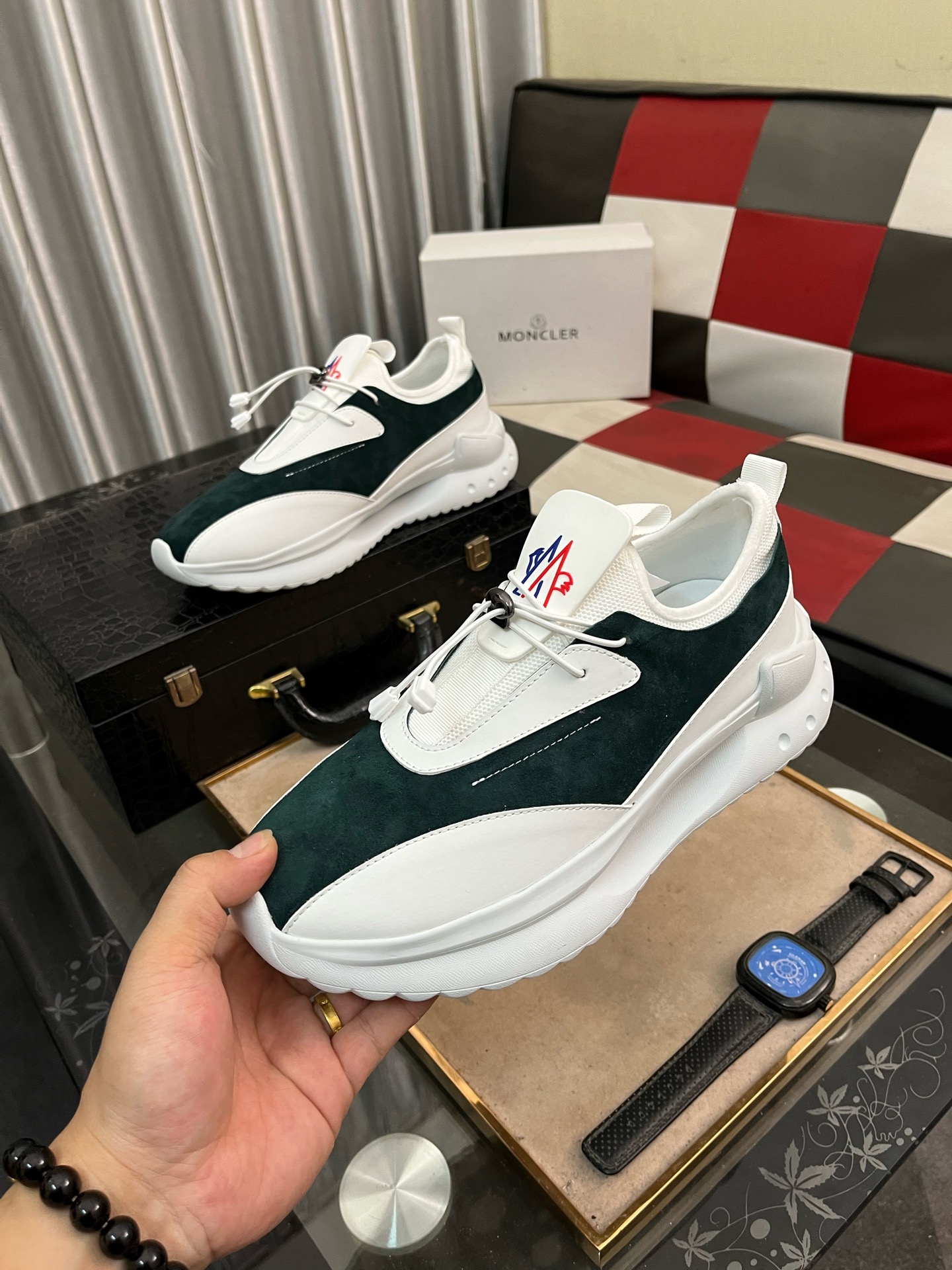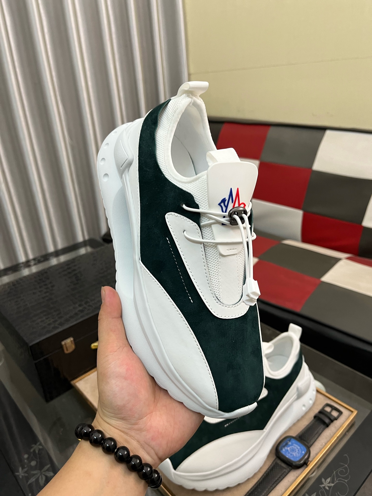 這款鞋子是AAAAA 1:1 質量(非常棒). 使用了和原版一模一樣的材料. 商標部分也保持了和moncler一樣. 圖片拍攝是實物鞋子拍攝, 您所收到的實物保證和我們圖片一模一樣.