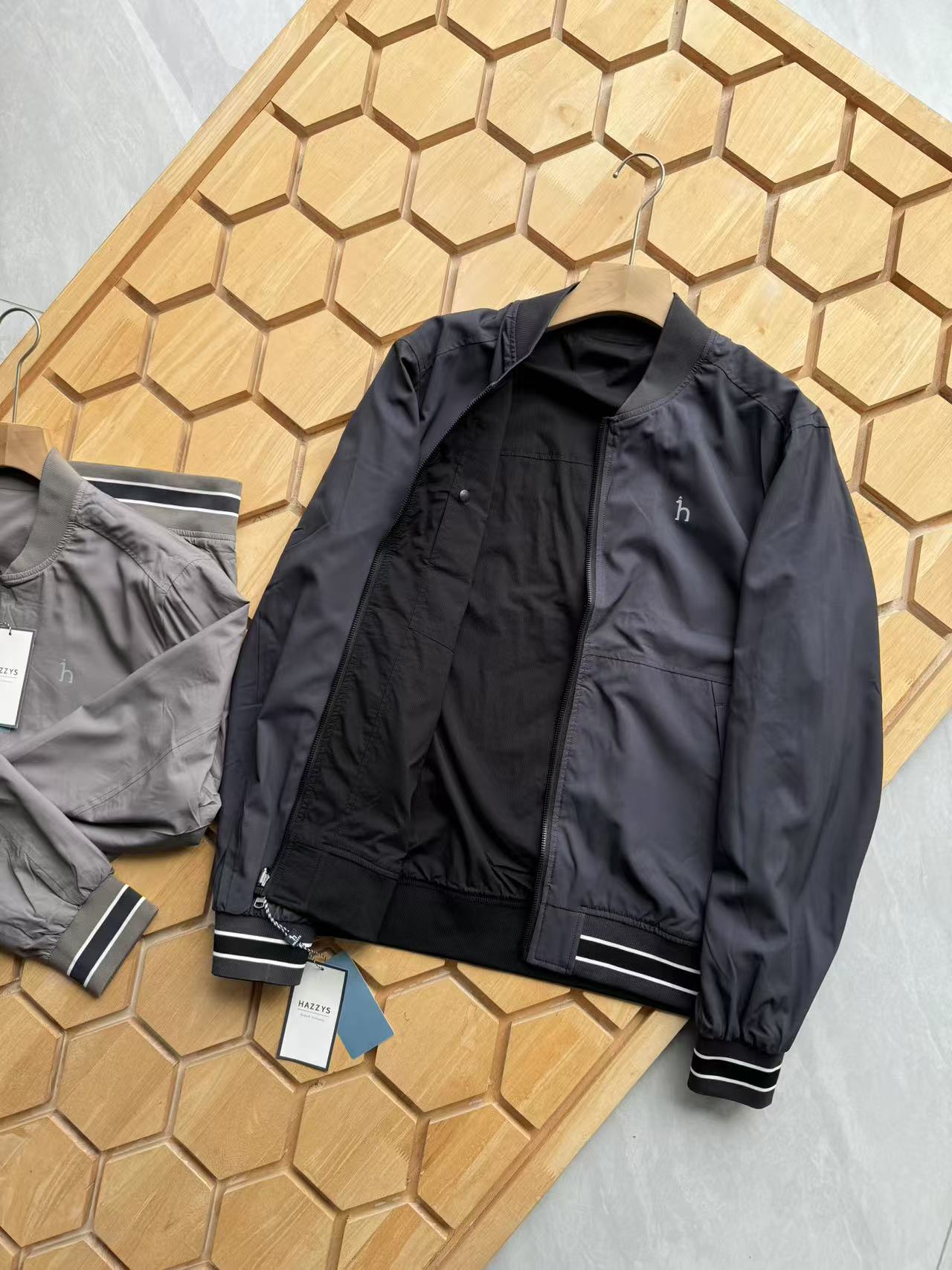 這款衣服是AAAAA 1:1 質量(非常棒). 使用了和原版一模一樣的材料. 商標部分也保持了和Hazzys一樣. 圖片拍攝是實物衣服拍攝, 您所收到的實物保證和我們圖片一模一樣.