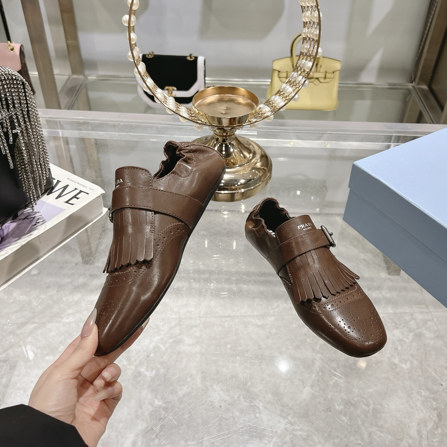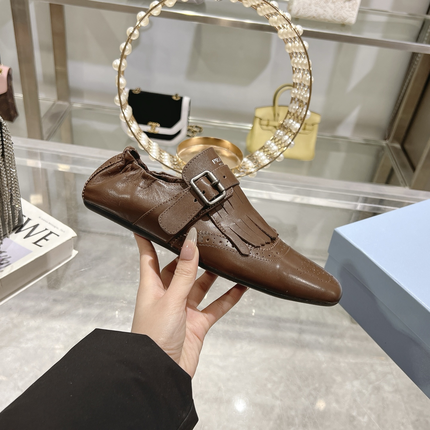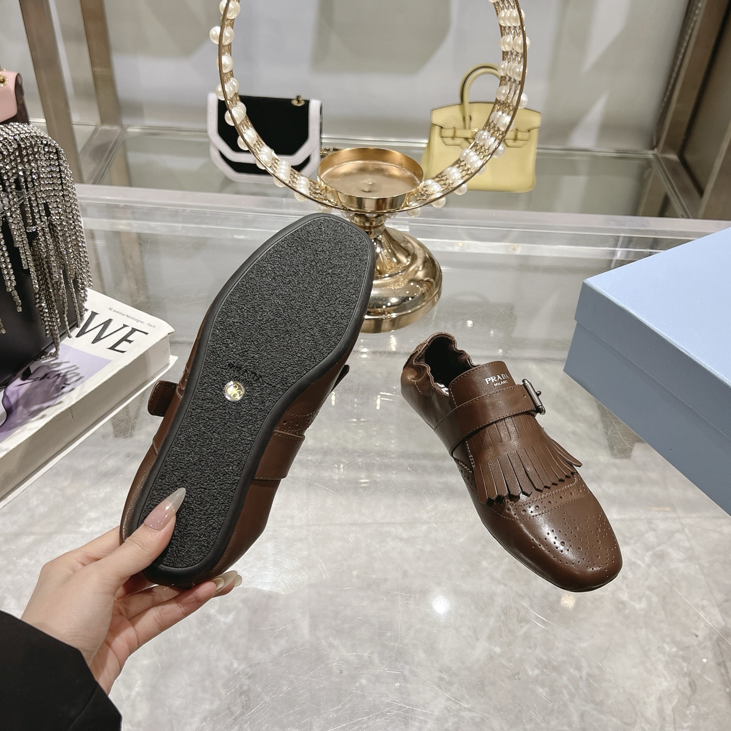 這款鞋子是AAAAA 1:1 質量(非常棒). 使用了和原版一模一樣的材料. 商標部分也保持了和普拉達/Prada一樣. 圖片拍攝是實物鞋子拍攝, 您所收到的實物保證和我們圖片一模一樣.
