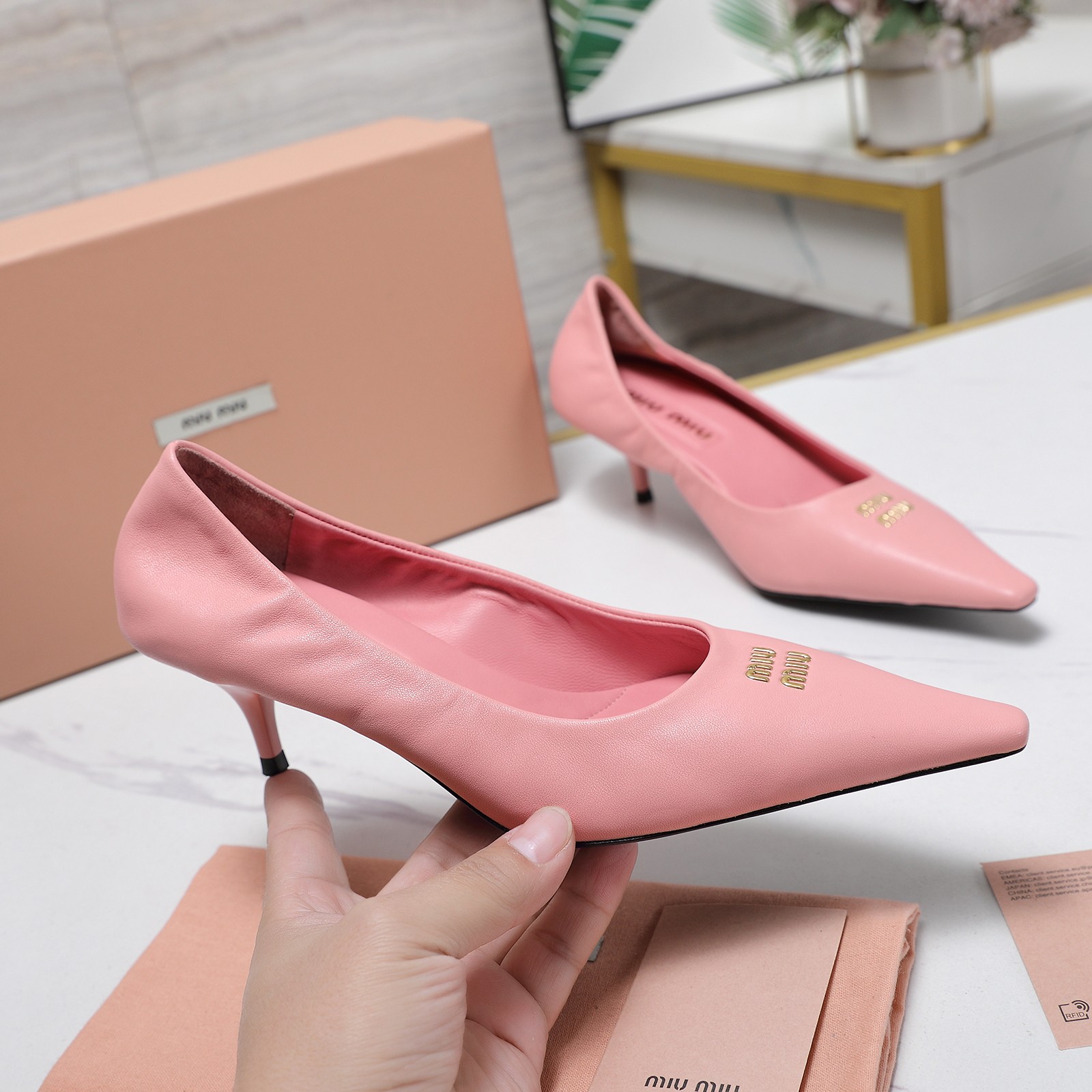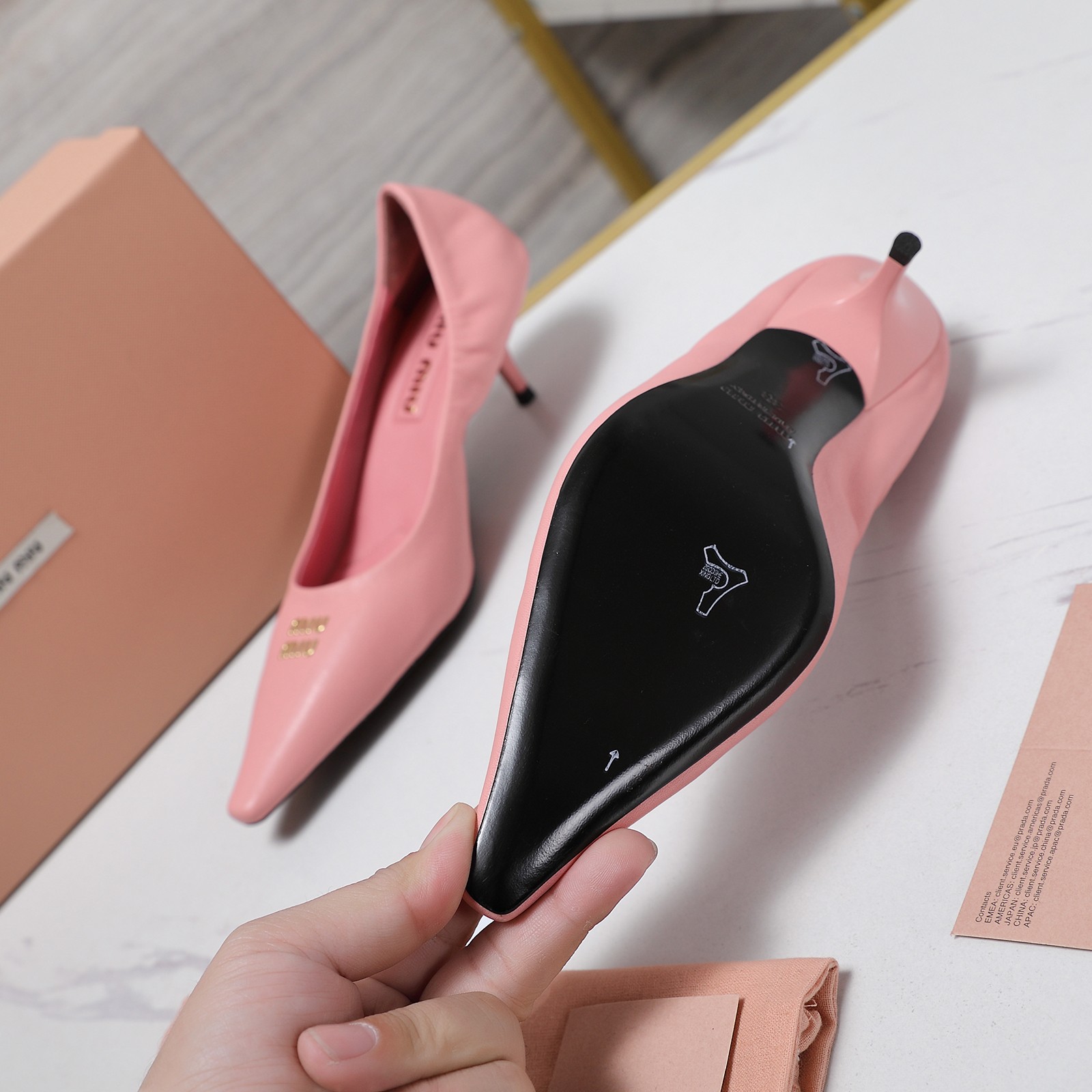 這款鞋子是AAAAA 1:1 質量(非常棒). 使用了和原版一模一樣的材料. 商標部分也保持了和繆繆/Miu Miu一樣. 圖片拍攝是實物鞋子拍攝, 您所收到的實物保證和我們圖片一模一樣.