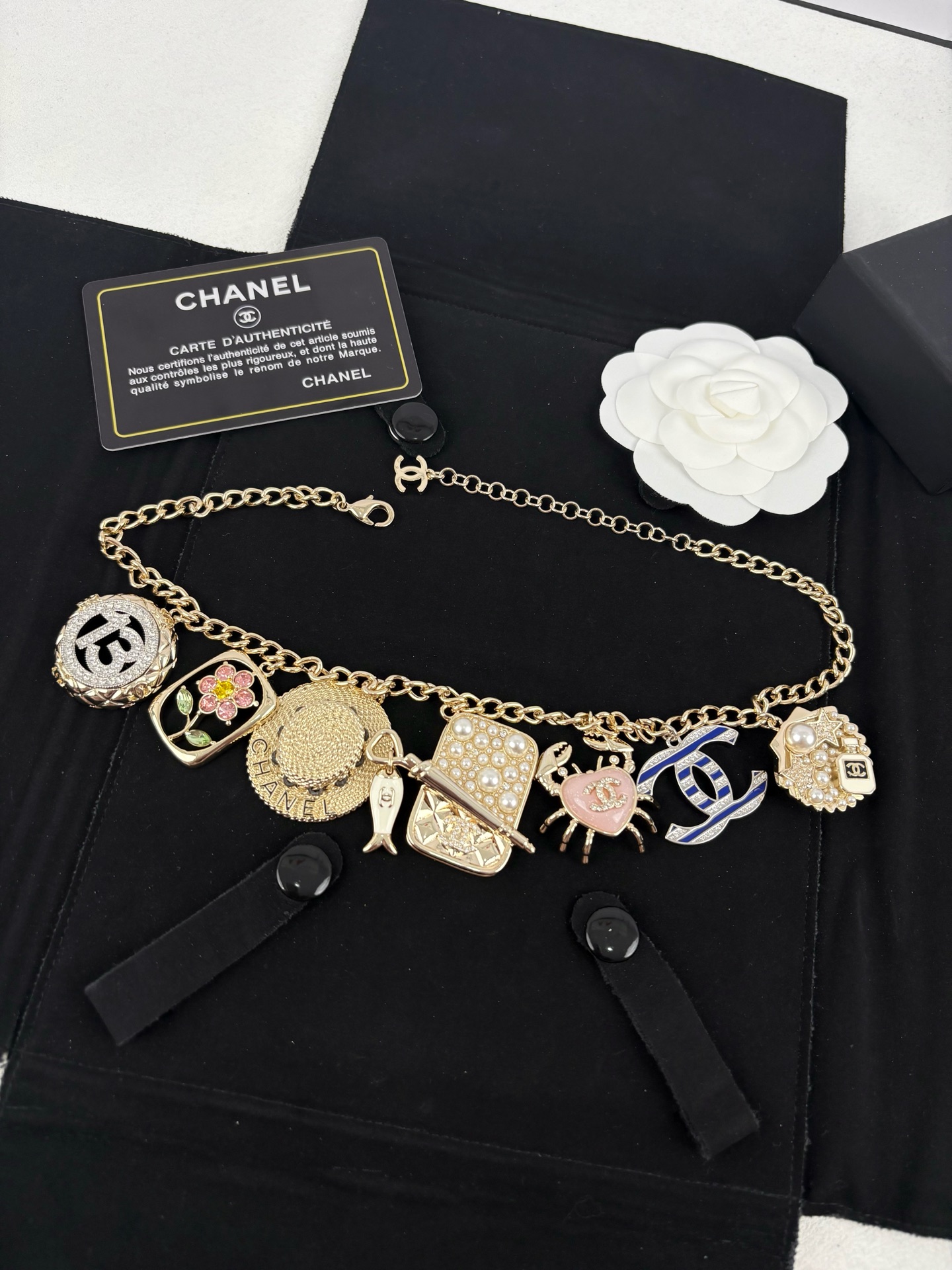 這款首飾是AAAAA 1:1 質量(非常棒). 使用了和原版一模一樣的材料. 商標部分也保持了和香奈兒/Chanel一樣. 圖片拍攝是實物首飾拍攝, 您所收到的實物保證和我們圖片一模一樣.