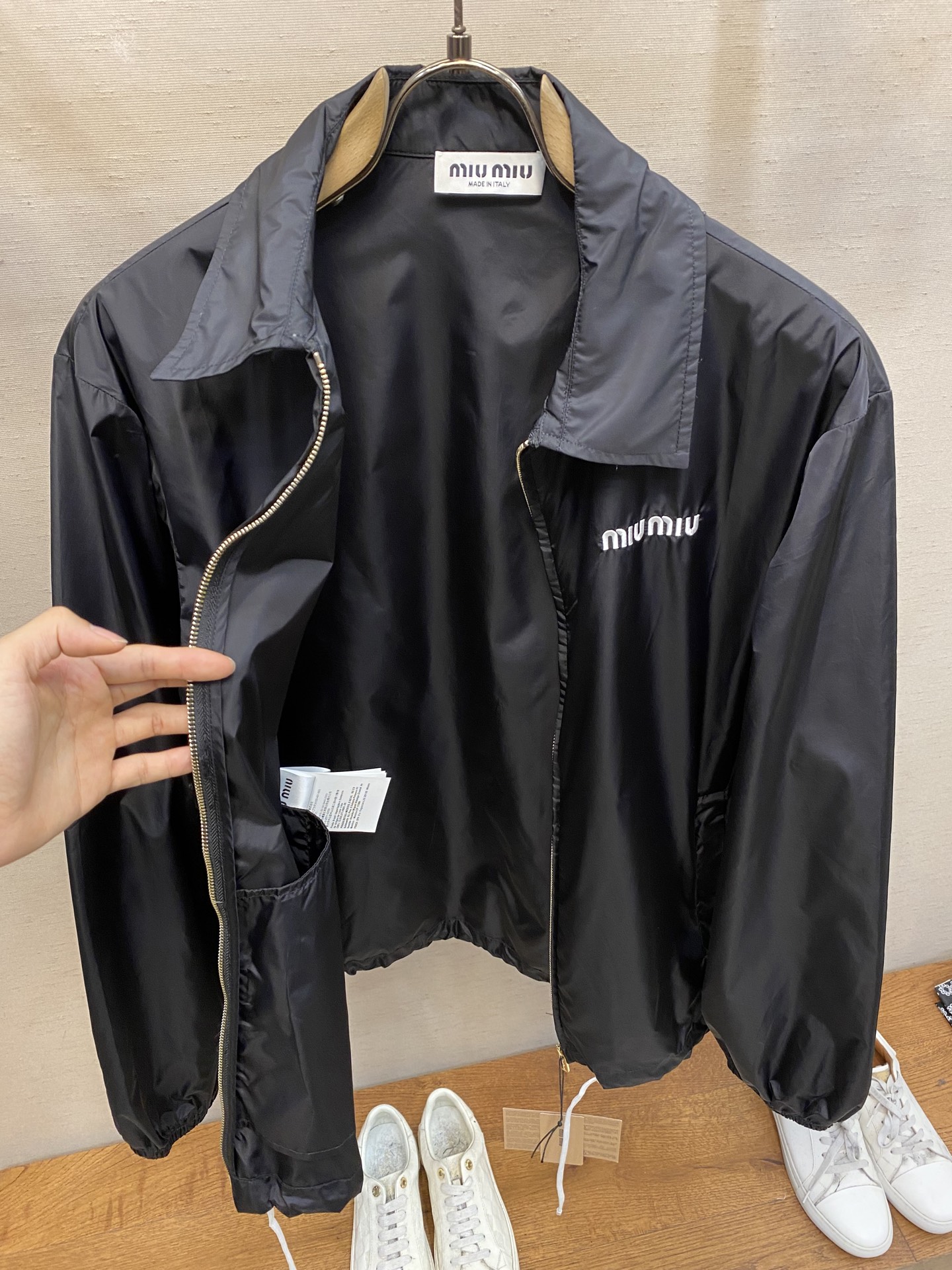 這款衣服是AAAAA 1:1 質量(非常棒). 使用了和原版一模一樣的材料. 商標部分也保持了和繆繆/Miu Miu一樣. 圖片拍攝是實物衣服拍攝, 您所收到的實物保證和我們圖片一模一樣.
