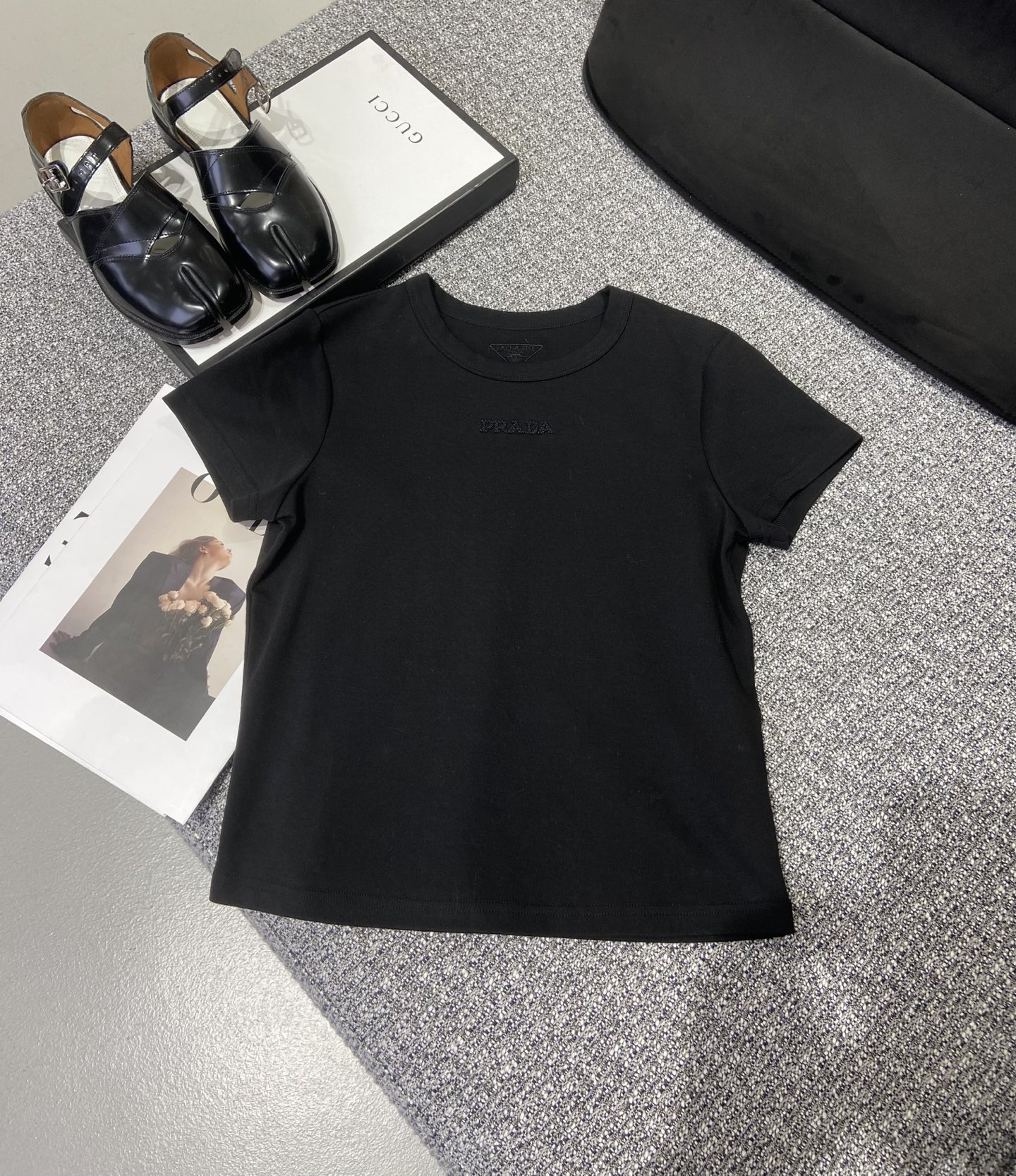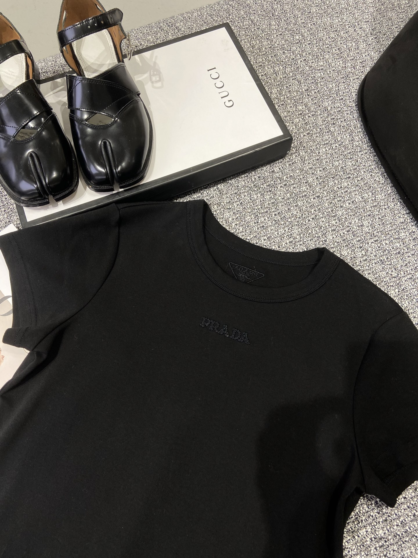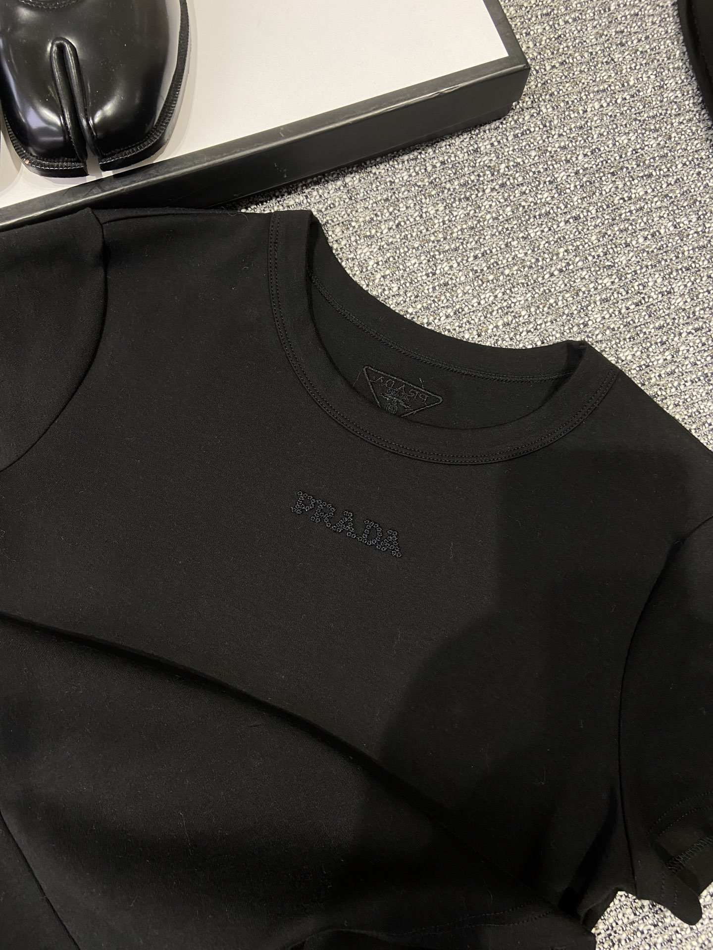 這款衣服是AAAAA 1:1 質量(非常棒). 使用了和原版一模一樣的材料. 商標部分也保持了和普拉達/Prada一樣. 圖片拍攝是實物衣服拍攝, 您所收到的實物保證和我們圖片一模一樣.