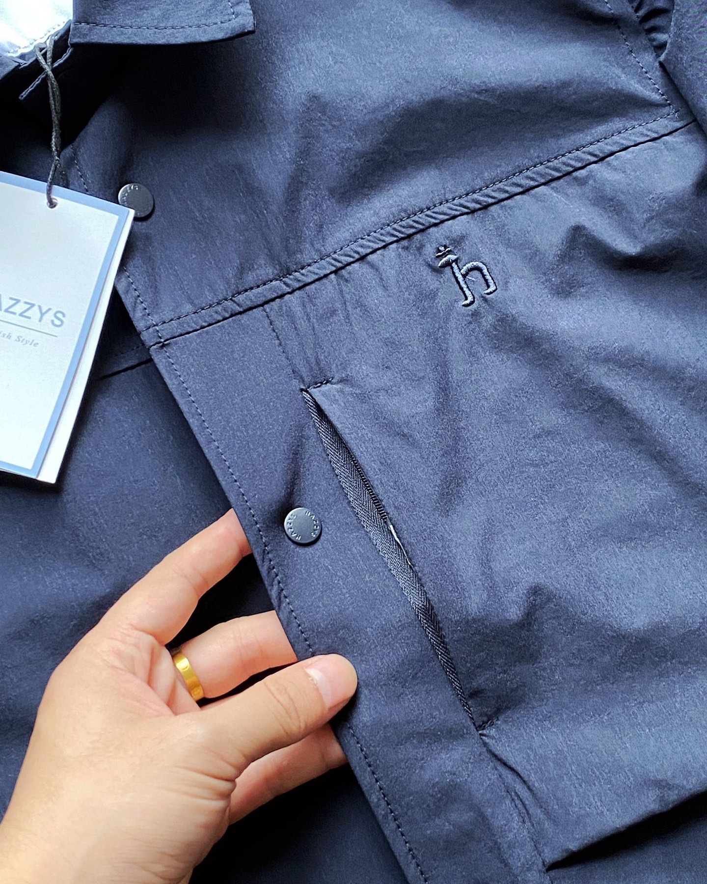 這款衣服是AAAAA 1:1 質量(非常棒). 使用了和原版一模一樣的材料. 商標部分也保持了和Hazzys一樣. 圖片拍攝是實物衣服拍攝, 您所收到的實物保證和我們圖片一模一樣.